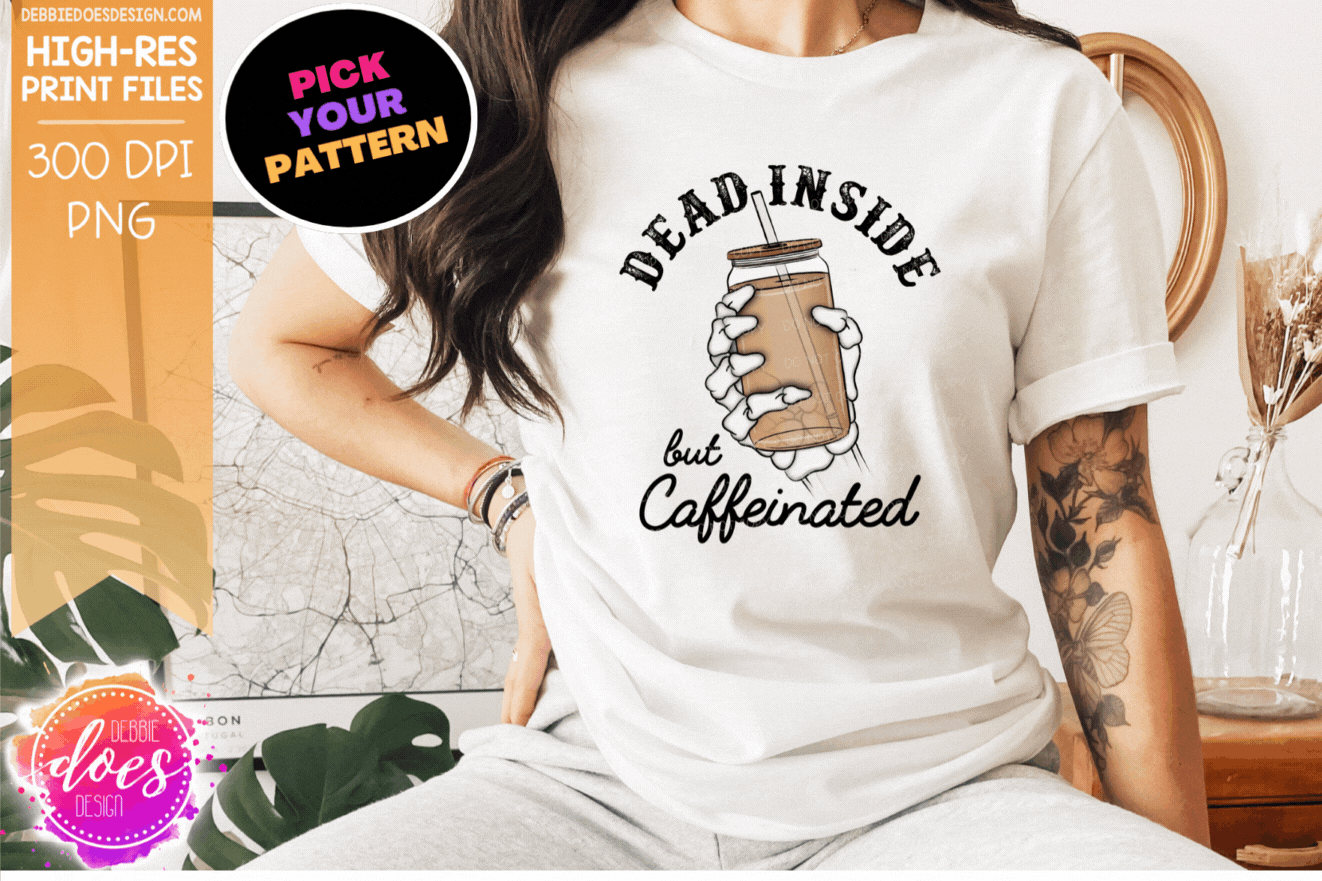 Dead Inside but Caffeinated - Skeleton Glass Can - Choose Your Pattern - Sublimation/Printable Design