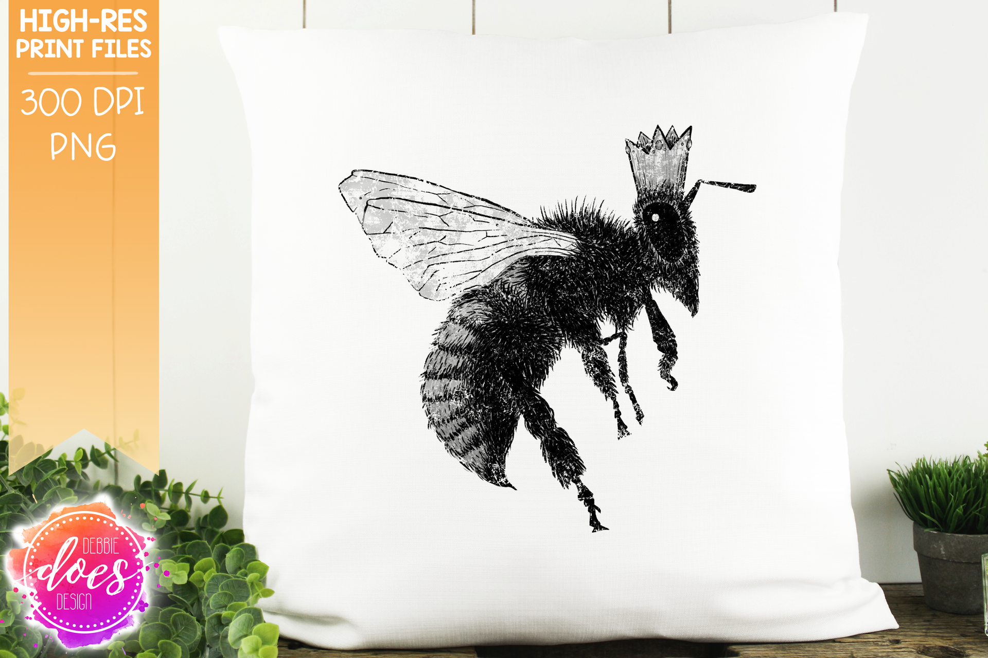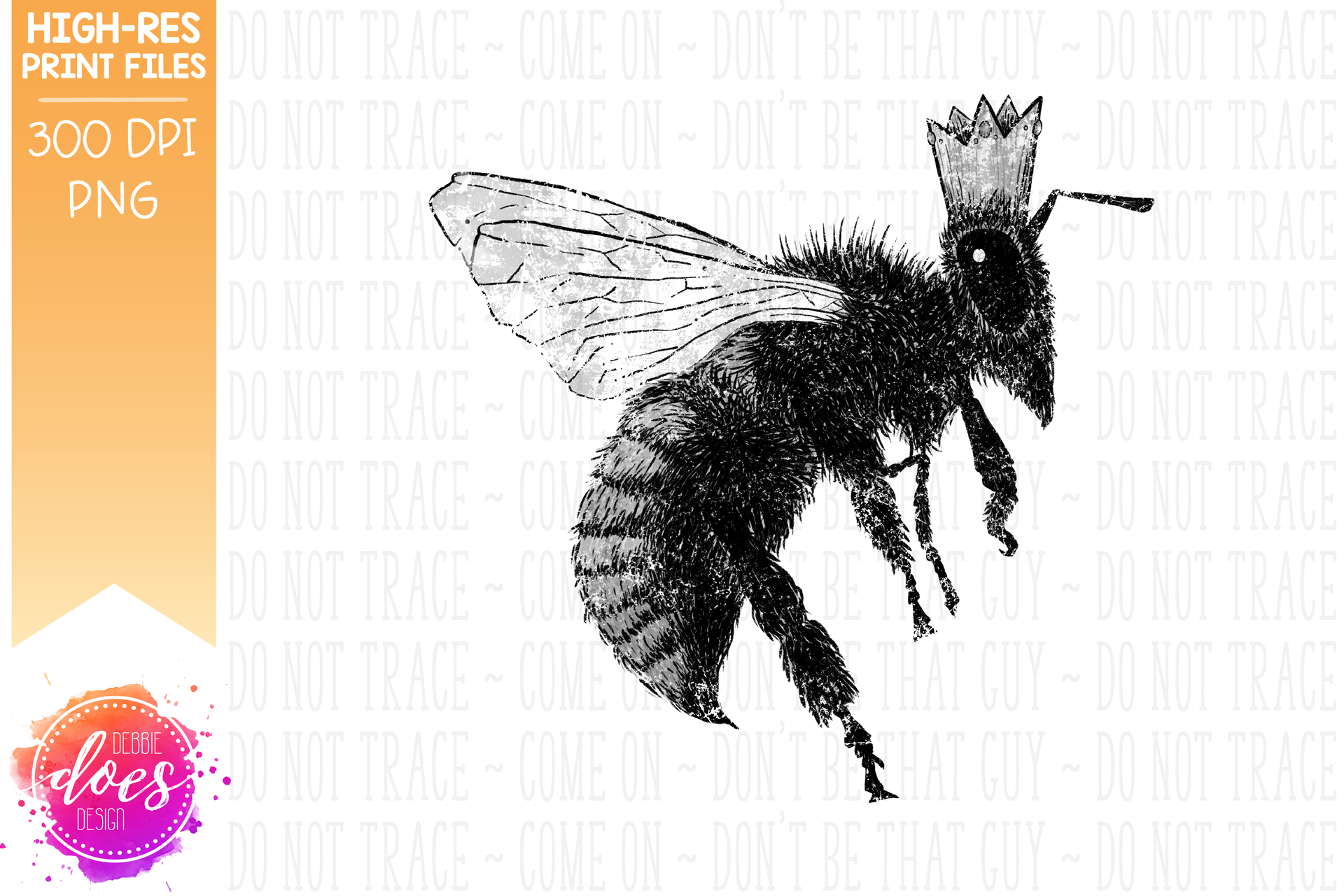 Distressed B&W Hand Drawn Queen Bee - Printable/Sublimation File