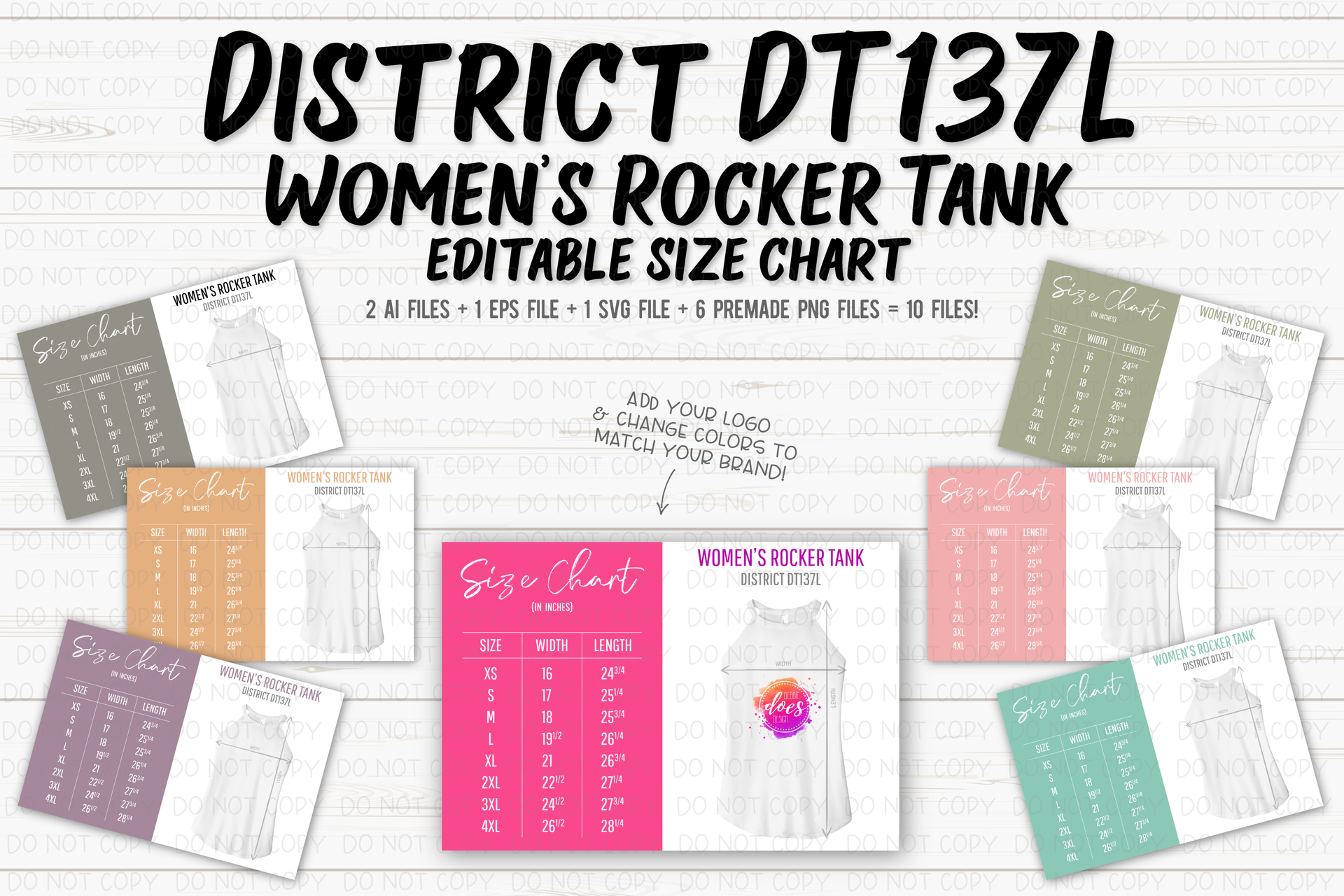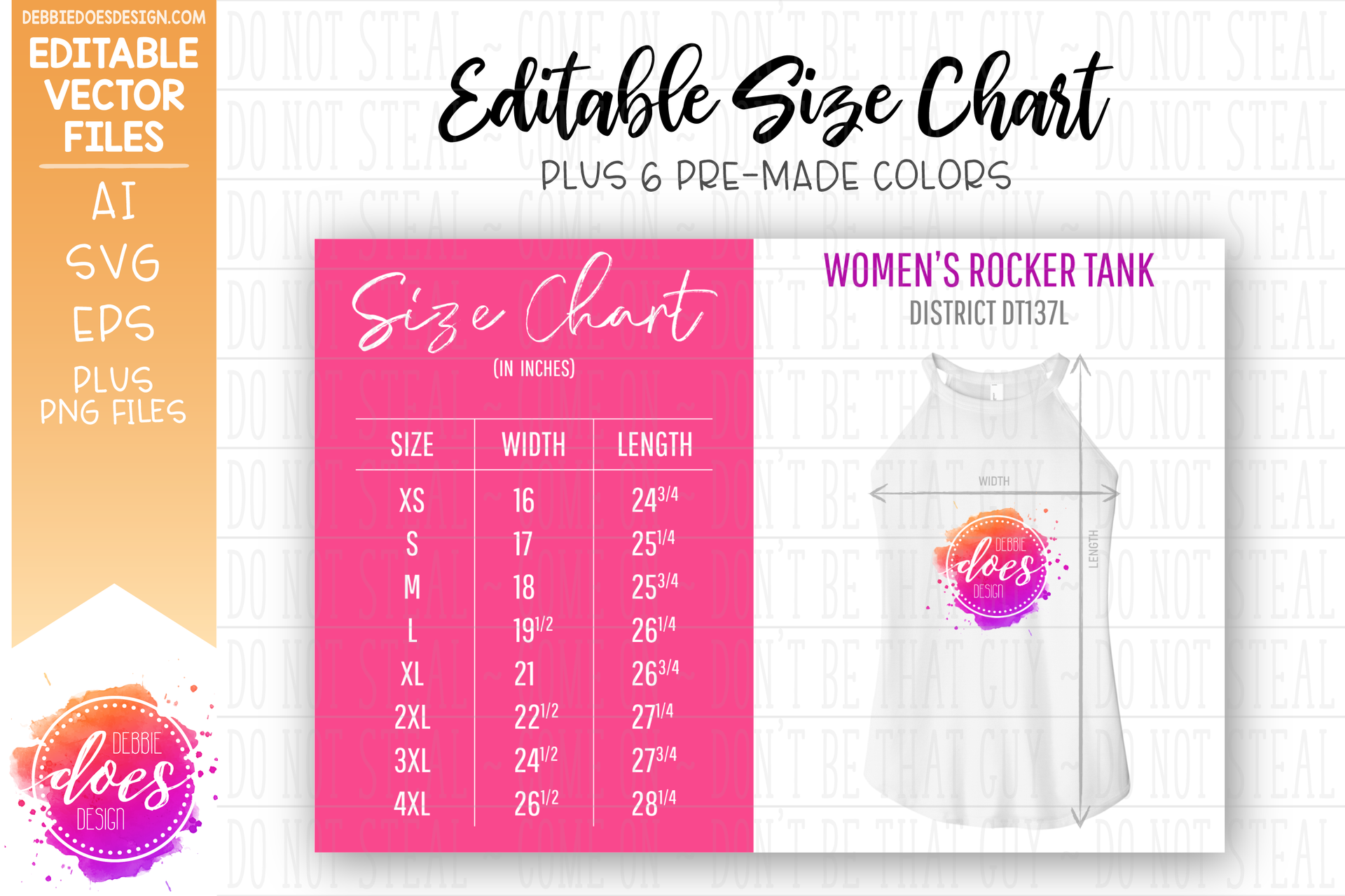 District Rocker Tank DT137L - Editable Size Chart + 6 Colored PNG Files