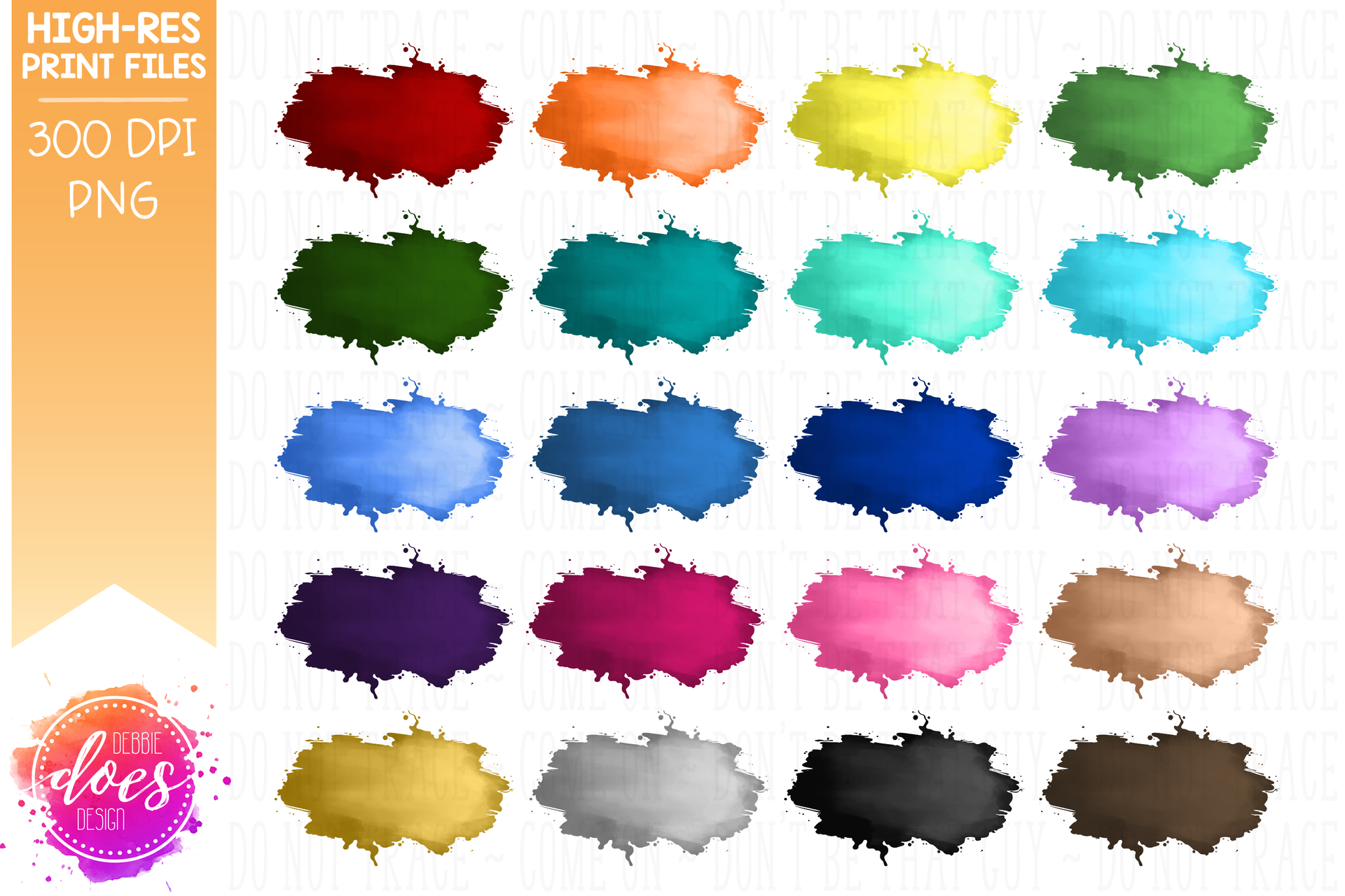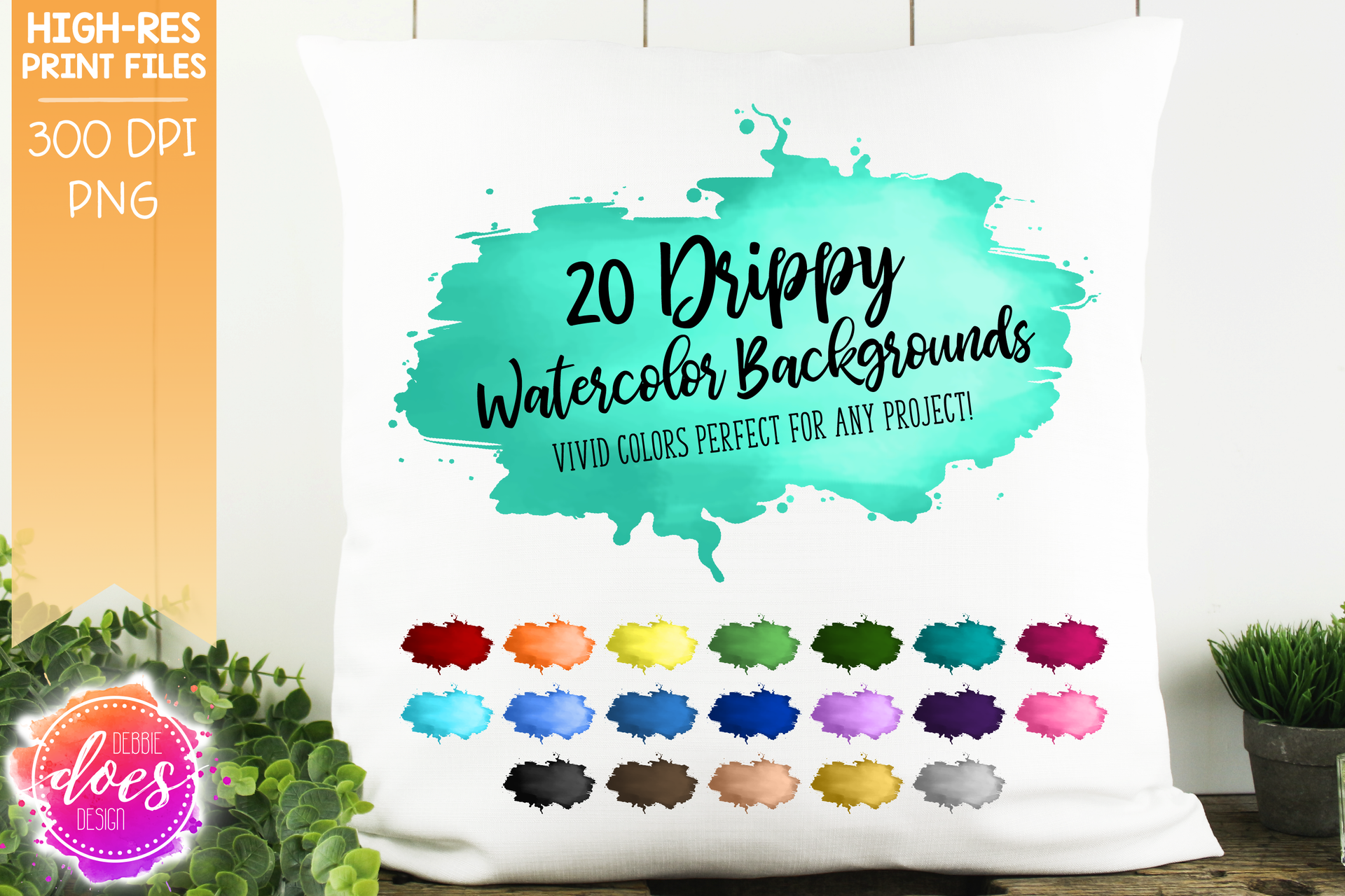 Drippy Watercolor Backgrounds (Set of 20 Colors) - Design Elements