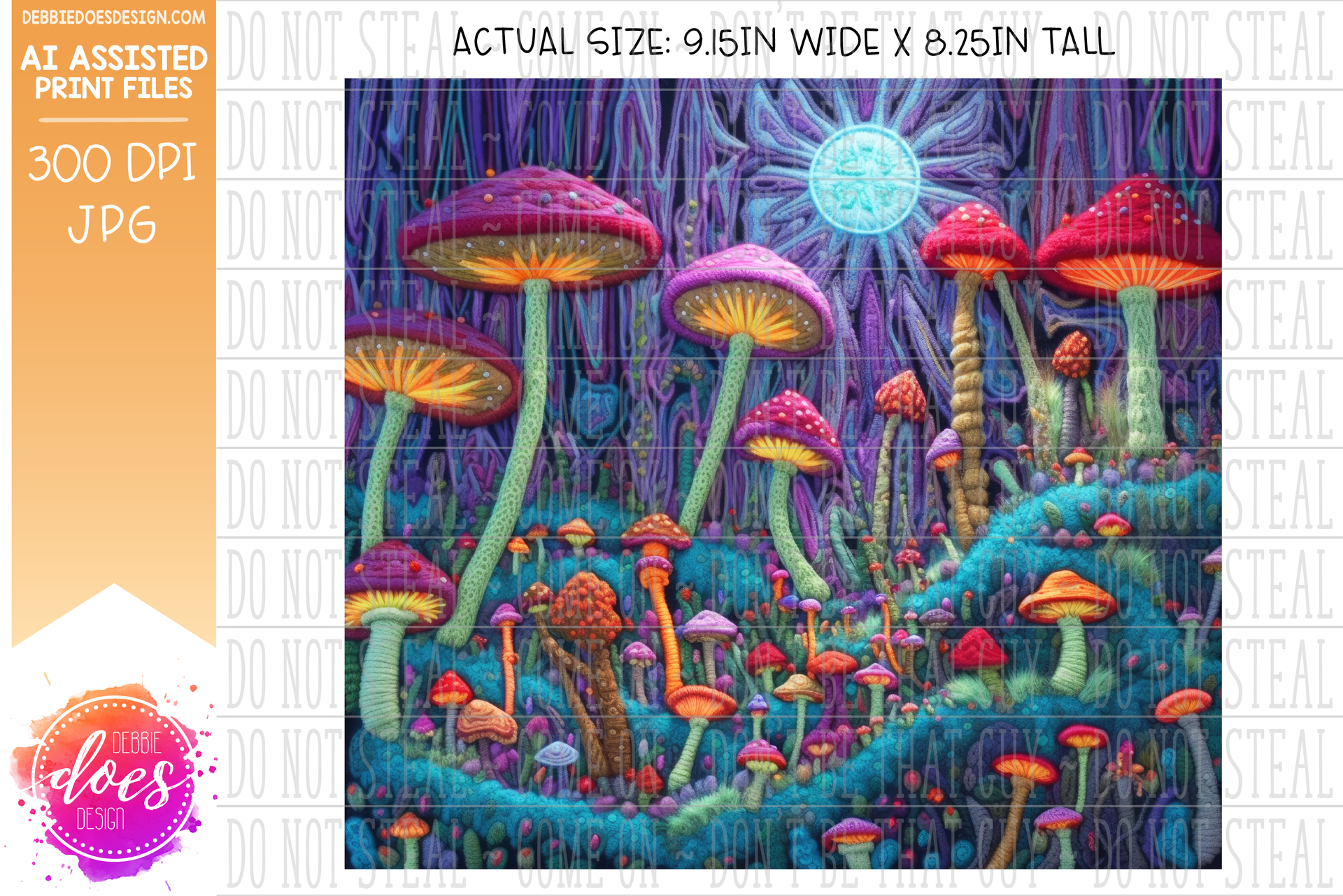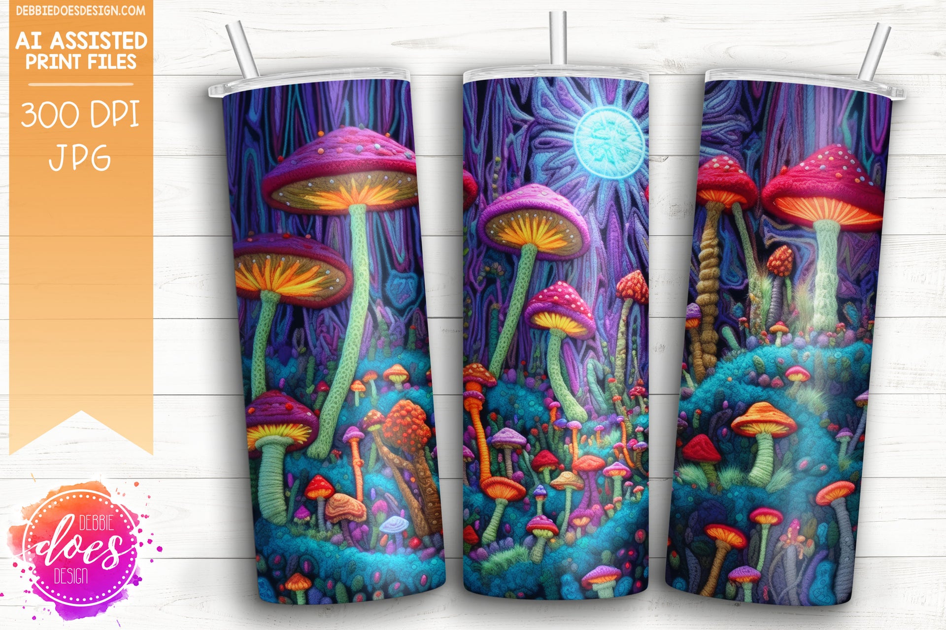Embroidery Pattern Tumbler - Mystical Mushroom Forest 3 - Printable/Sublimation Design