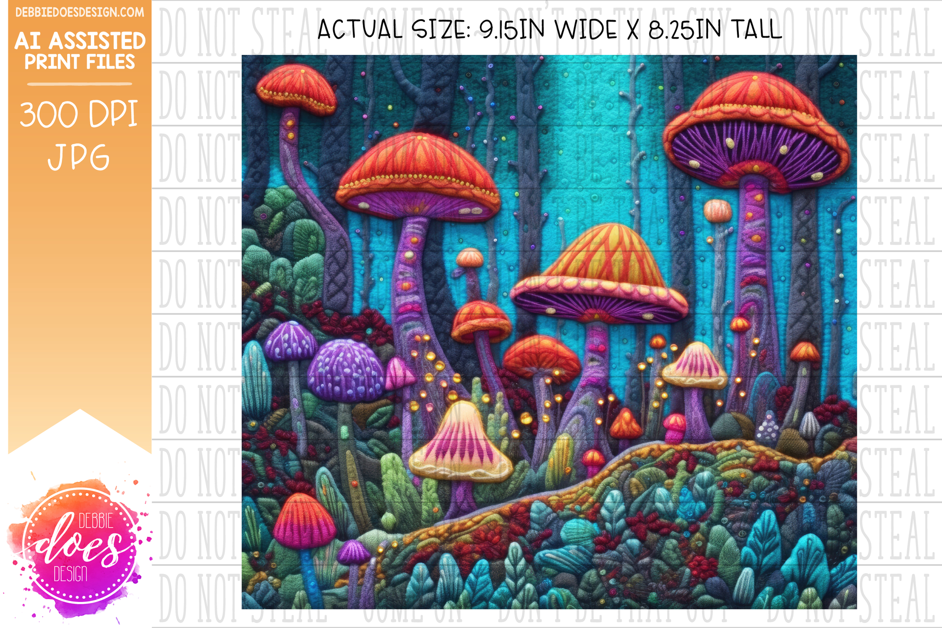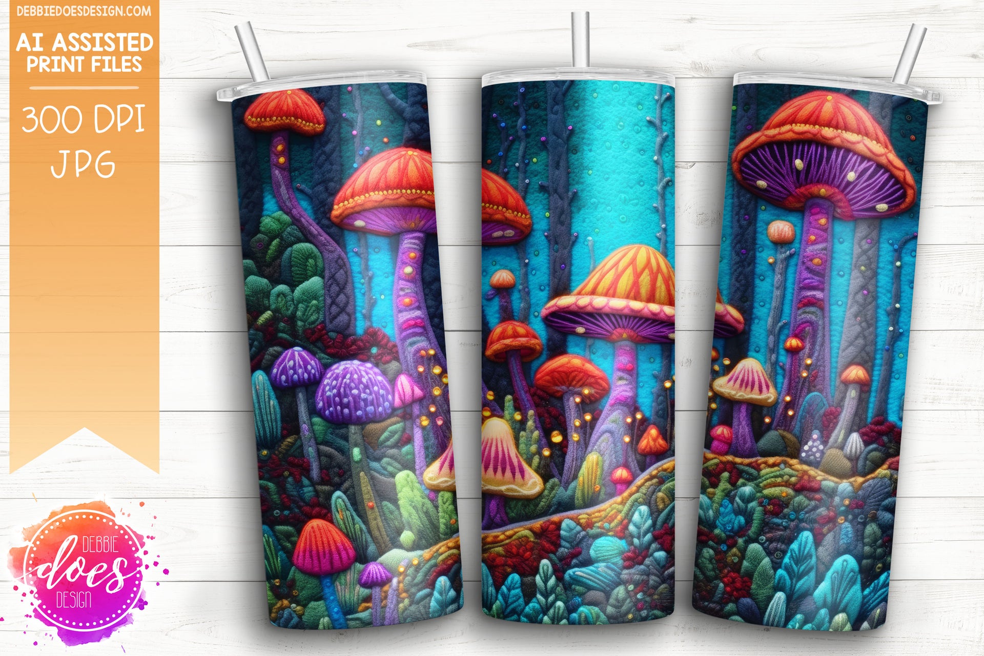 Embroidery Pattern Tumbler - Mystical Mushroom Forest 5 - Printable/Sublimation Design