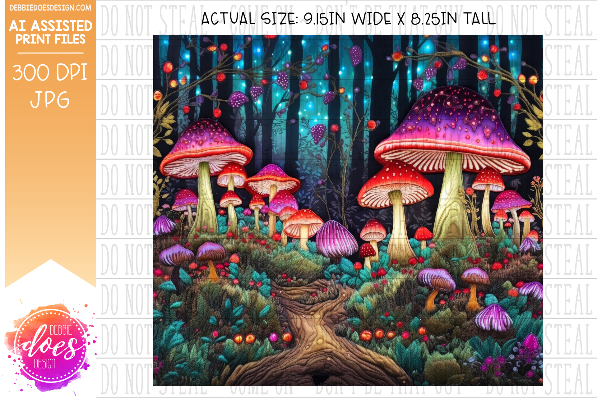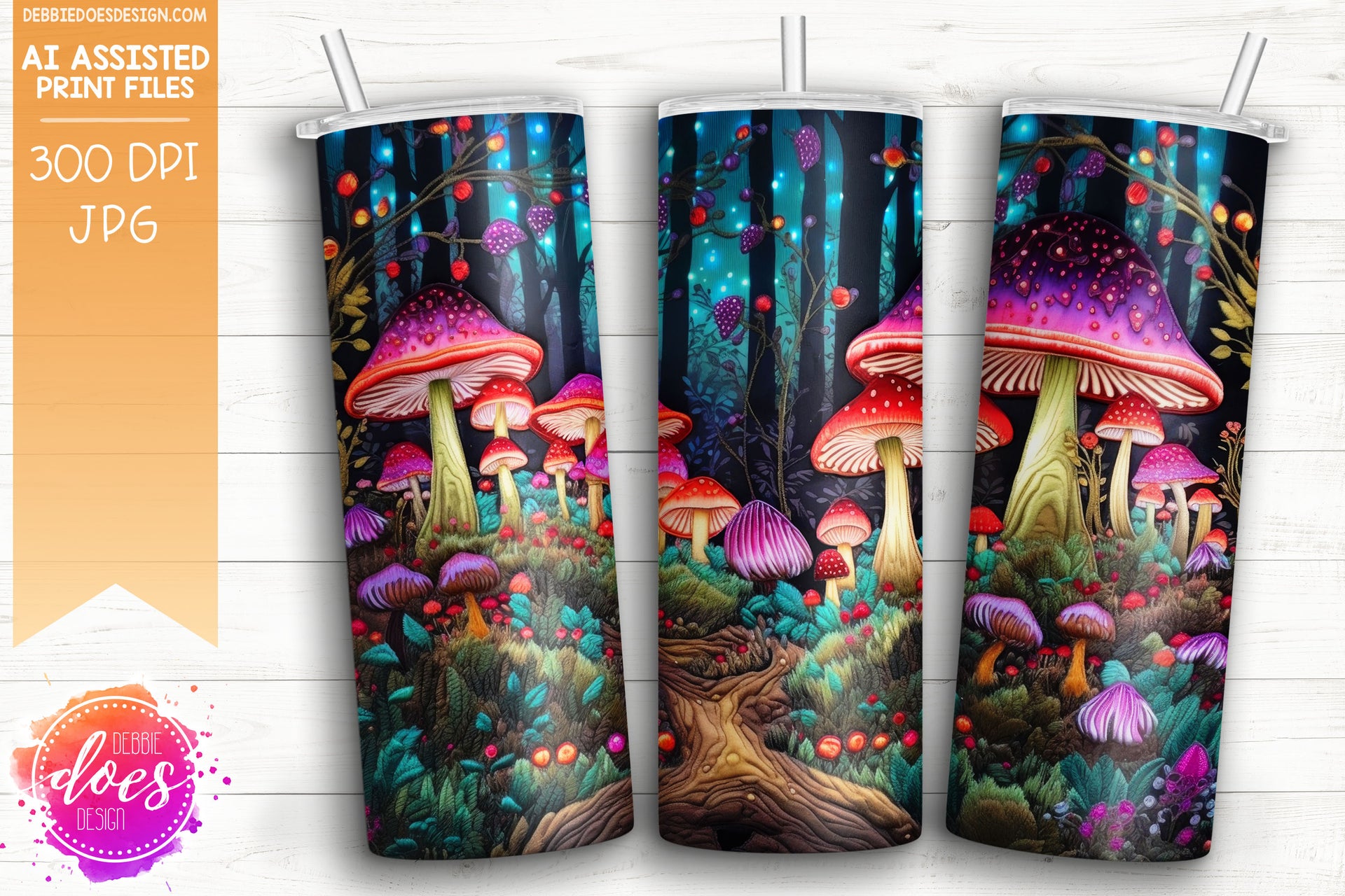 Embroidery Pattern Tumbler - Mystical Mushroom Forest 8 - Printable/Sublimation Design