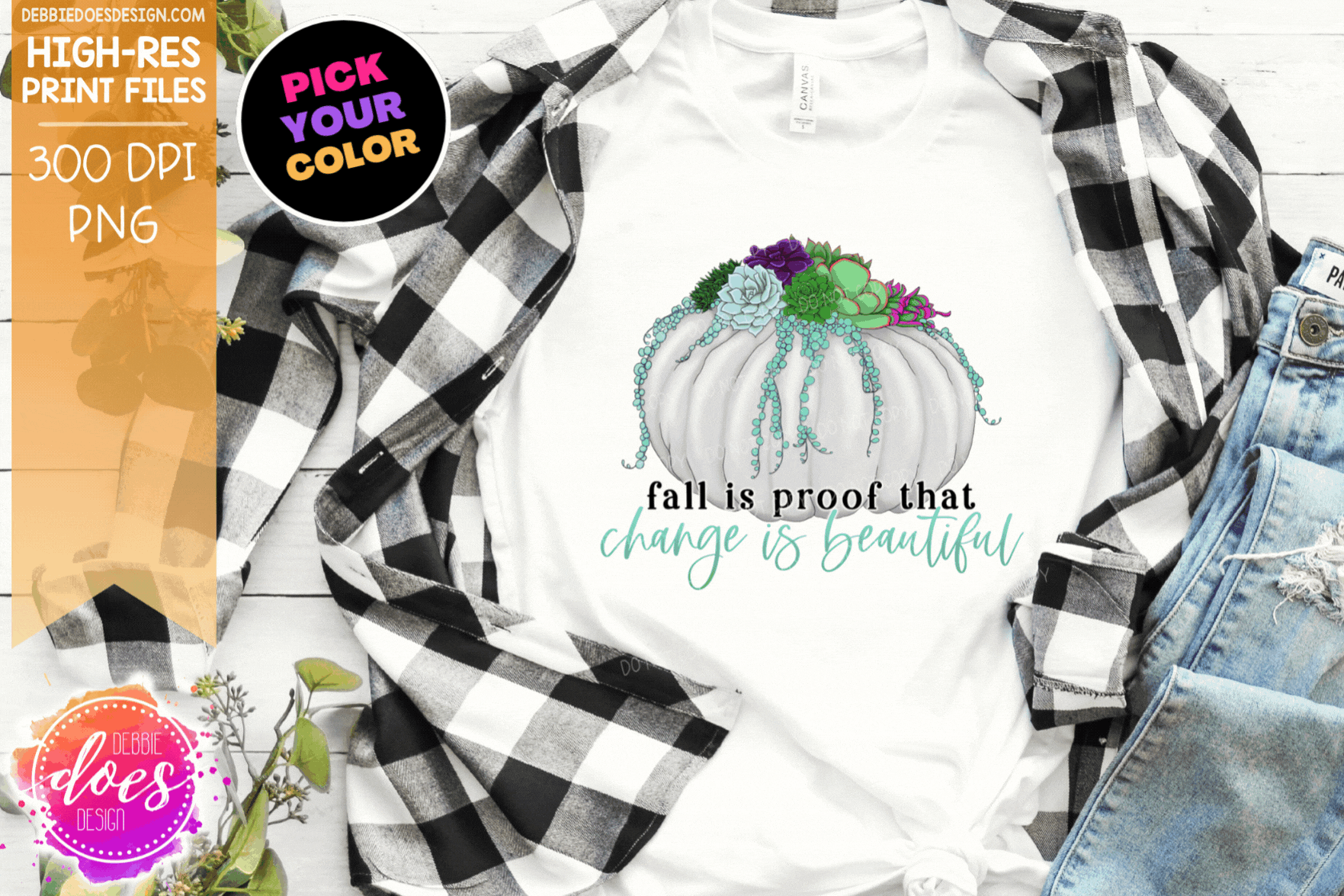 Fall is Proof that Change is Beautiful - Succulent Pumpkin - Choose your Color - Sublimation/Printable Designs