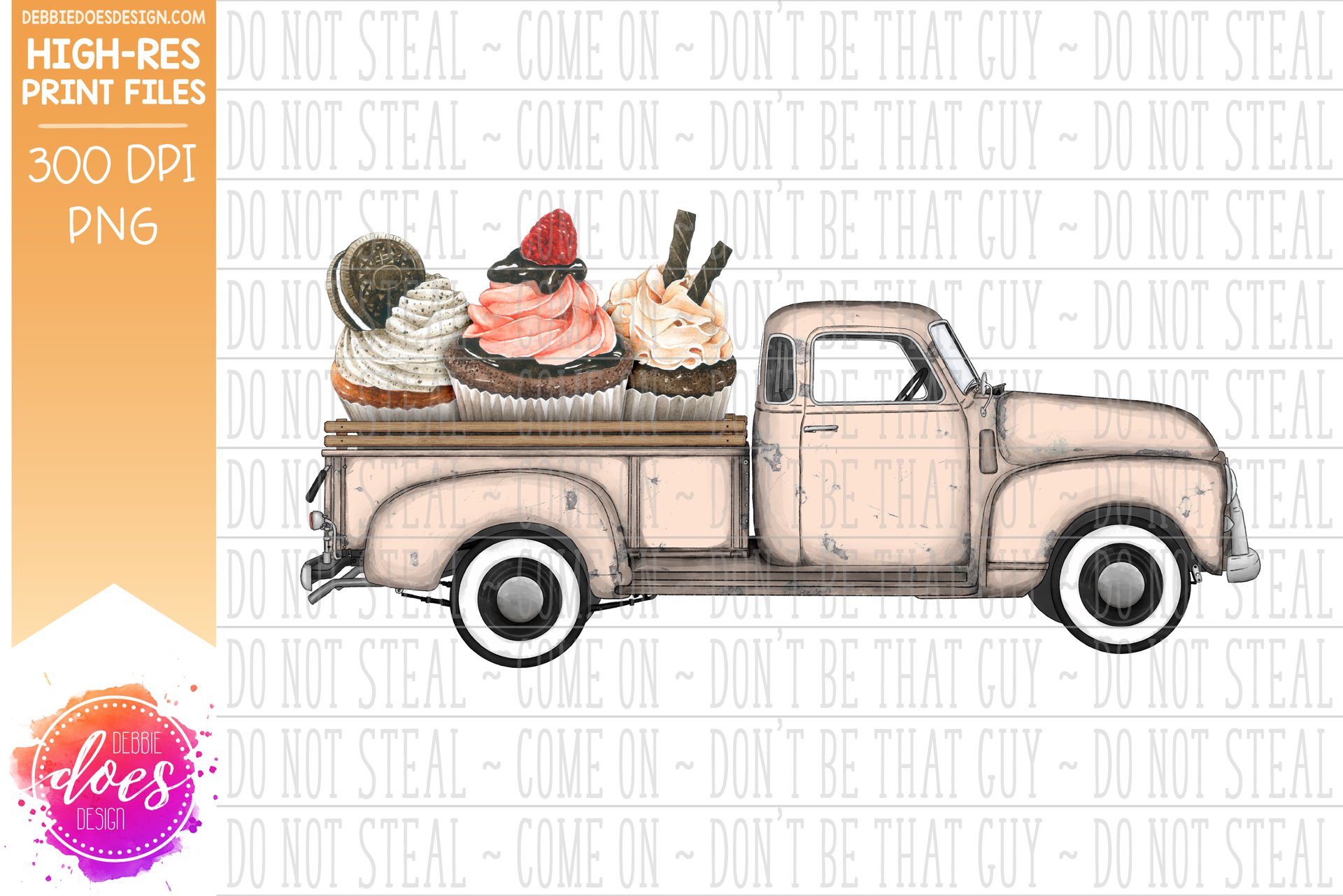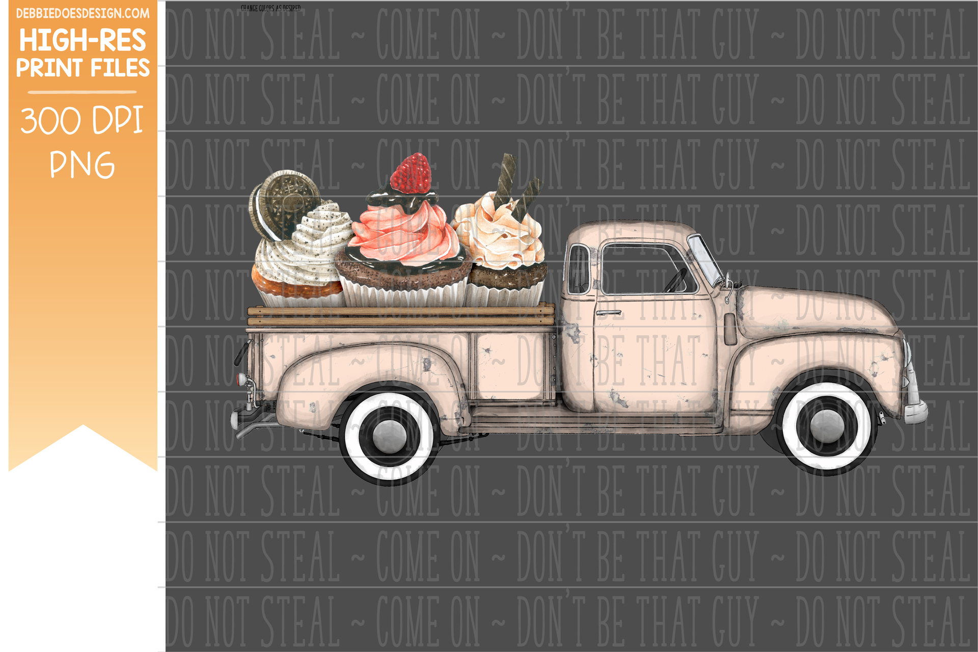 Farmhouse Truck - Cupcakes - Soft Peach Truck - Sublimation/Printable Design