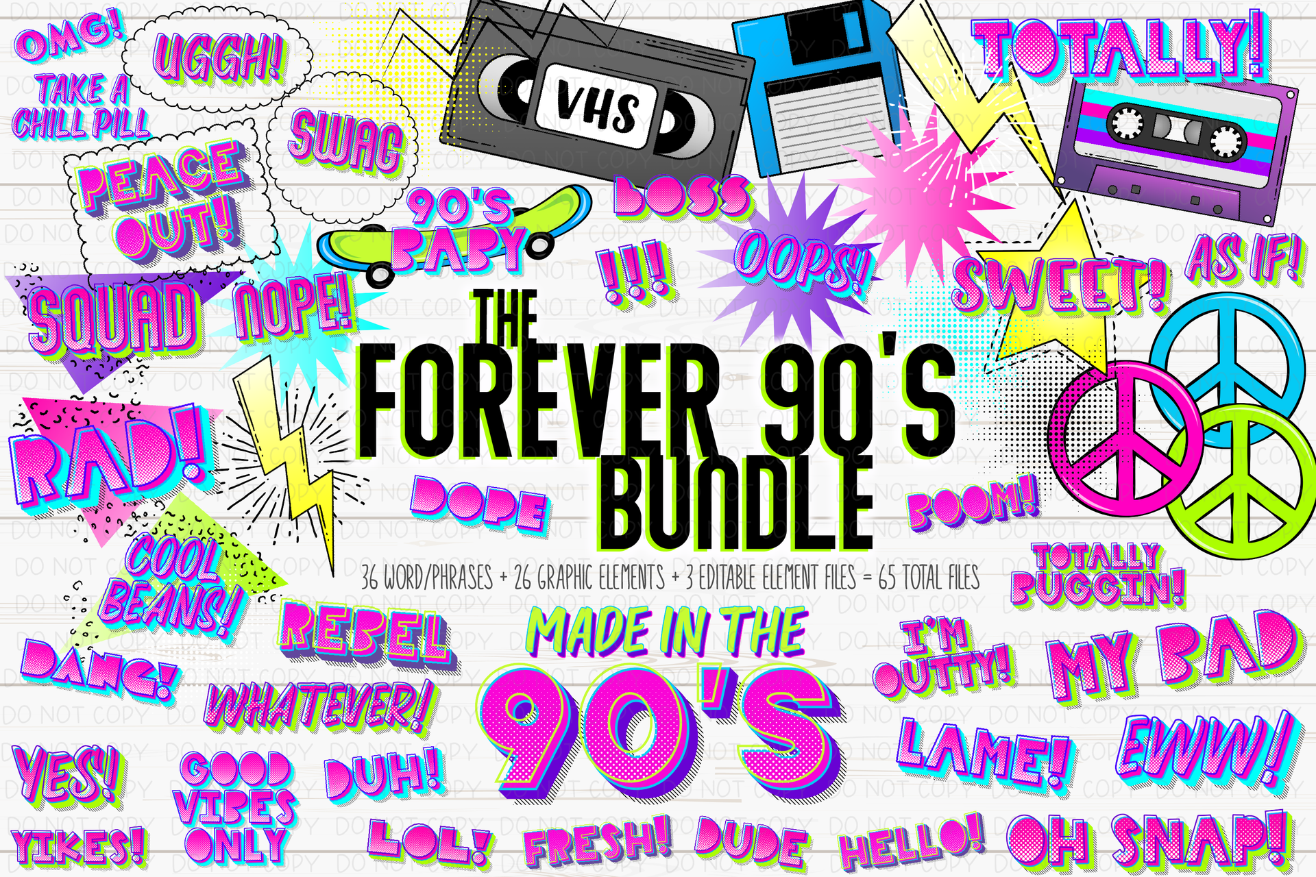 Forever 90's Bundle - Includes 65 files! - Design Elements - Sublimation/Printable Design