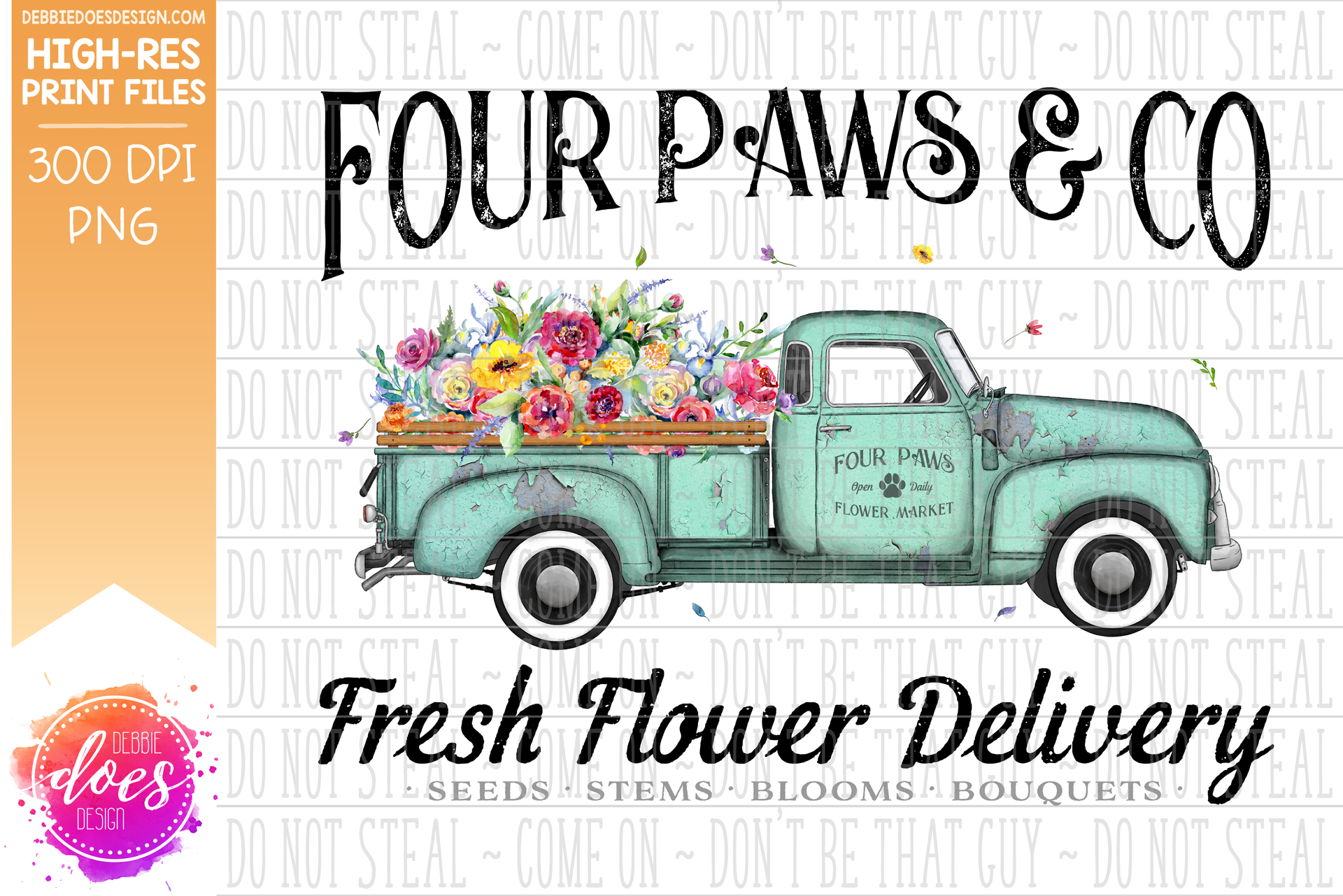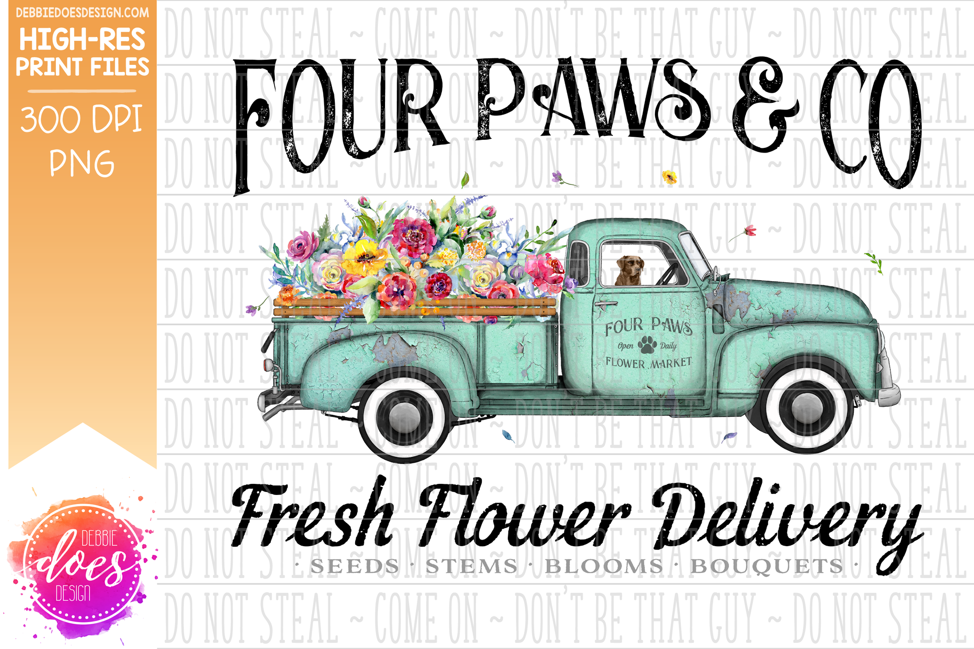 Four Paws & Co - Dog Flower Delivery Truck - Sublimation/Printable Design