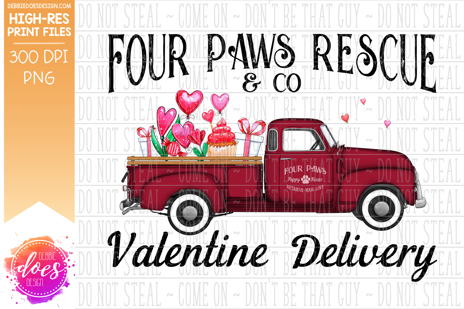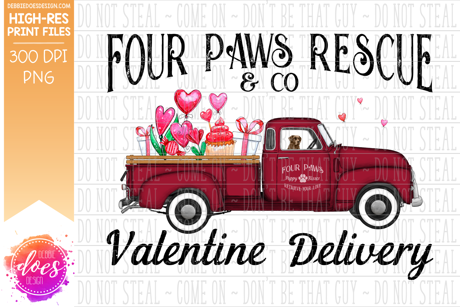 Four Paws Rescue - Dog Valentine Delivery Truck - Sublimation/Printable Design
