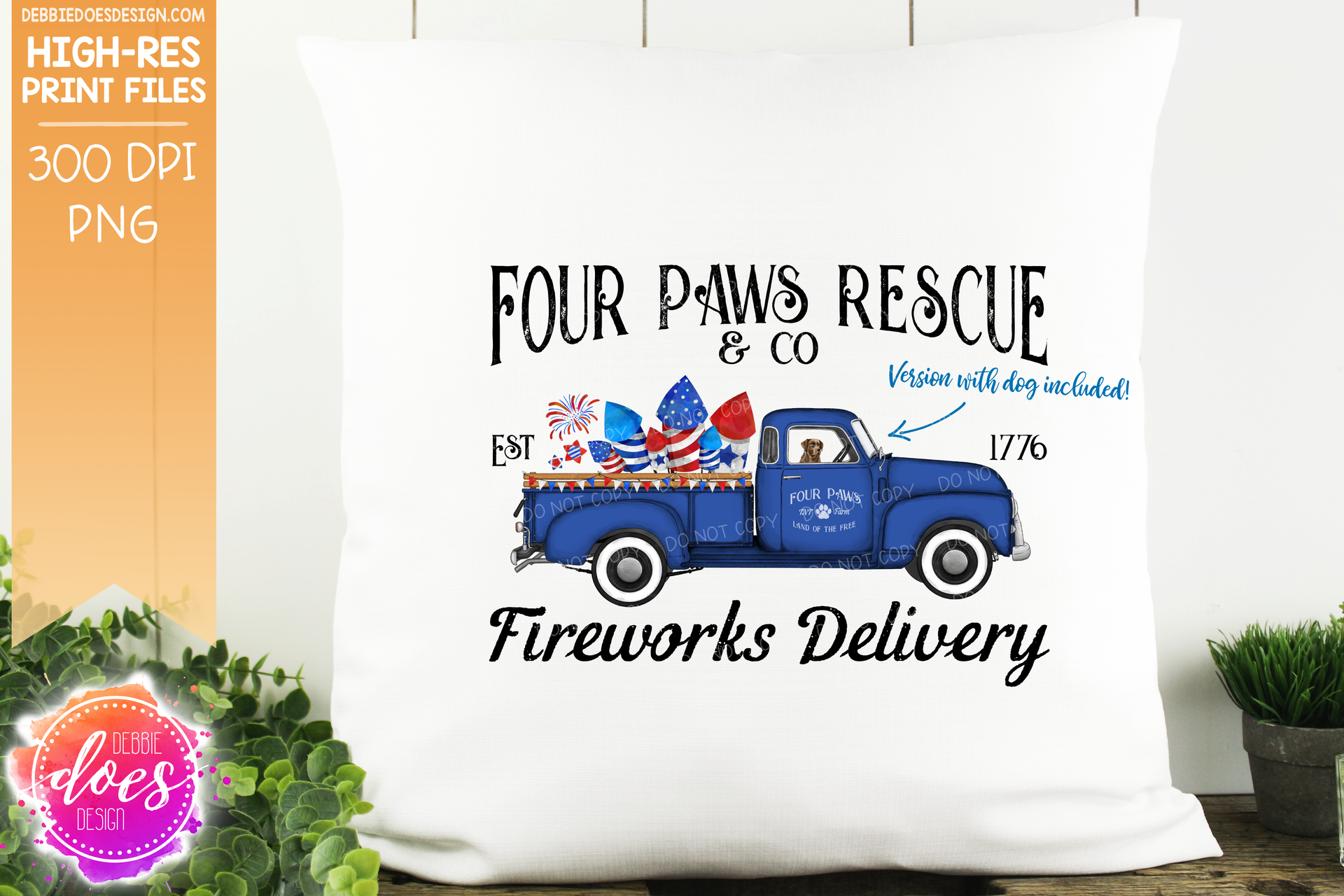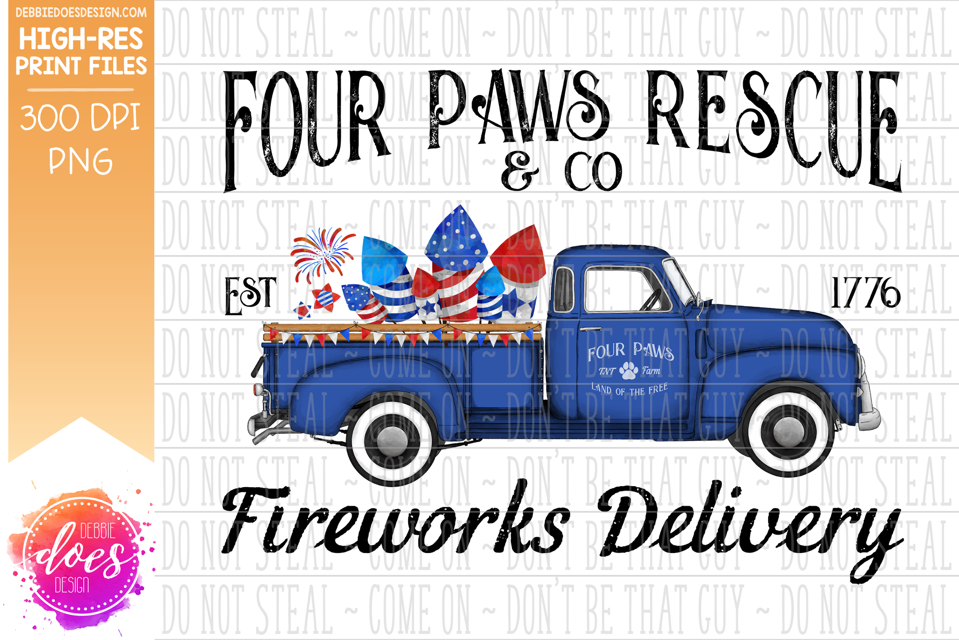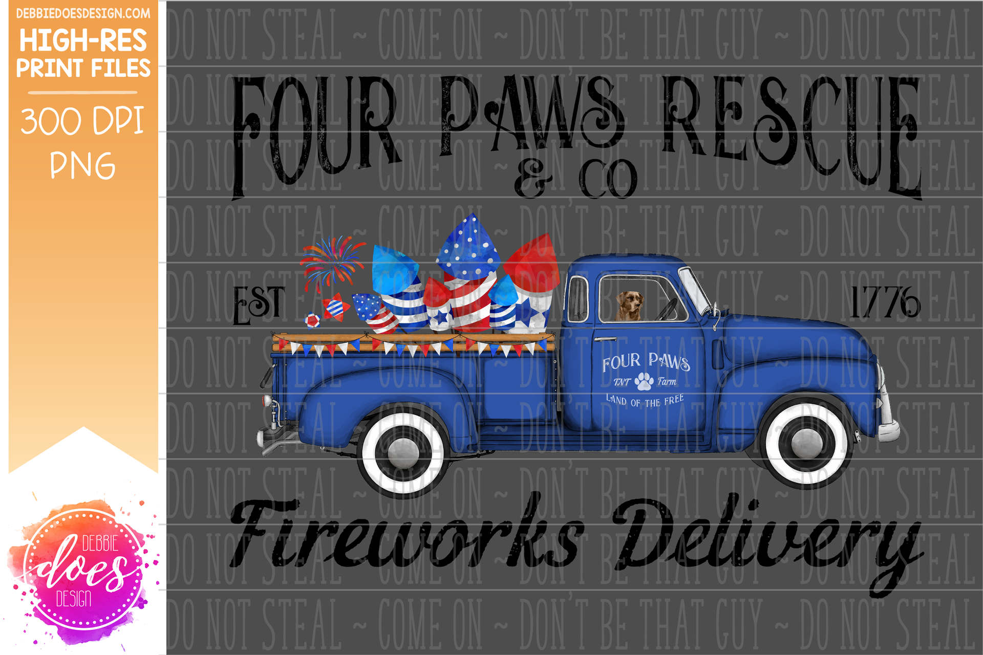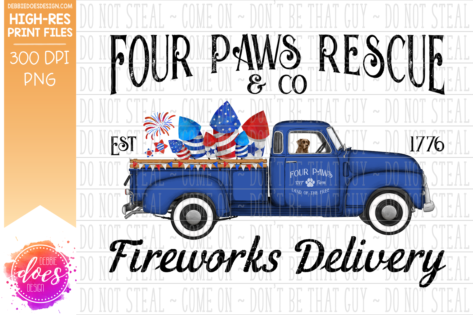 Four Paws Rescue - Dog Firework Delivery Truck - Sublimation/Printable Design