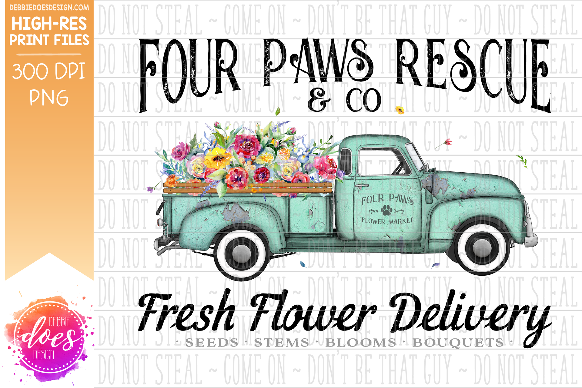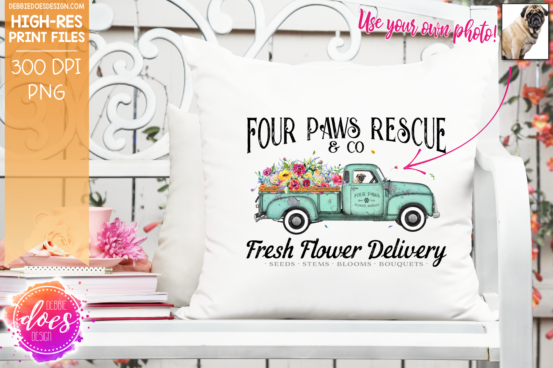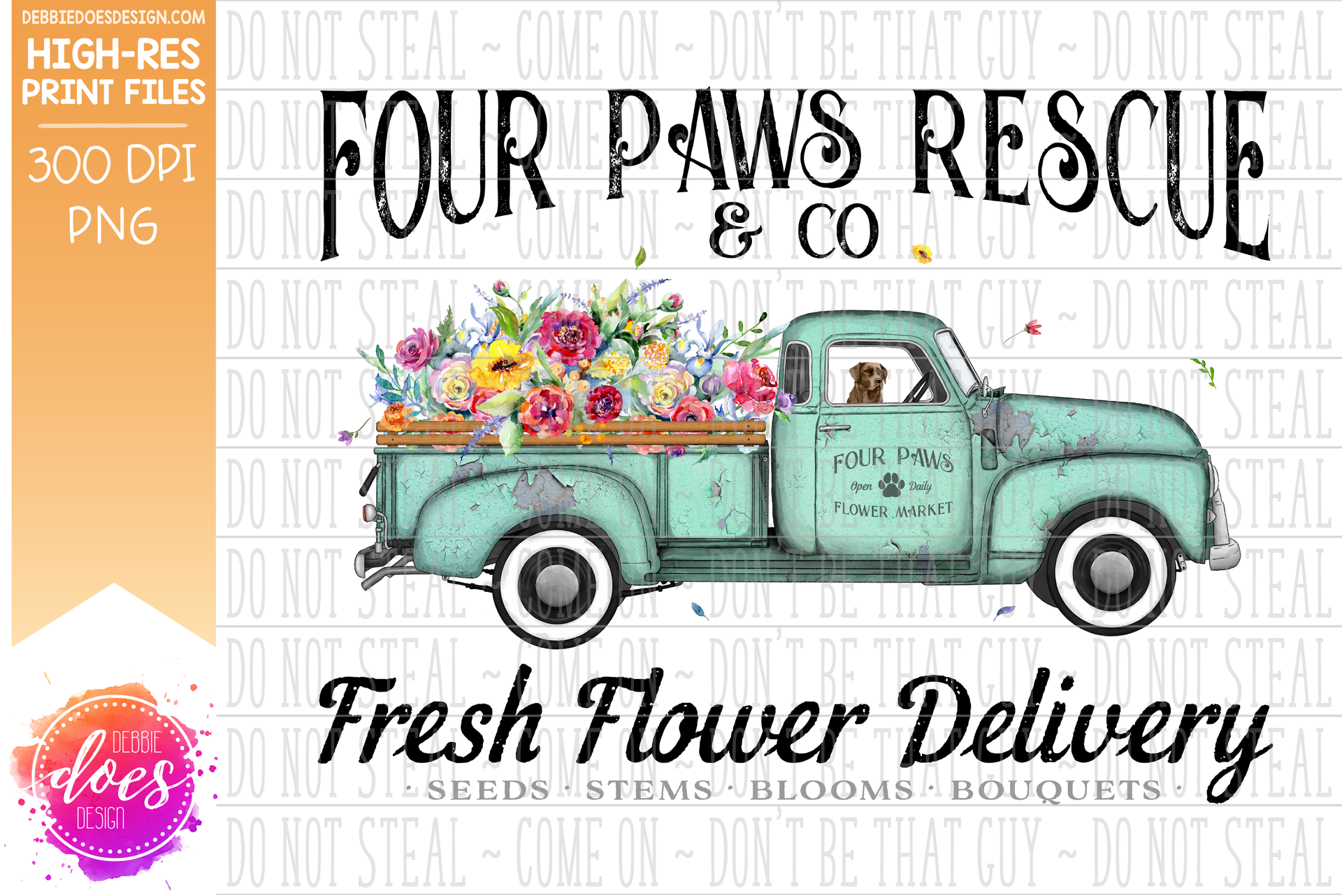 Four Paws Rescue - Dog Flower Delivery Truck - Sublimation/Printable Design