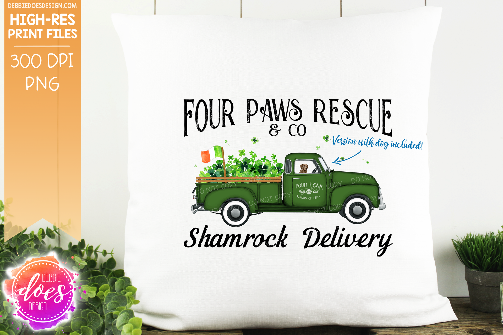 Four Paws Rescue - With Dog - Dog Shamrock Delivery Truck - Sublimation/Printable Design