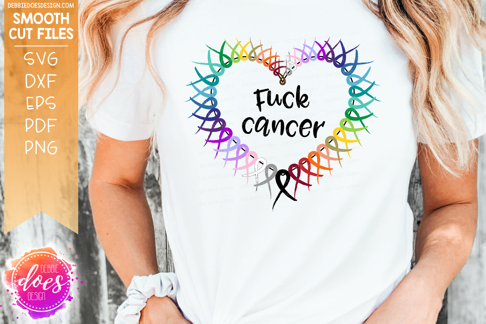 Fuck Cancer - Ribbon Heart - Distressed - SVG File