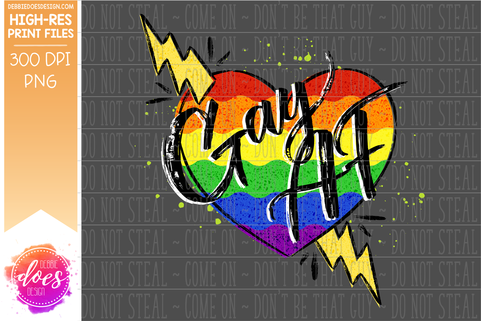 Gay AF - Pride Lightning Bolt Heart - Sublimation/Printable Design