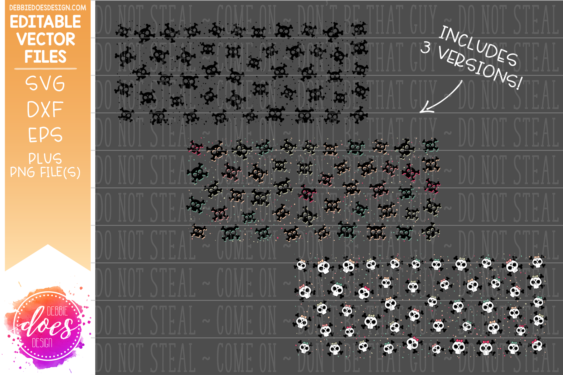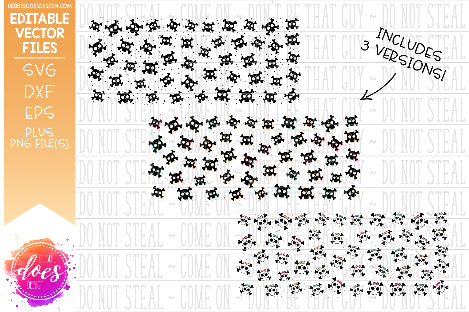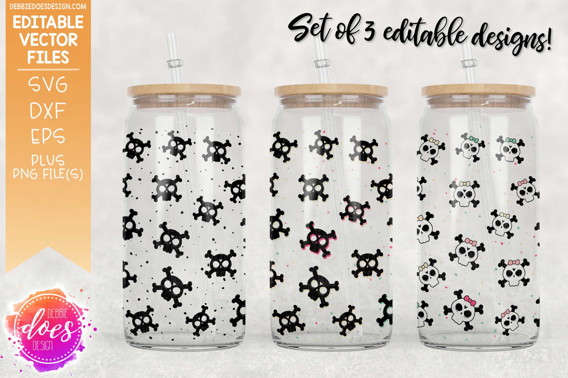 Girly Skull & Cross Bones Print Glass Can Tumbler Designs - Set of 3 - Editable Vector Design