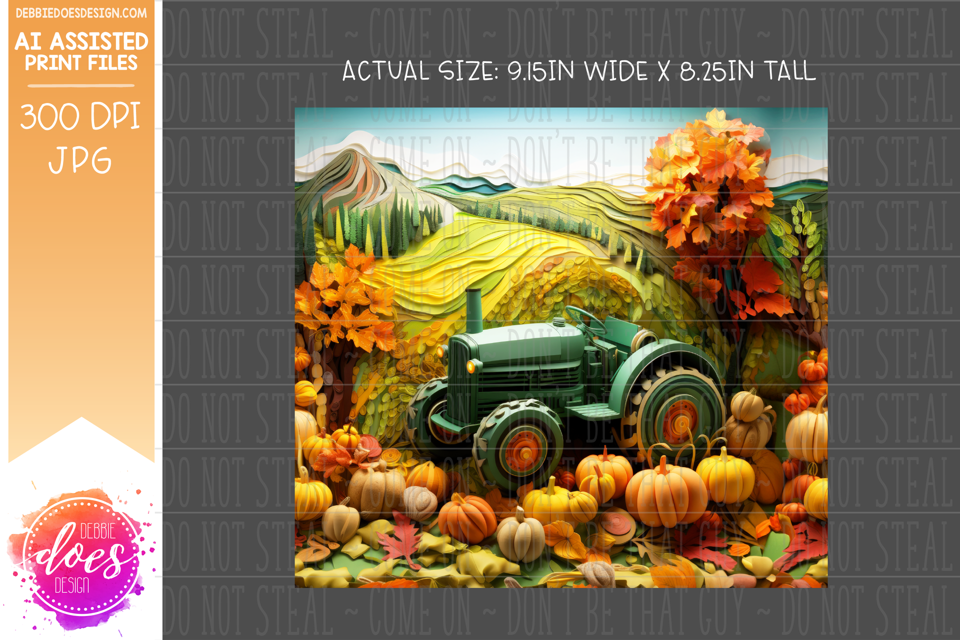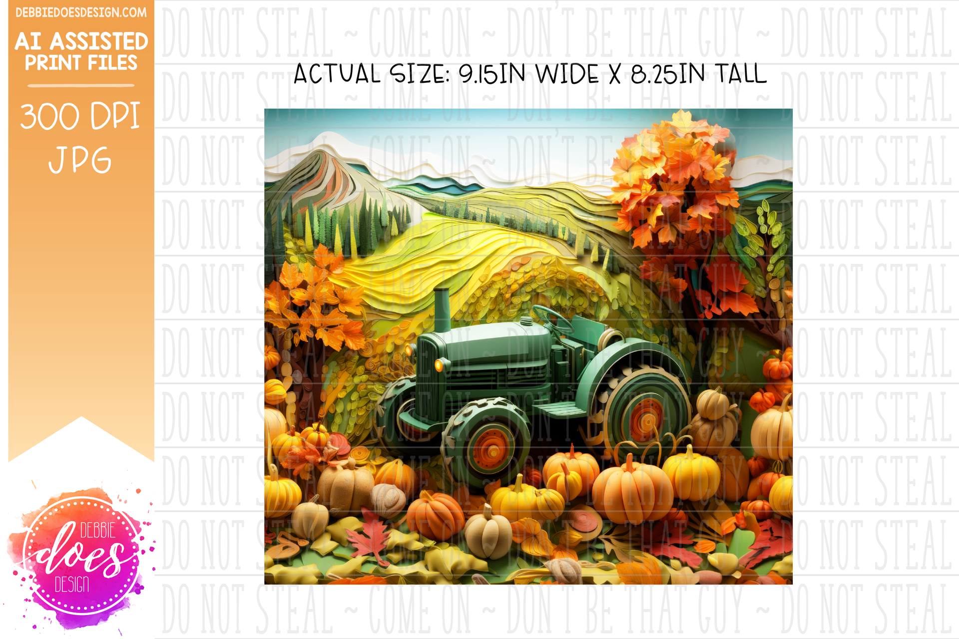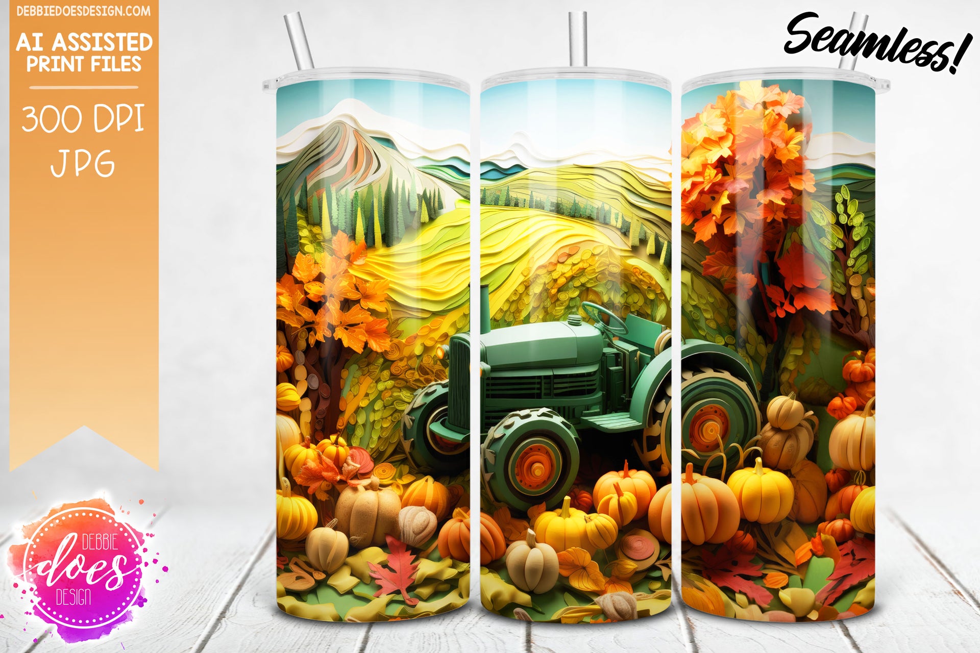 Green Tractor Autumn Fields - Tumbler - Seamless - AI Assisted Printable/Sublimation Design