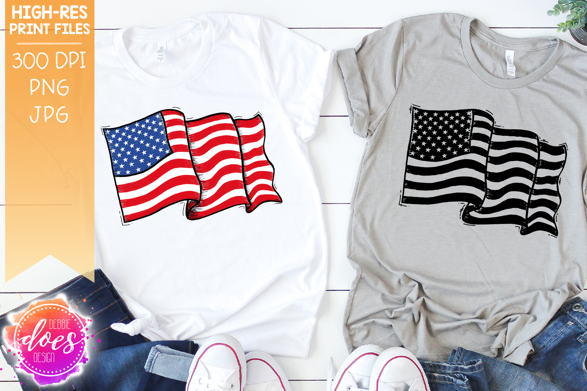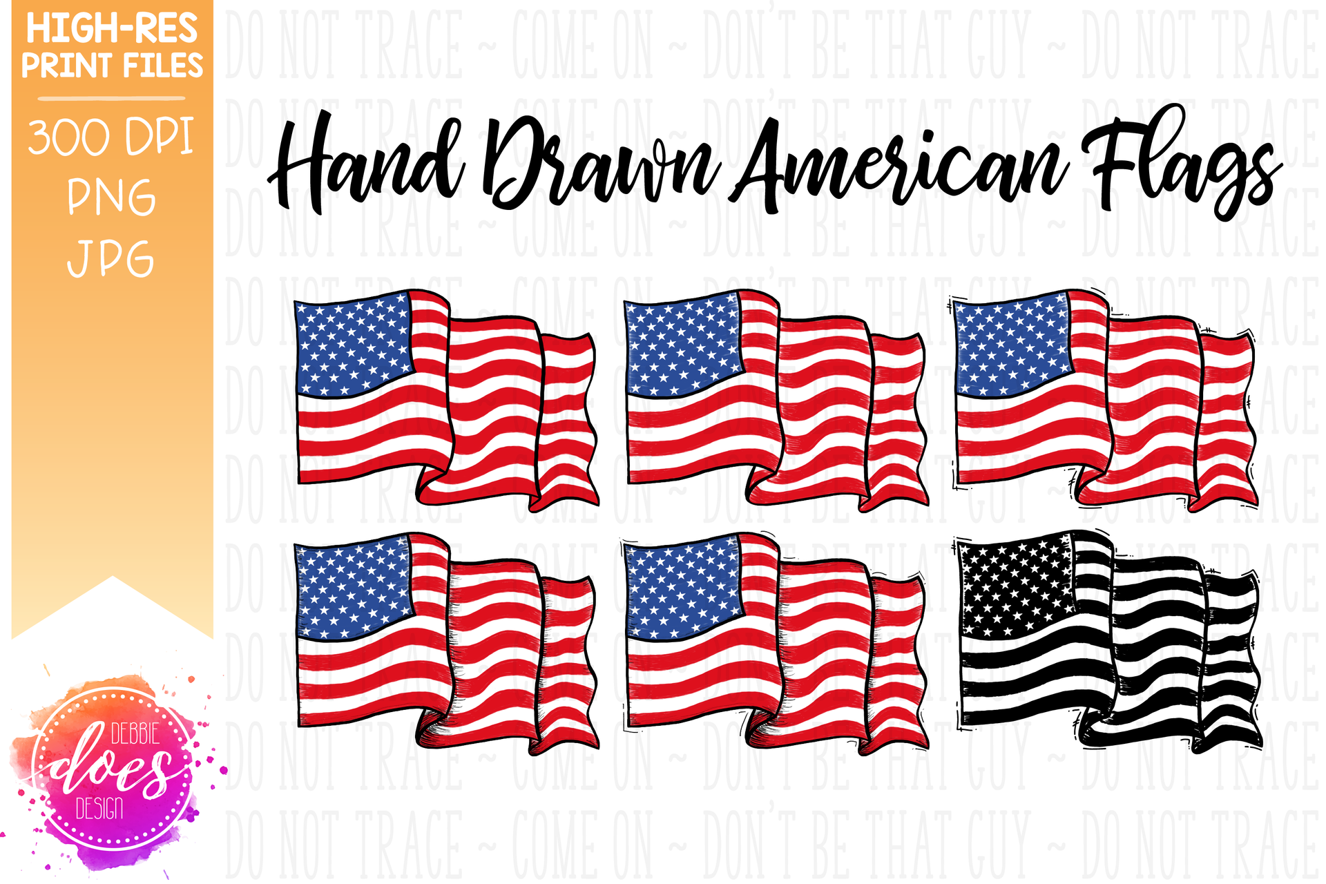 Hand Drawn American Flag (6 Pack) - Sublimation/Printable Design