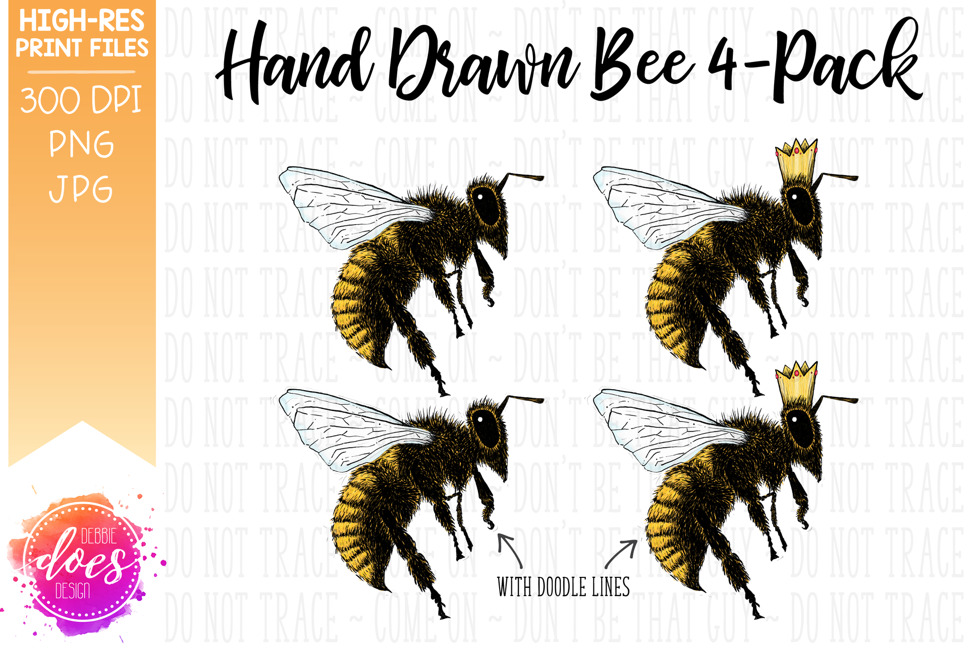 Hand Drawn Bee 4-Pack Bundle - Sublimation/Printable Design