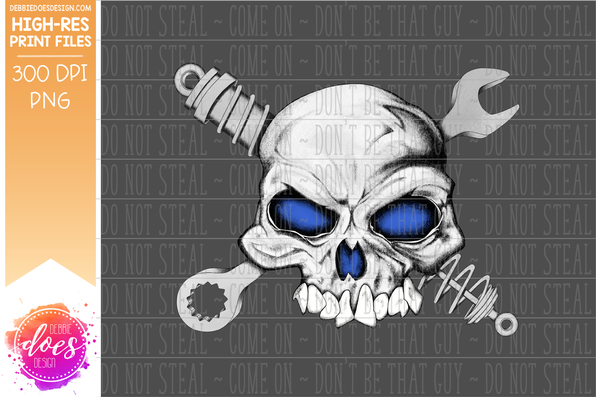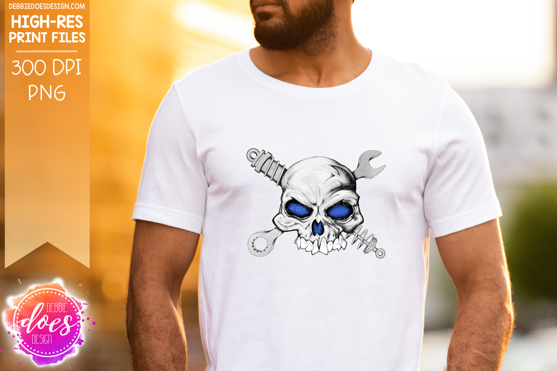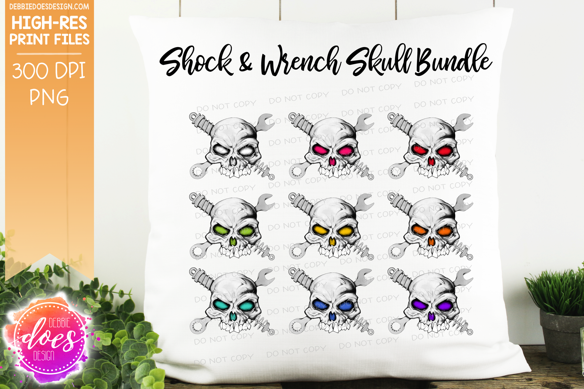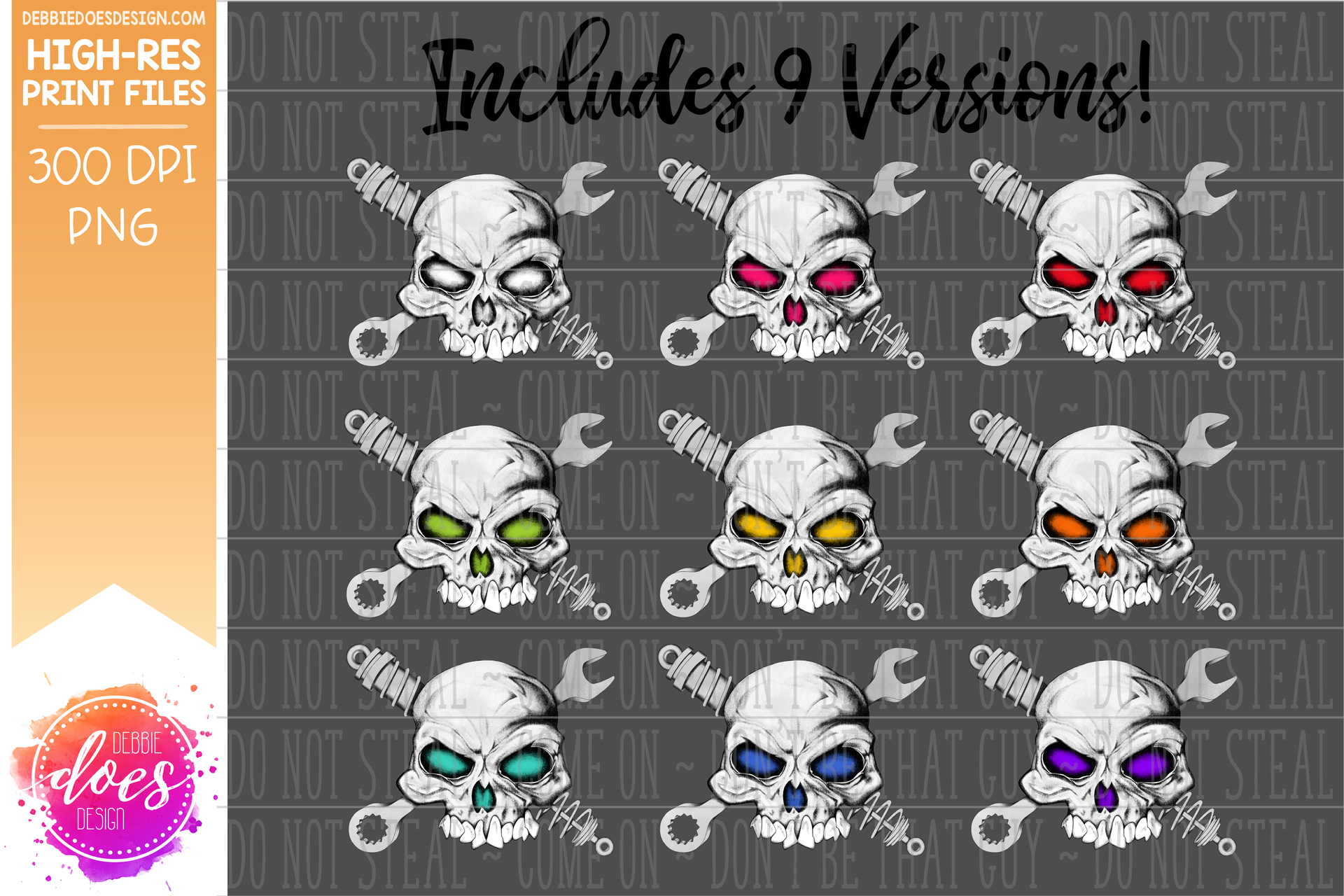 Hand Drawn Shock & Wrench Skull Bundle - Includes 9 Skulls! - Printable/Sublimation File