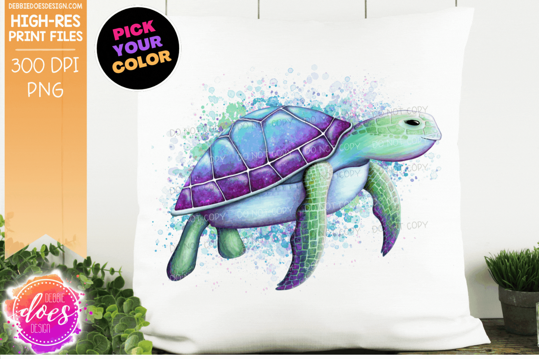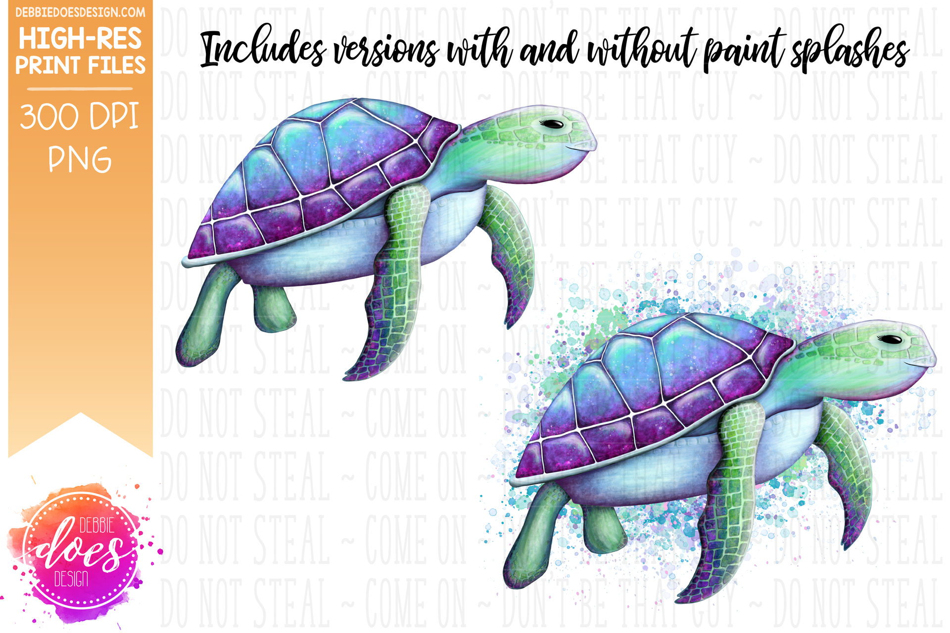 Hand Drawn Sea Turtle - Choose your Color - Includes 2 files! - Sublimation/Printable Design