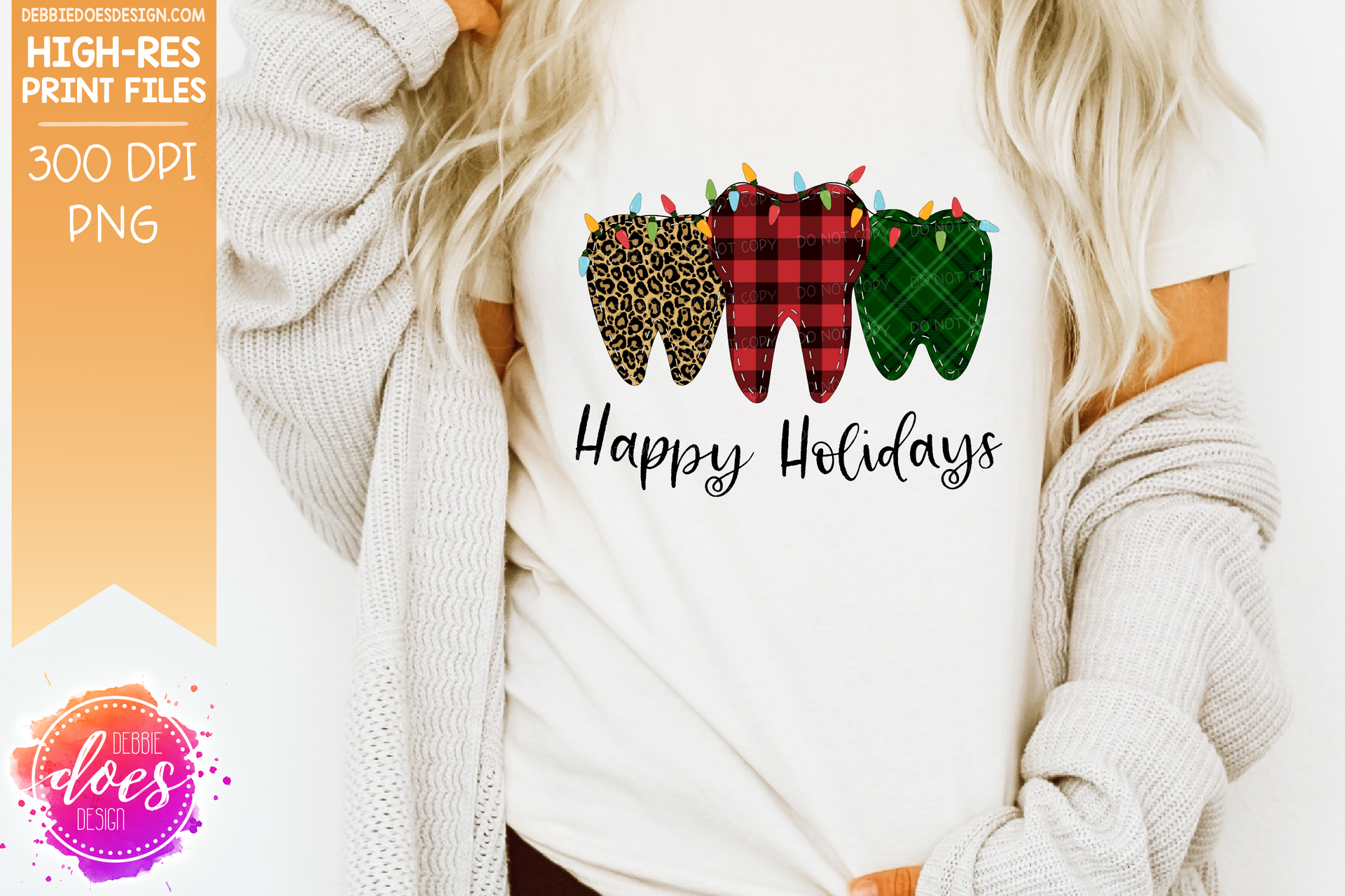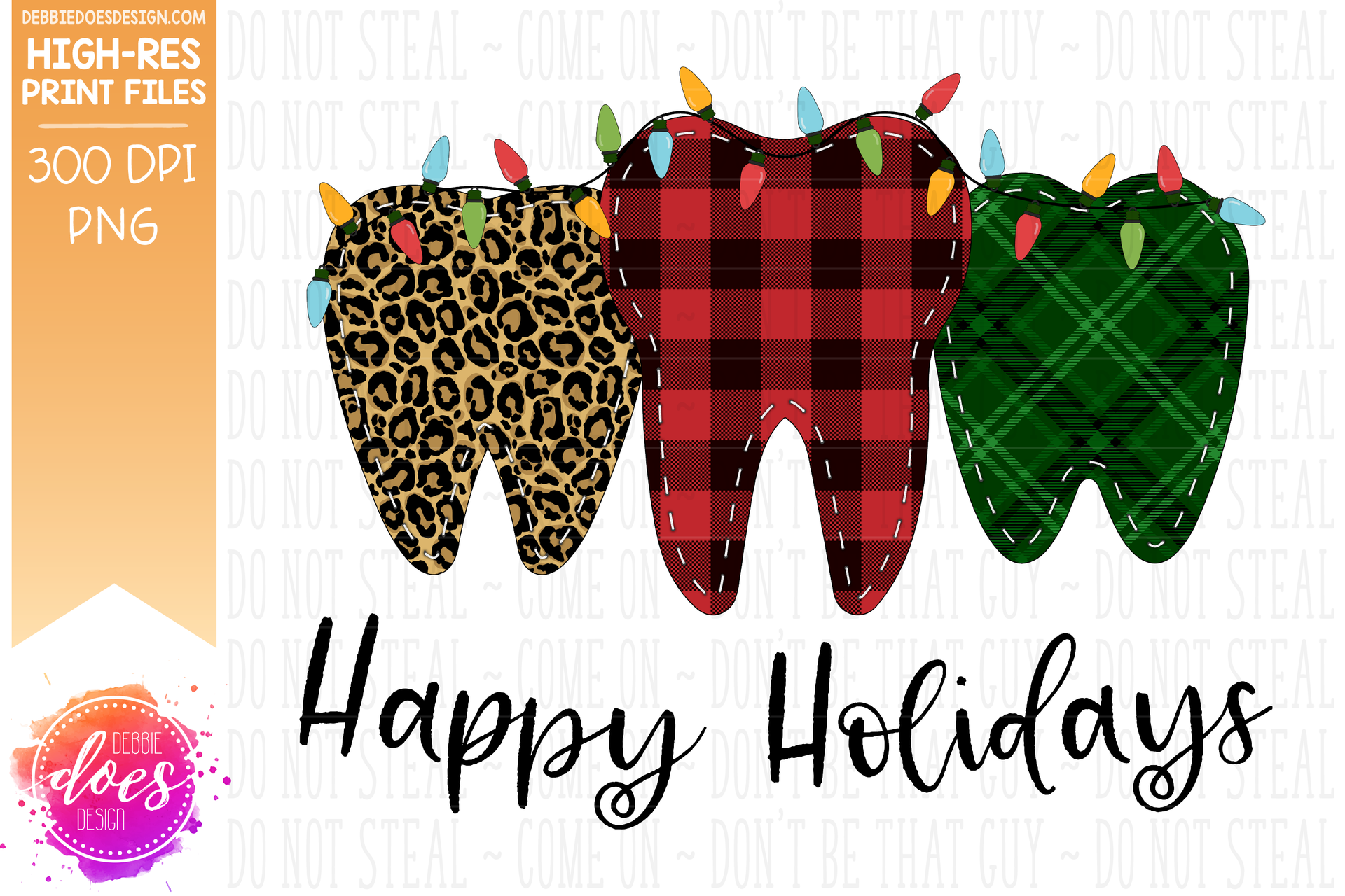 Happy Holidays Leopard Plaid Teeth with Lights - Sublimation/Printable Design