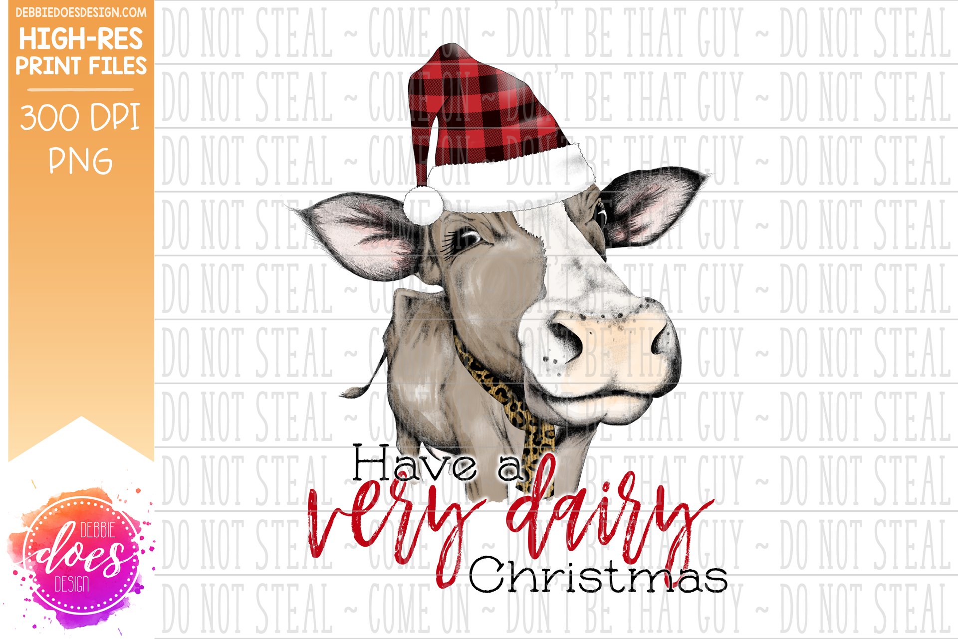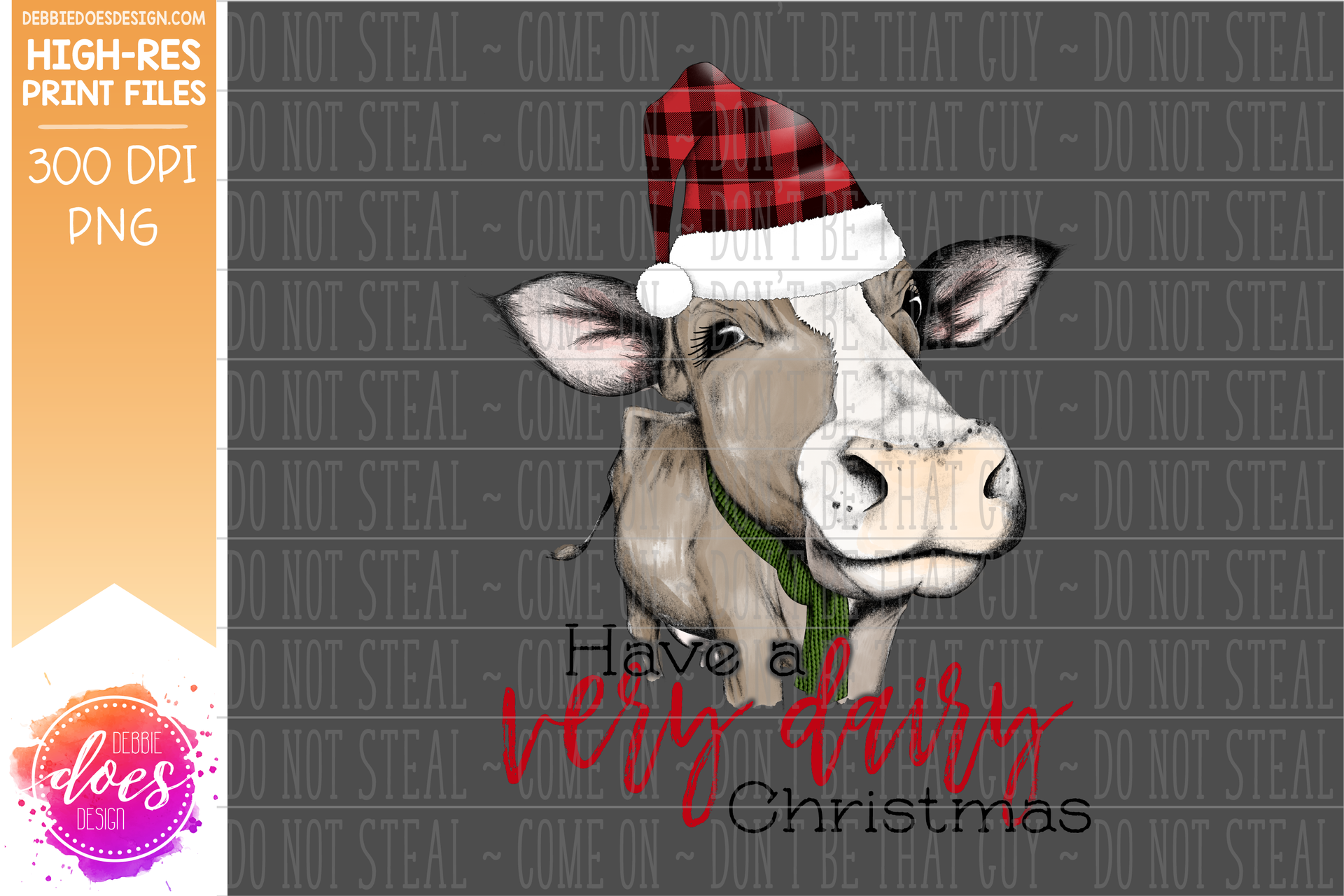 Have a Very Dairy Christmas - Brown Cow - 2 Colors Included! - Printable/Sublimation File