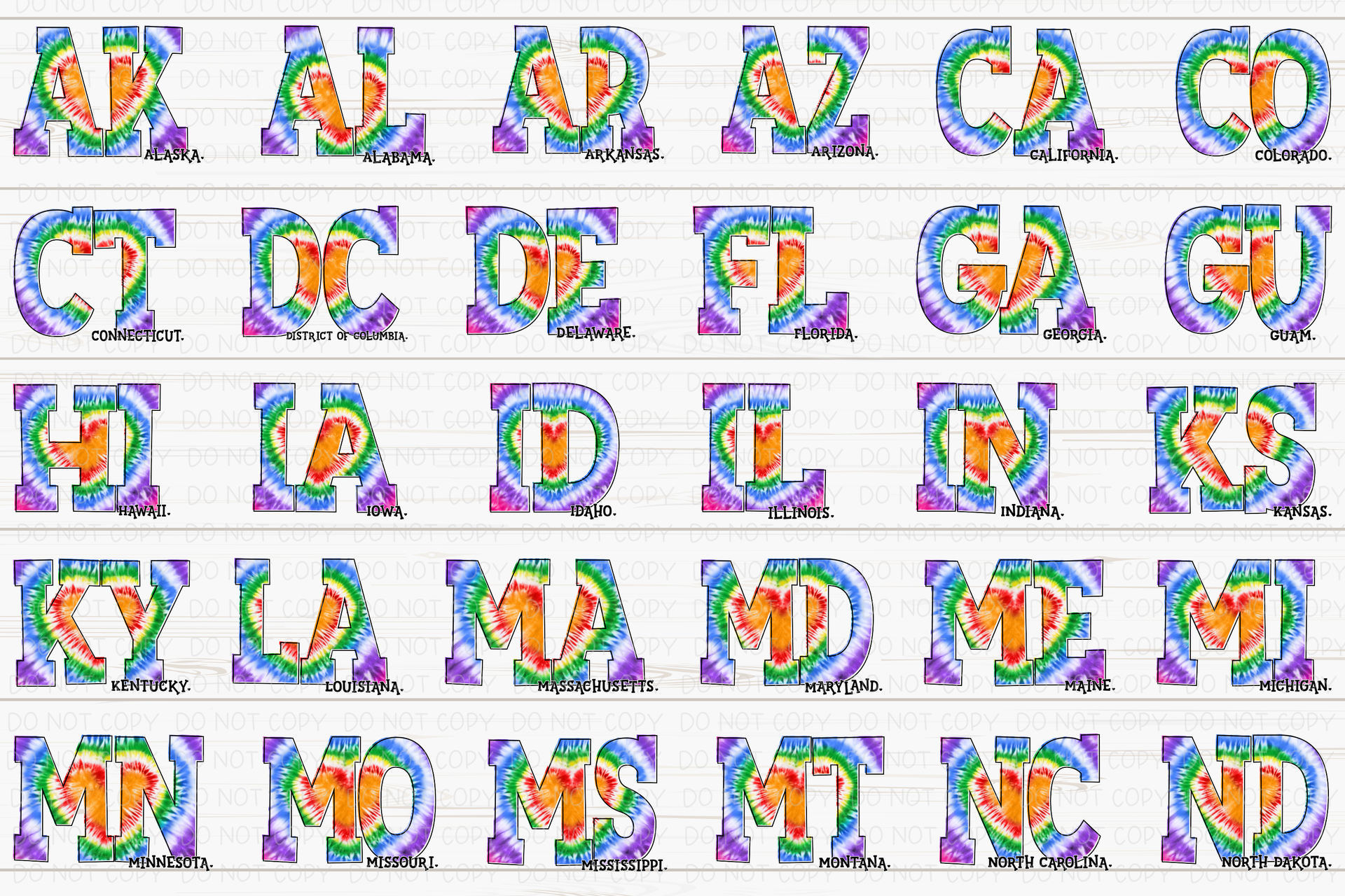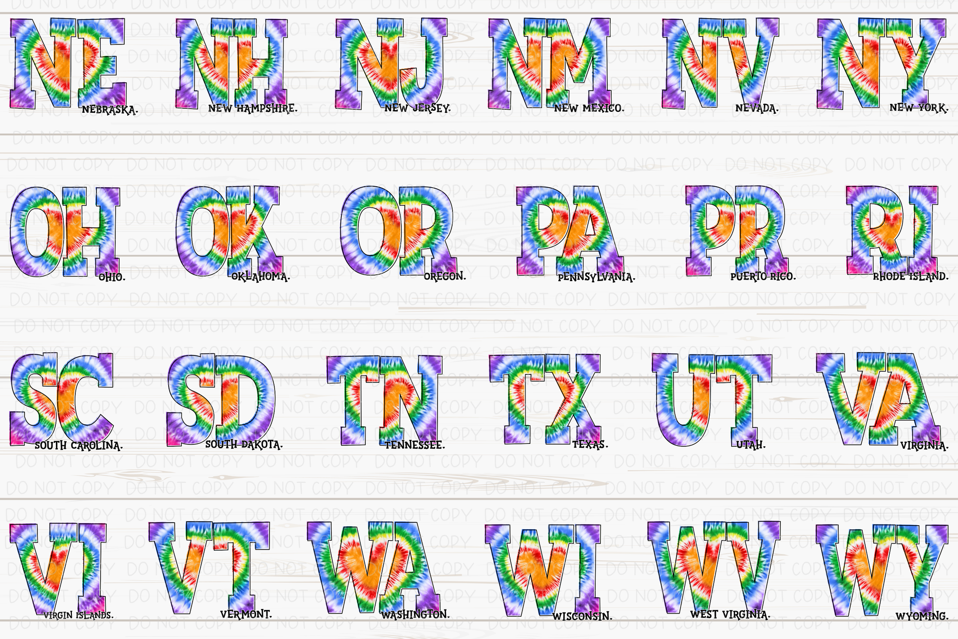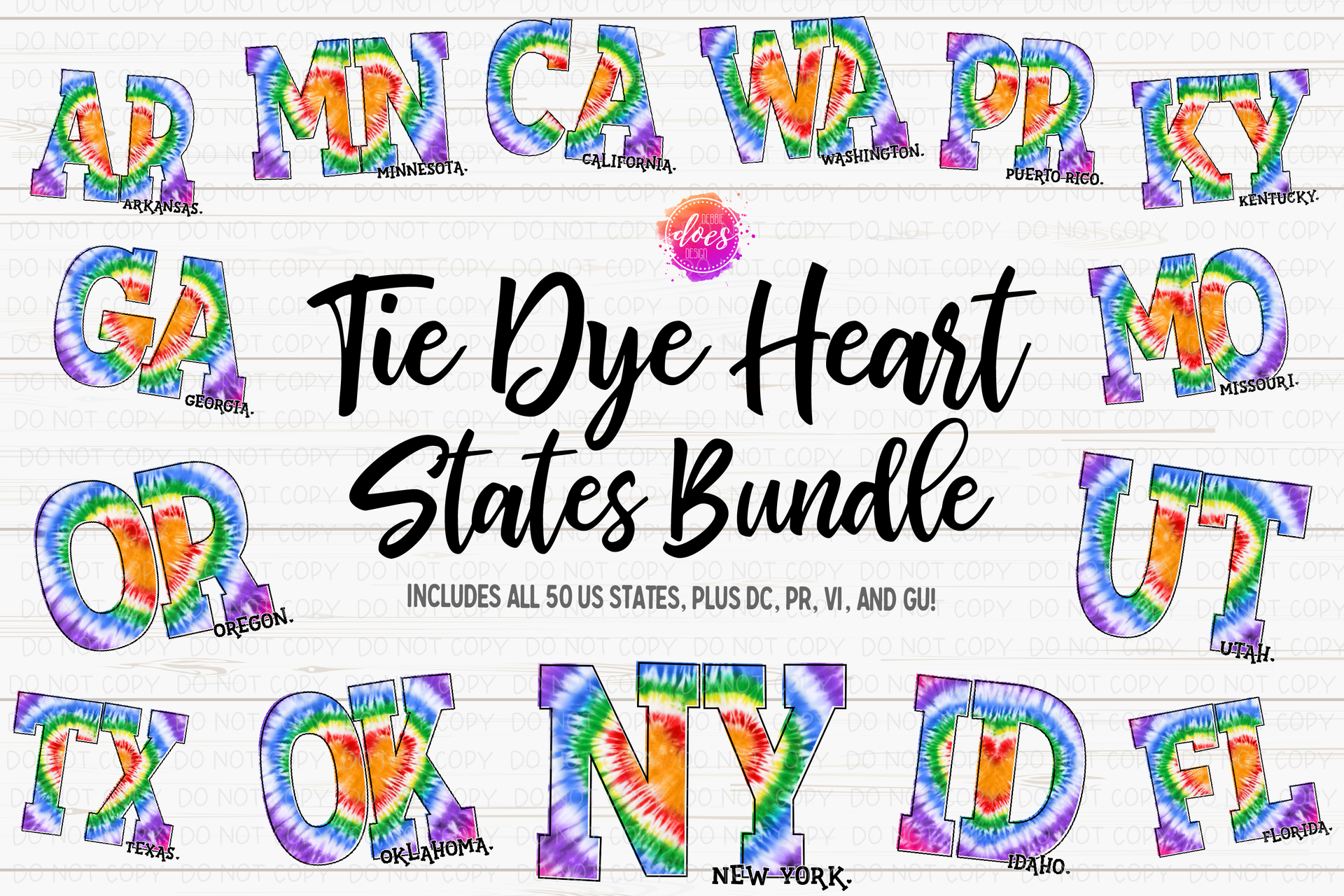 Heart Tie Dye States Bundle - All 50 States + DC, PR, GU, & VI! - Sublimation/Printable Designs