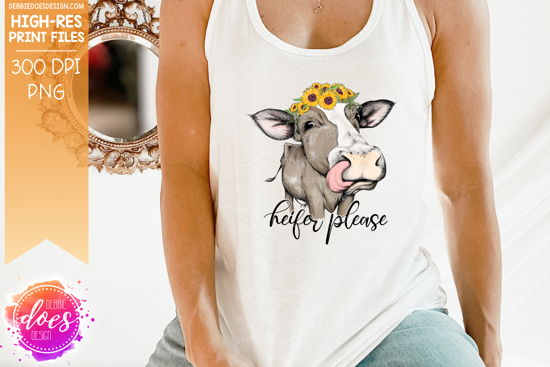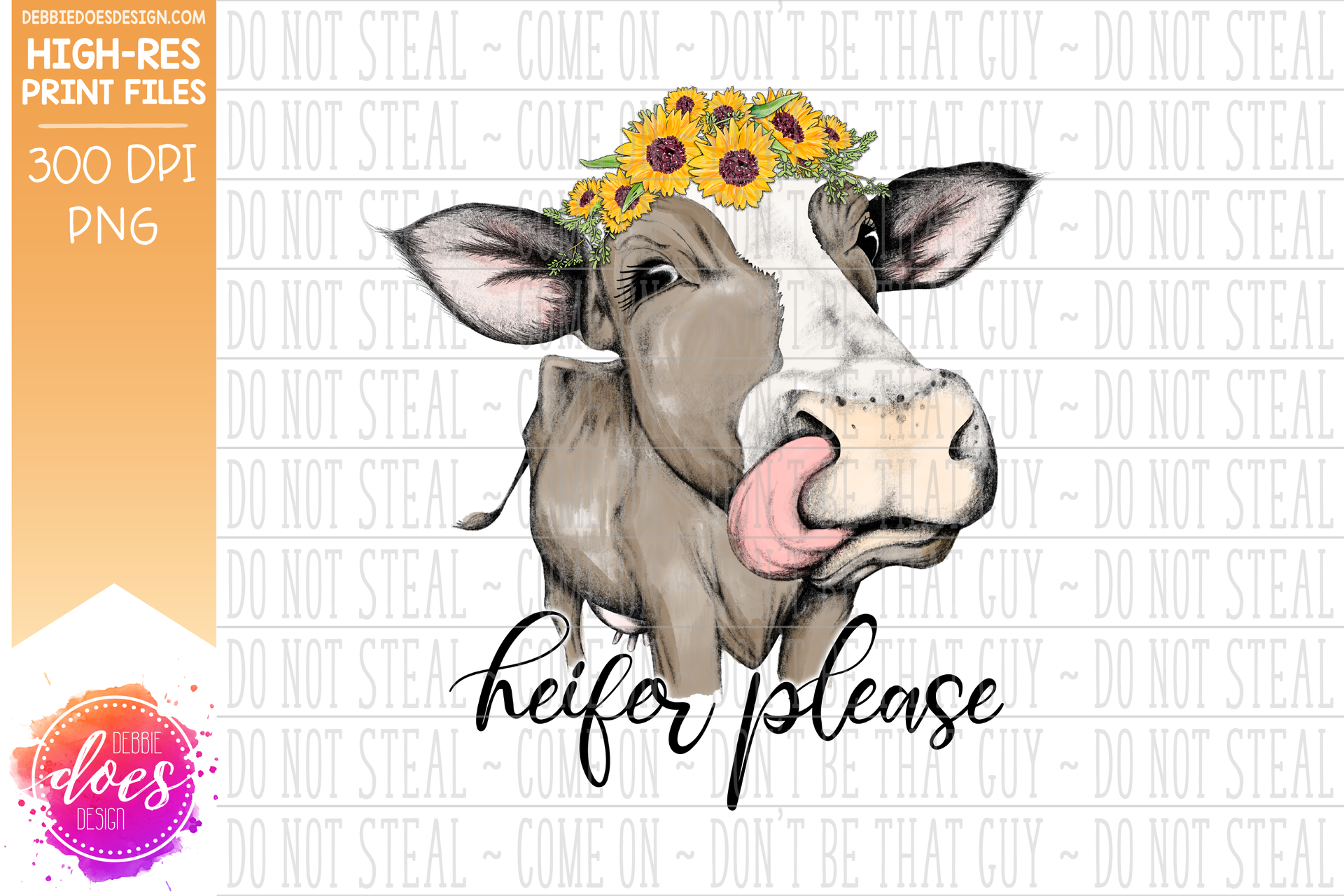 Heifer Please - Sunflower - Brown Cow - Printable/Sublimation File