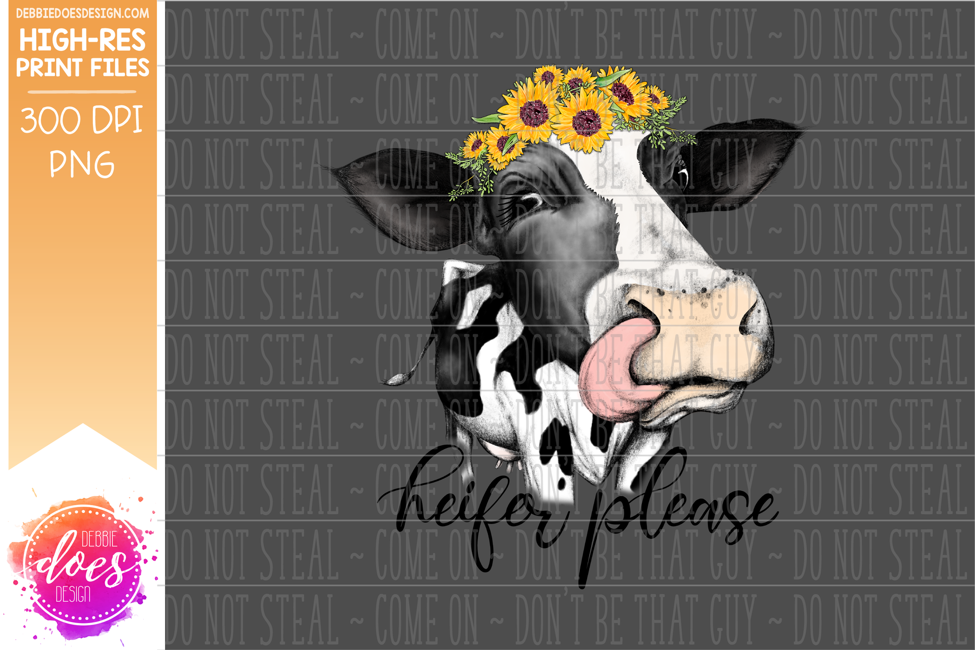 Heifer Please - Sunflower - Dairy Cow - Printable/Sublimation File