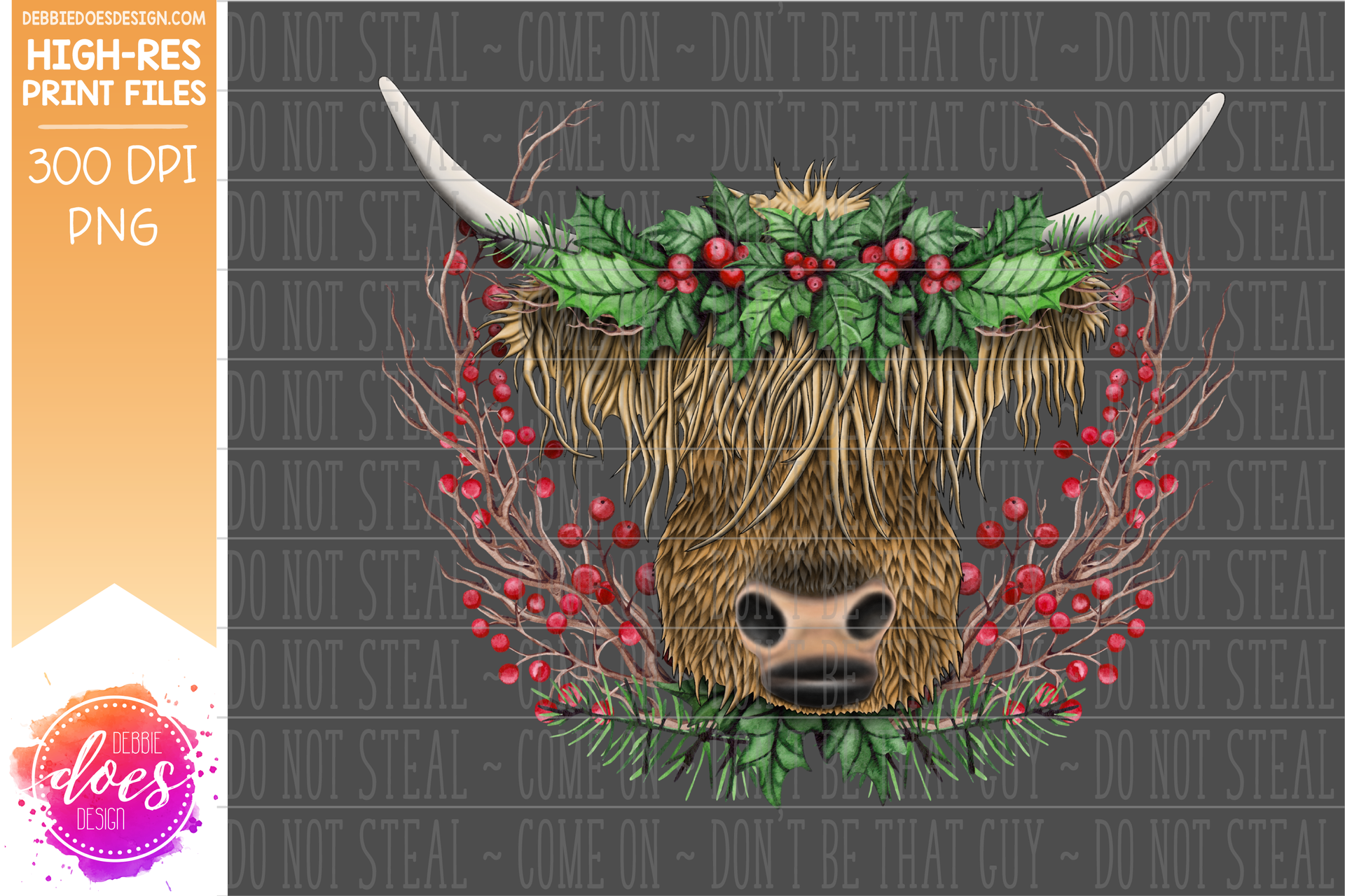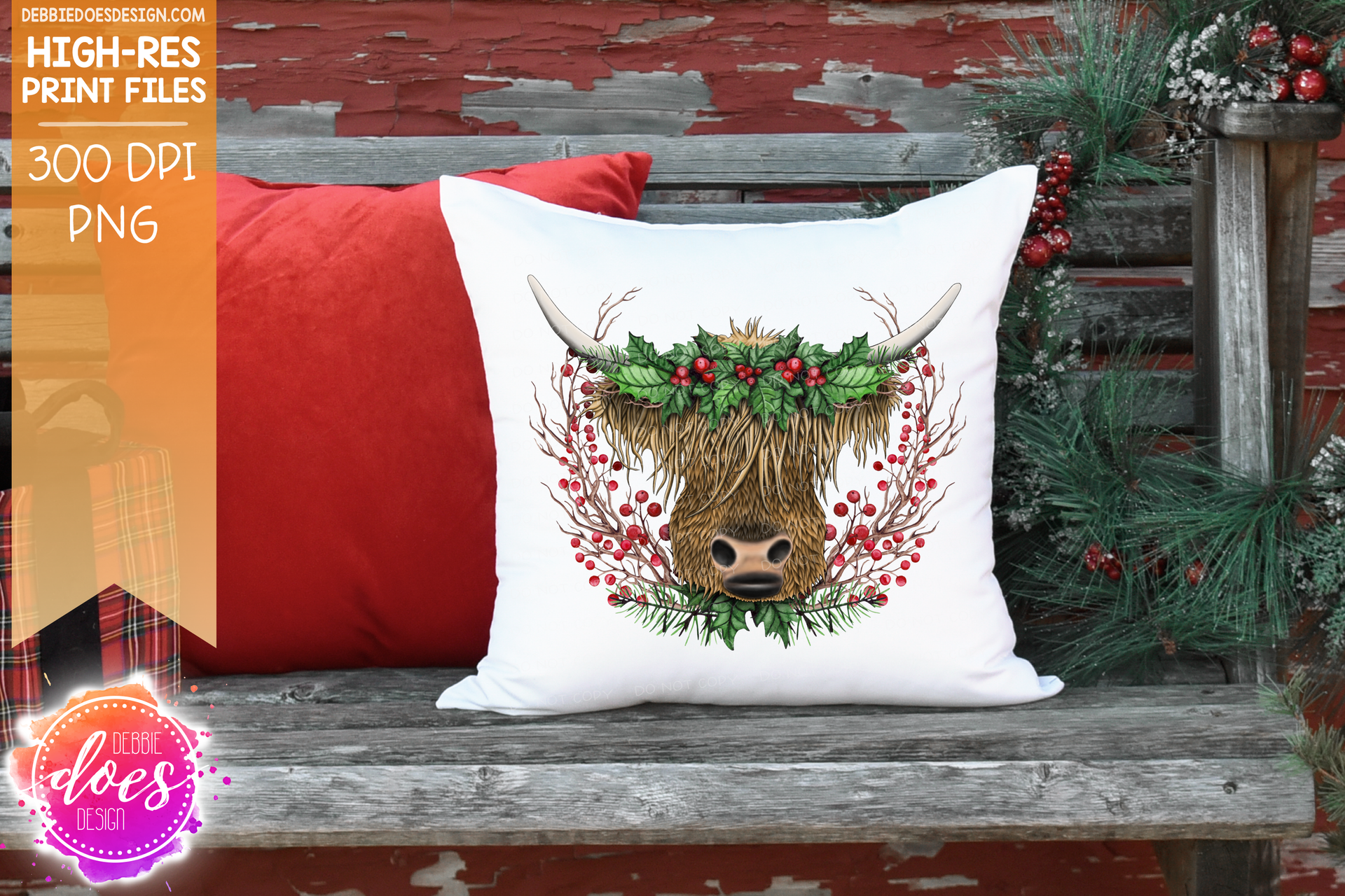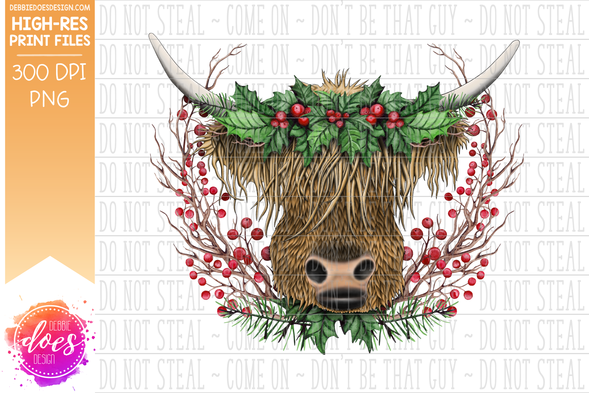Highland Cow Christmas Wreath - Sublimation/Printable Design