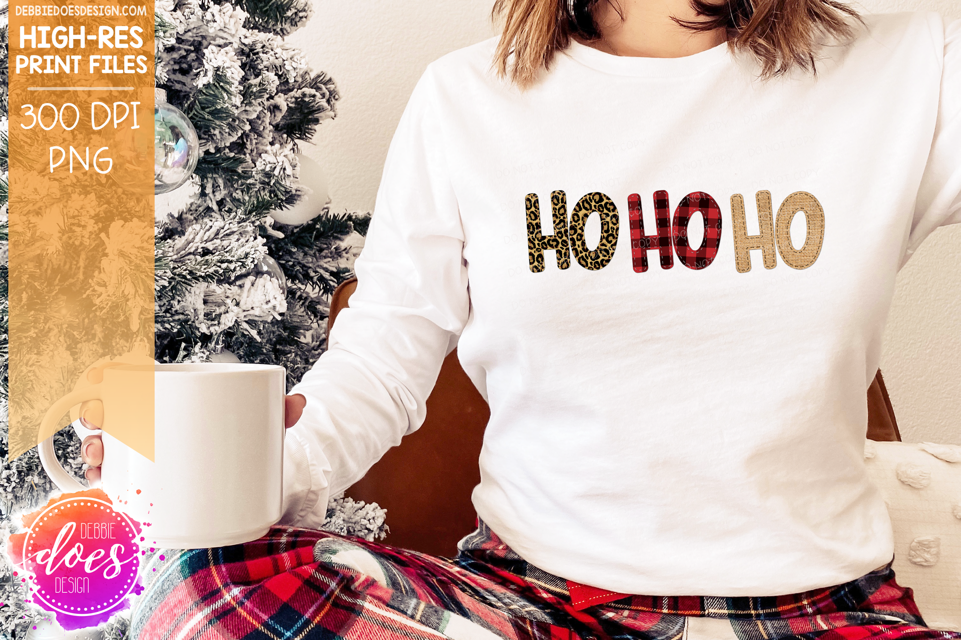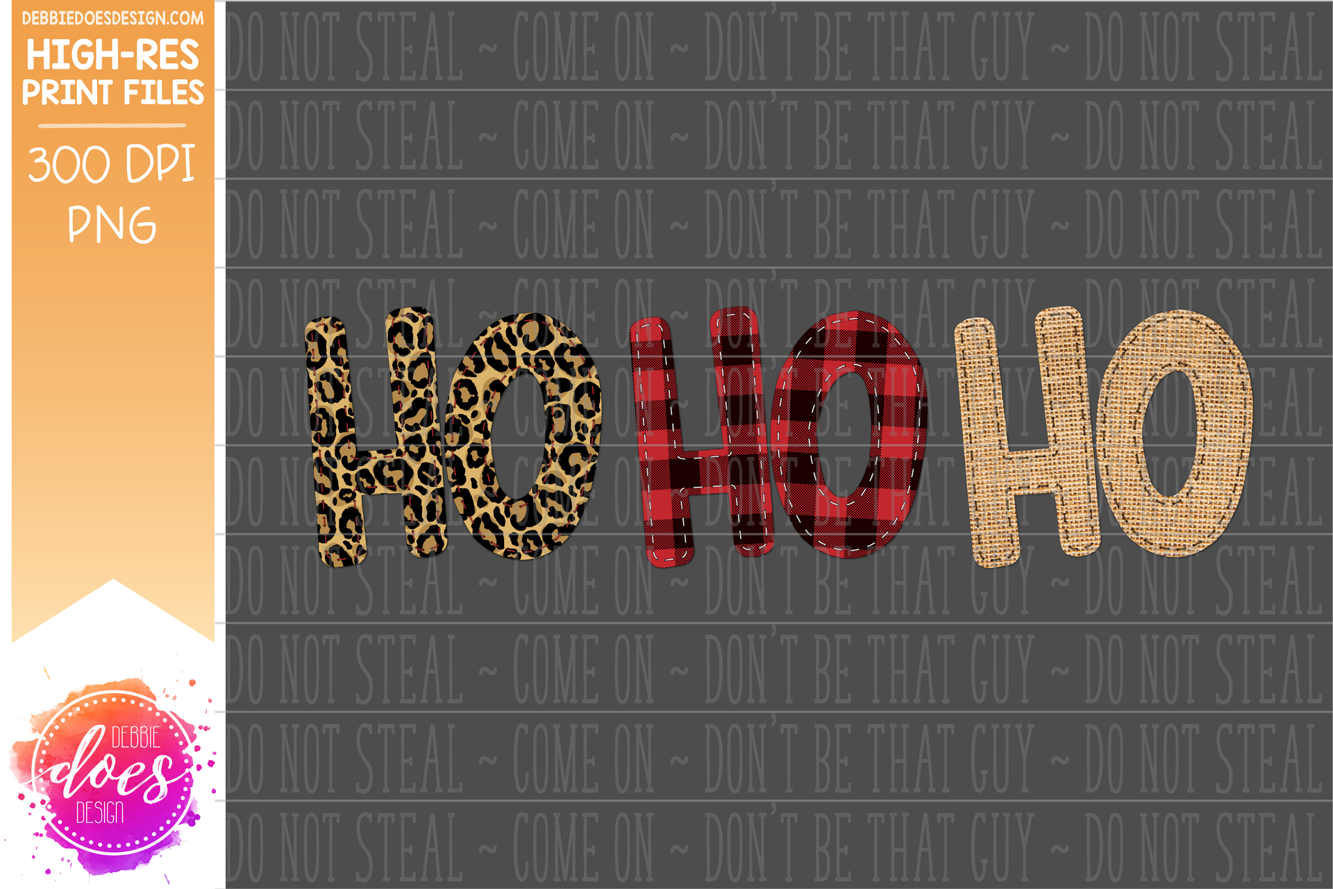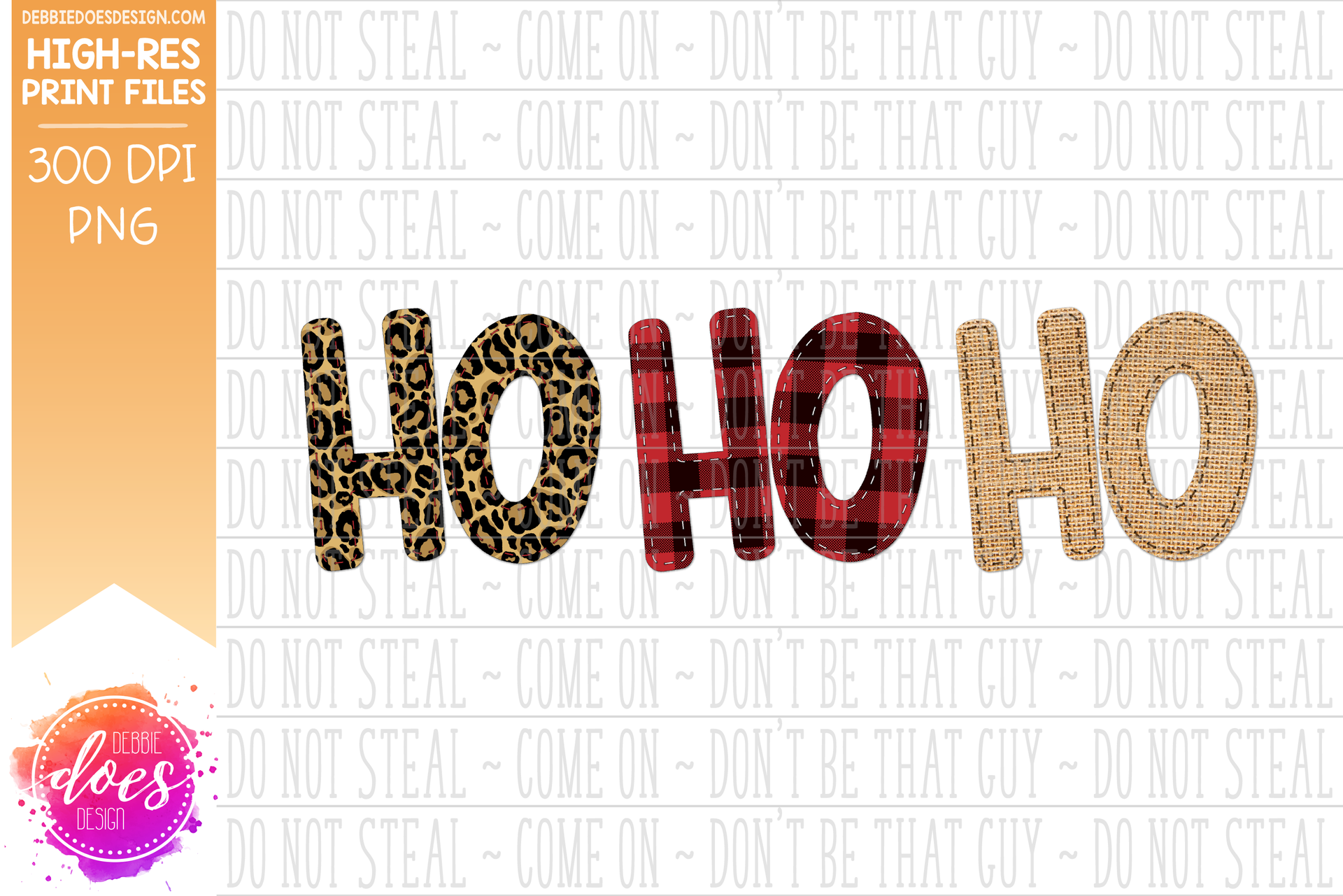 Ho Ho Ho Leopard Plaid Burlap Patches - Printable/Sublimation Design