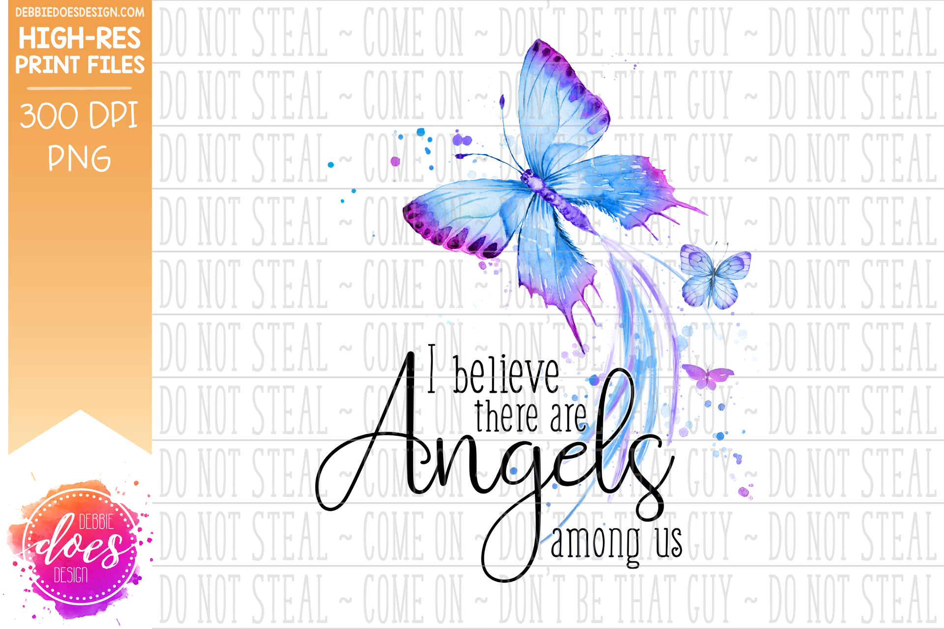 I Believe There Are Angels Are Among Us - Butterflies - Blue/Purple - Printable/Sublimation File