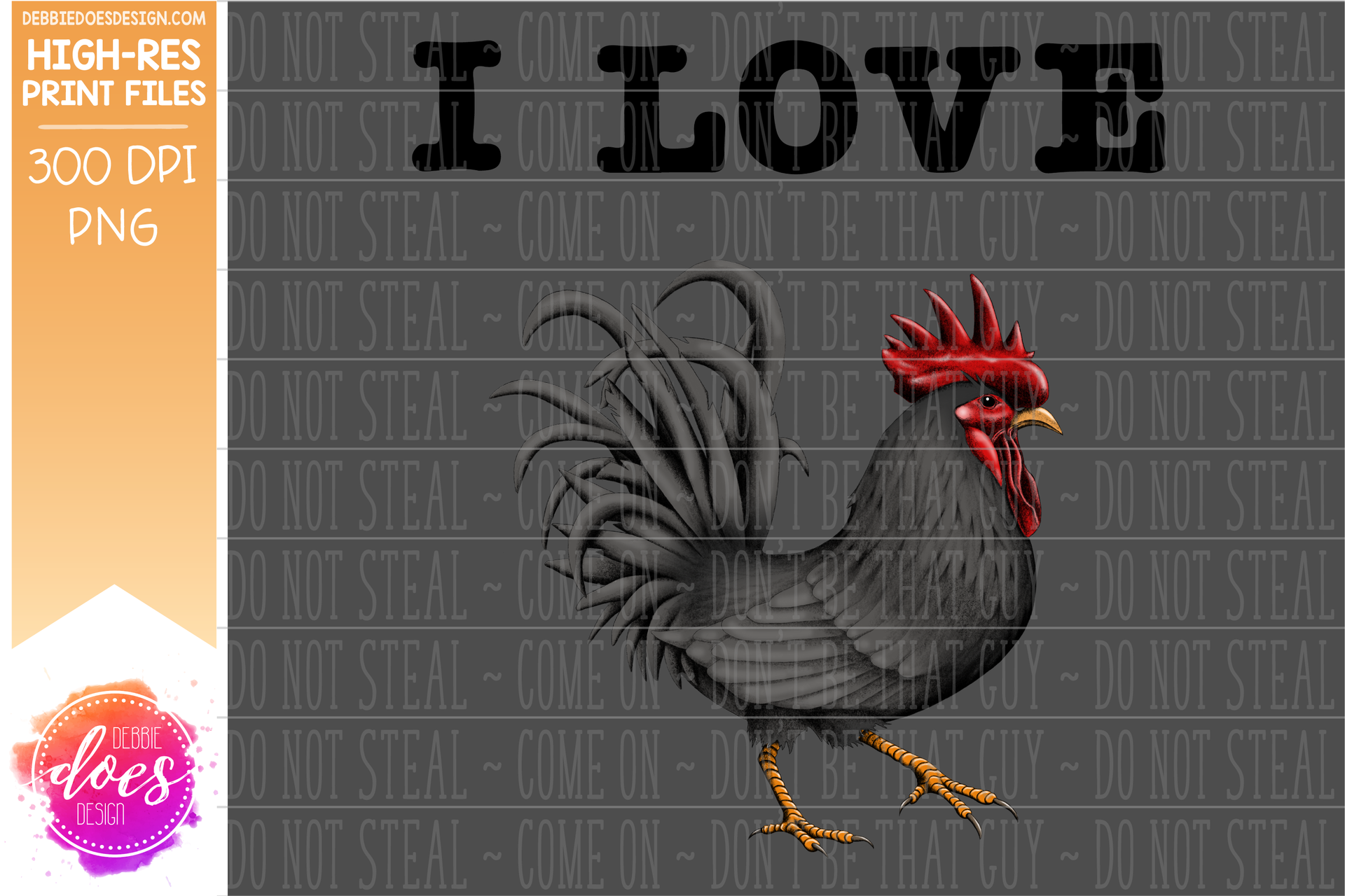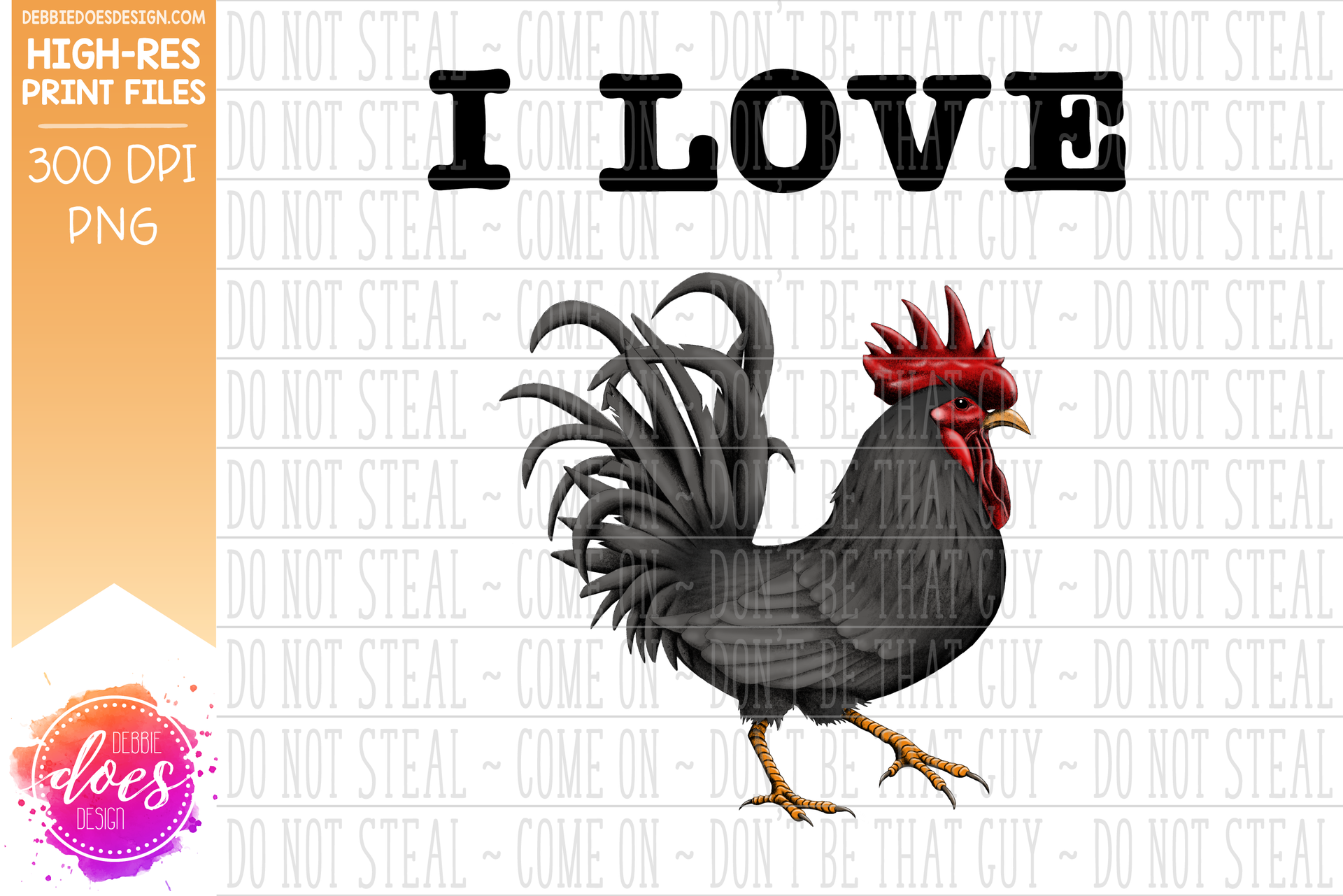 I Love Cock/Roosters - Black - Sublimation/Printable Design