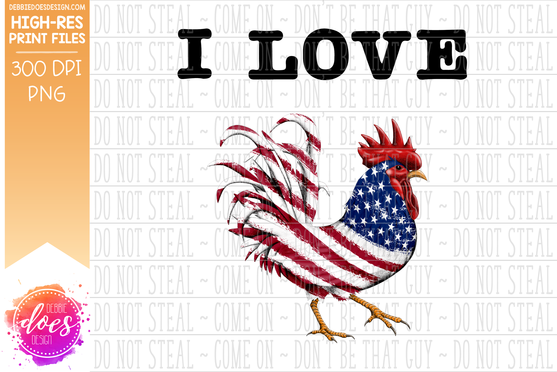I Love Cock/Roosters - USA - Sublimation/Printable Design