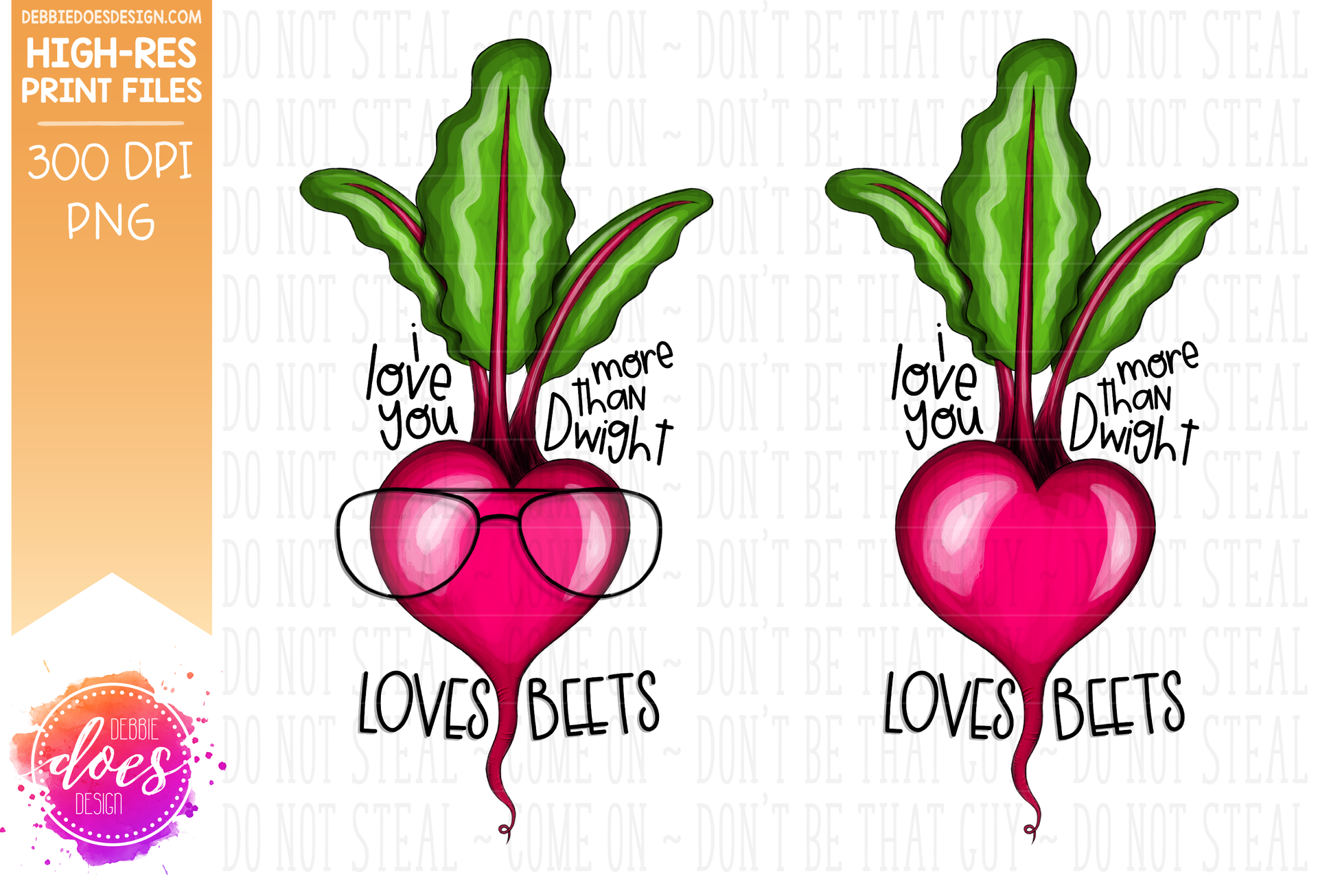 I Love You More than Dwight Loves Beets - 2 Versions - With & Without Glasses - Sublimation/Printable Design