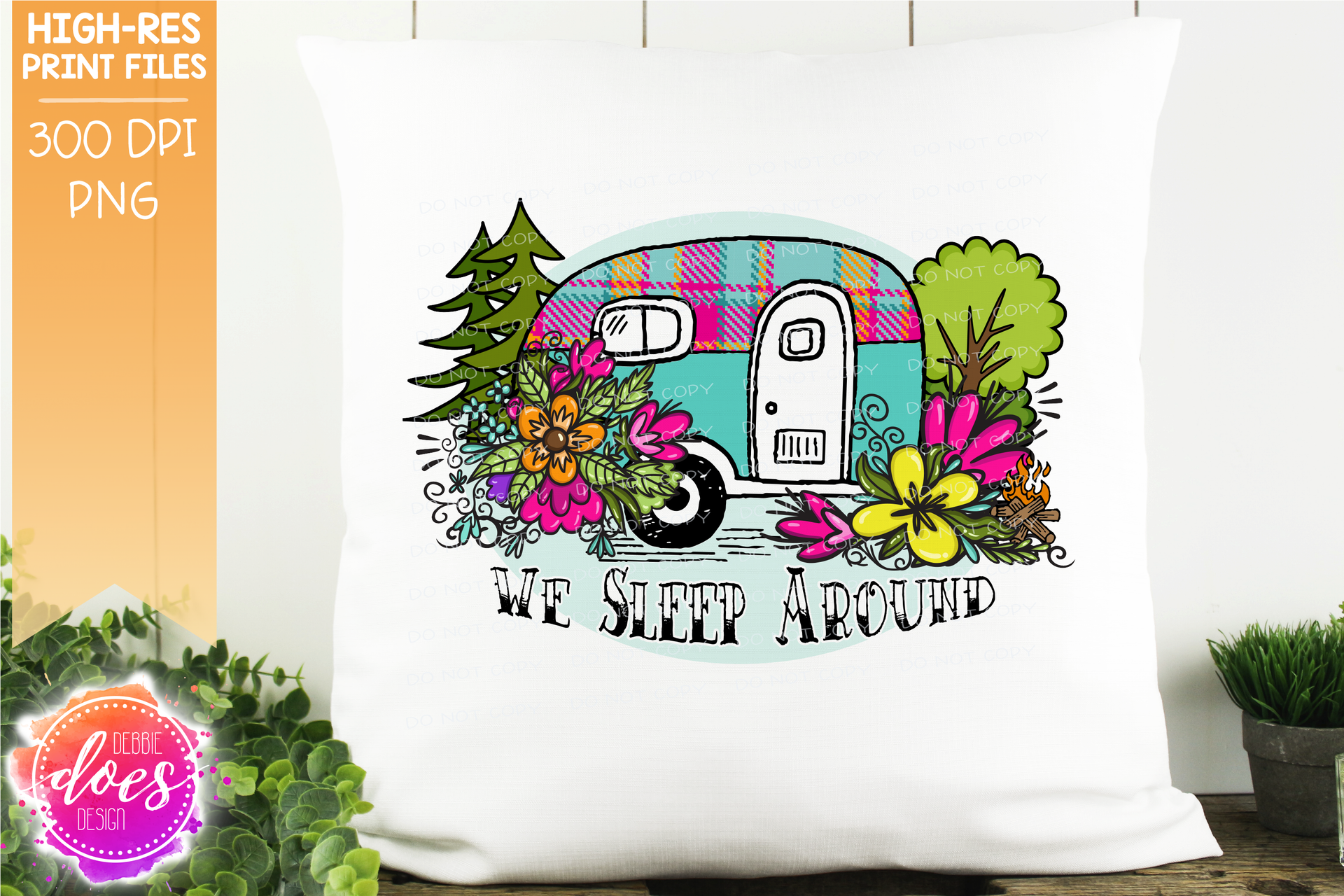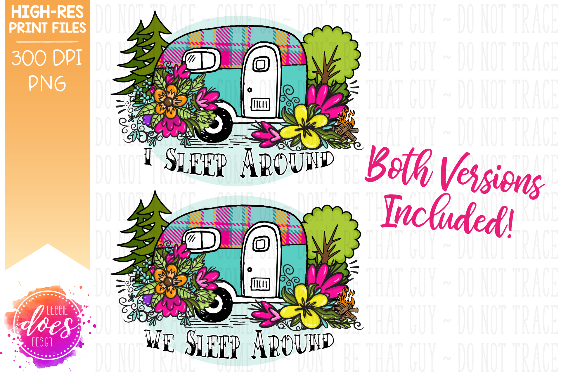 We Sleep Around/I Sleep Around - Flower Camper - 2 Versions! - Sublimation/Printable Design