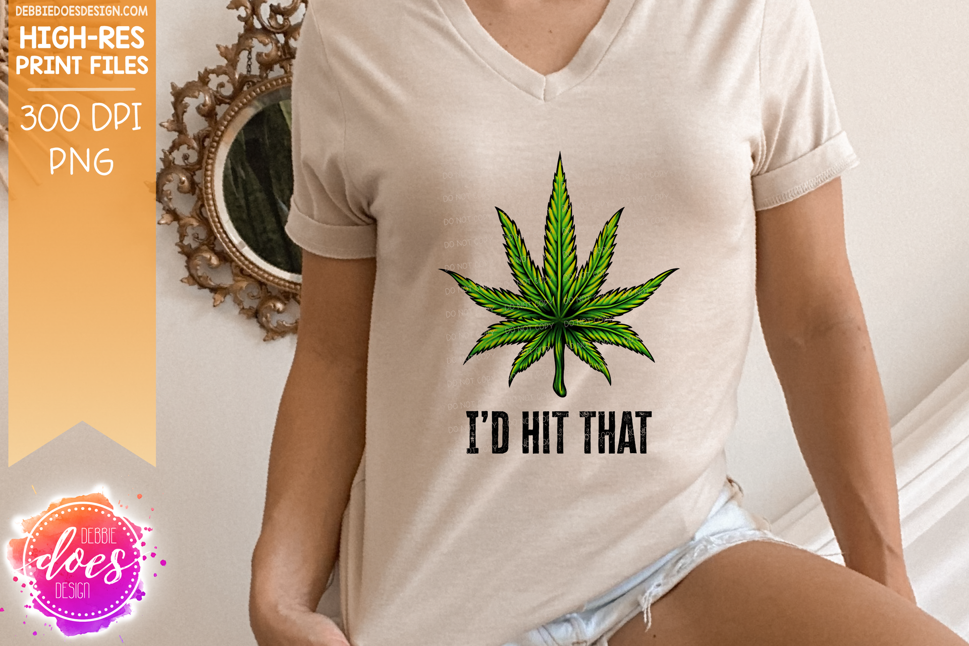 I'd Hit That - Green Yellow Marijuana Leaf - Printable/Sublimation Designs