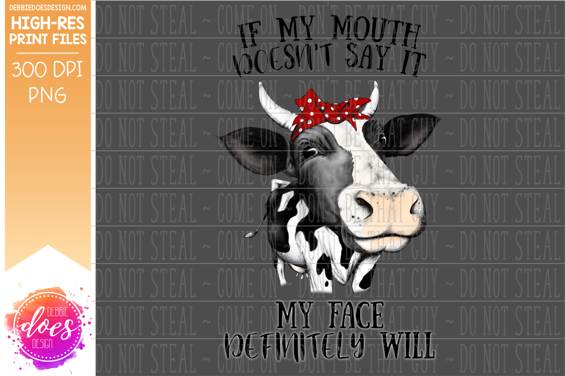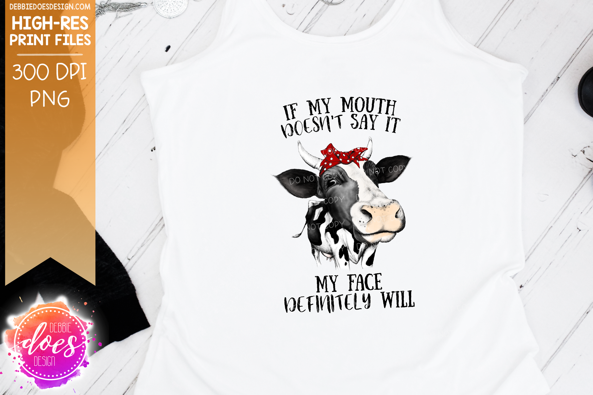 If My Mouth Doesn't Say It My Face Definitely Will - Dairy Cow - Printable/Sublimation File