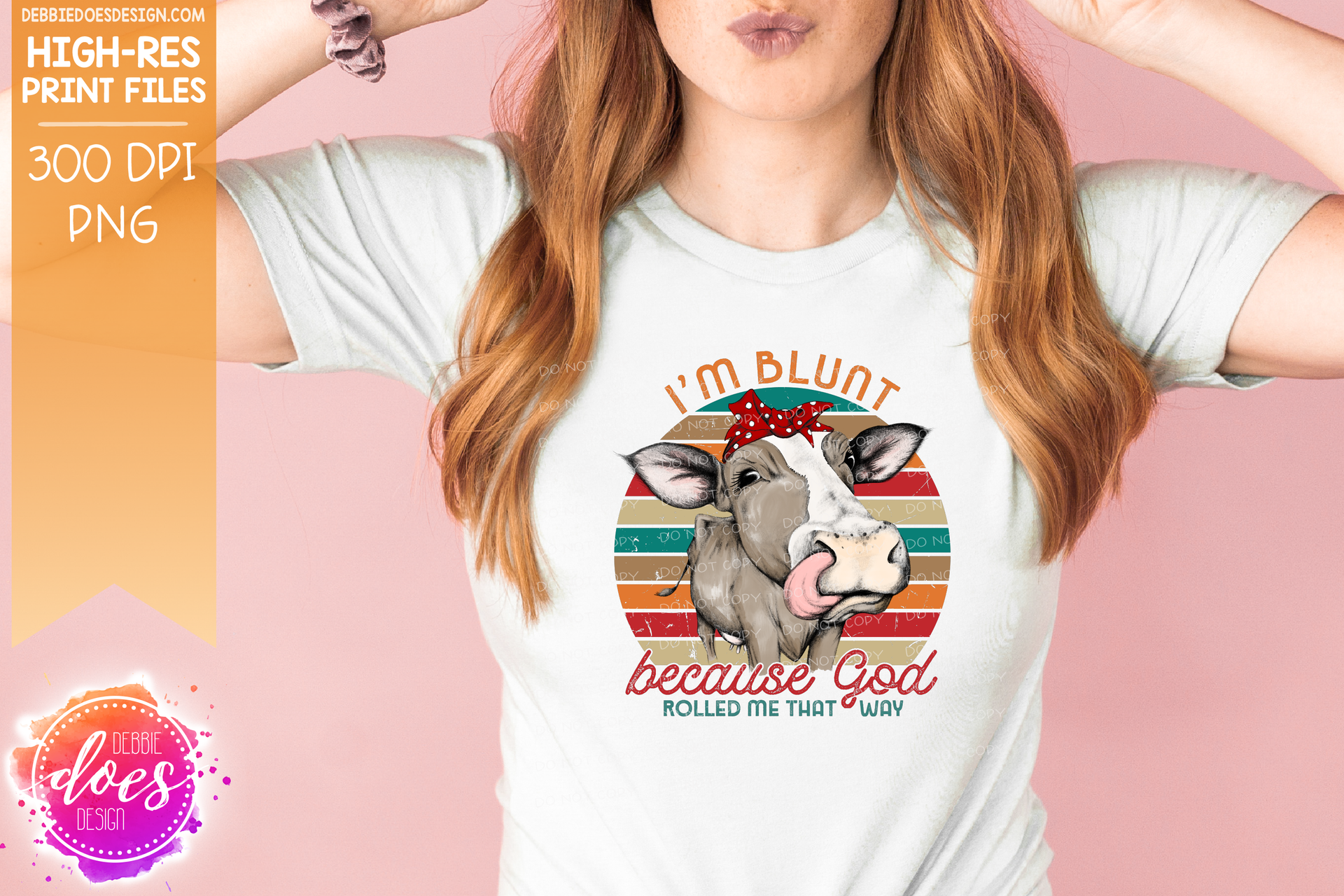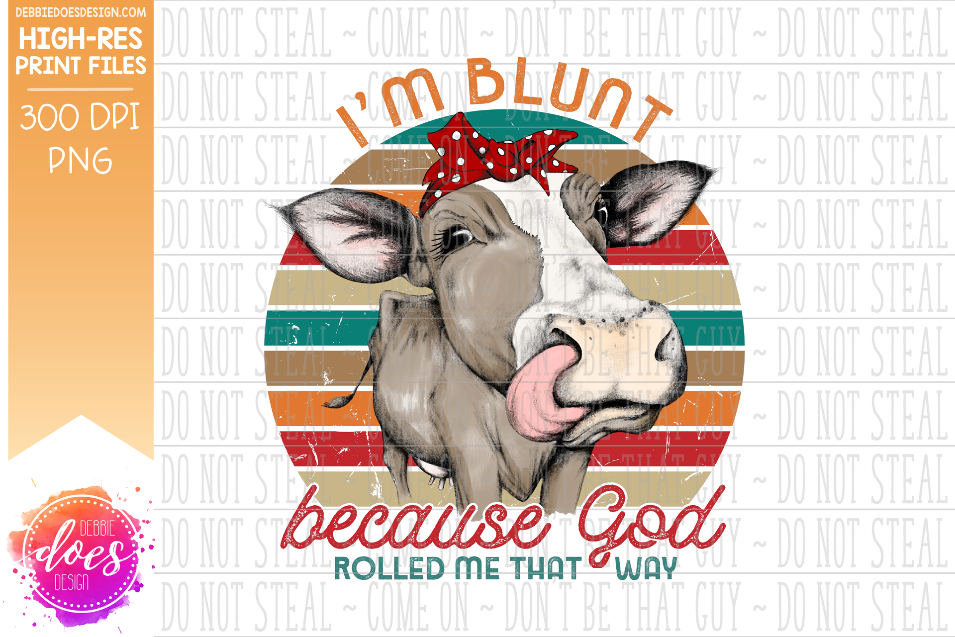I'm Blunt Because God Rolled Me That Way - Hand Drawn Cow - Brown Cow - Printable/Sublimation File