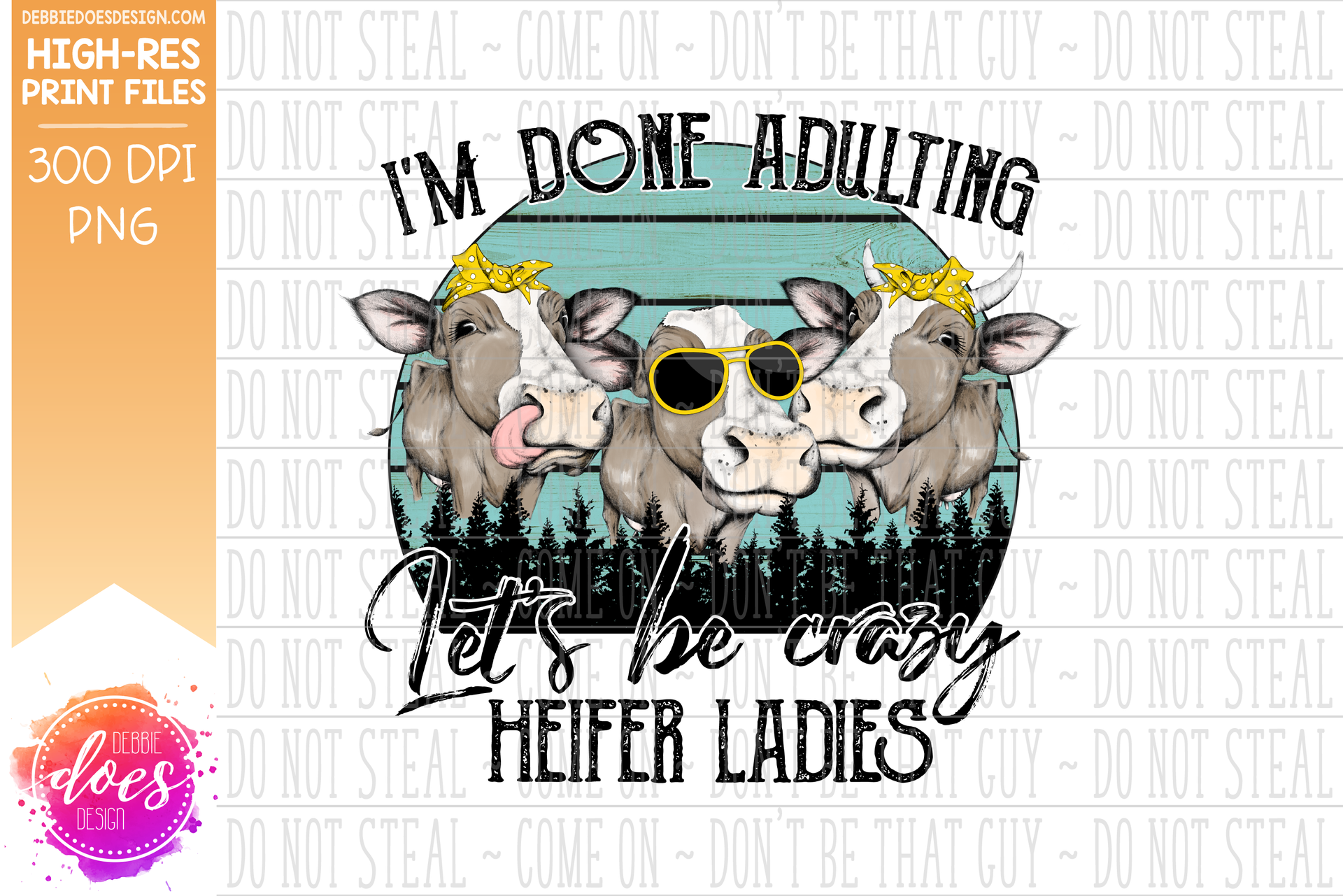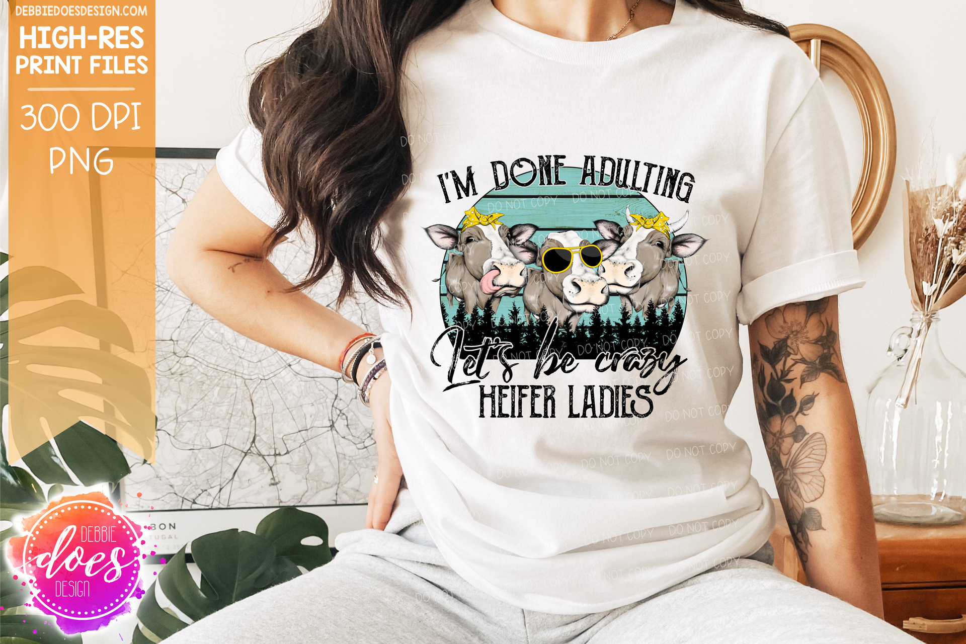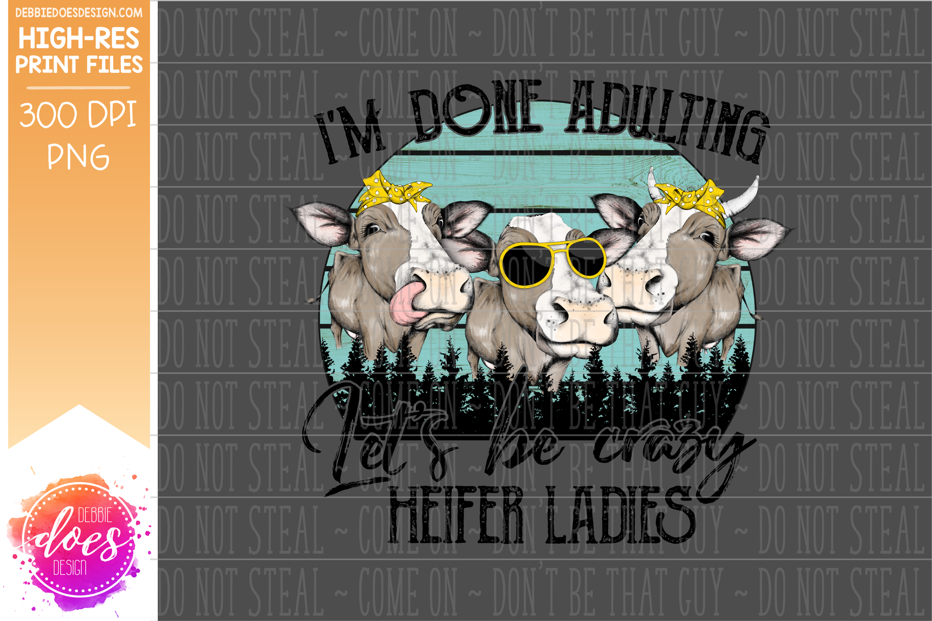 I'm Done Adulting - Teal - Hand Drawn Cow Print - Printable/Sublimation File