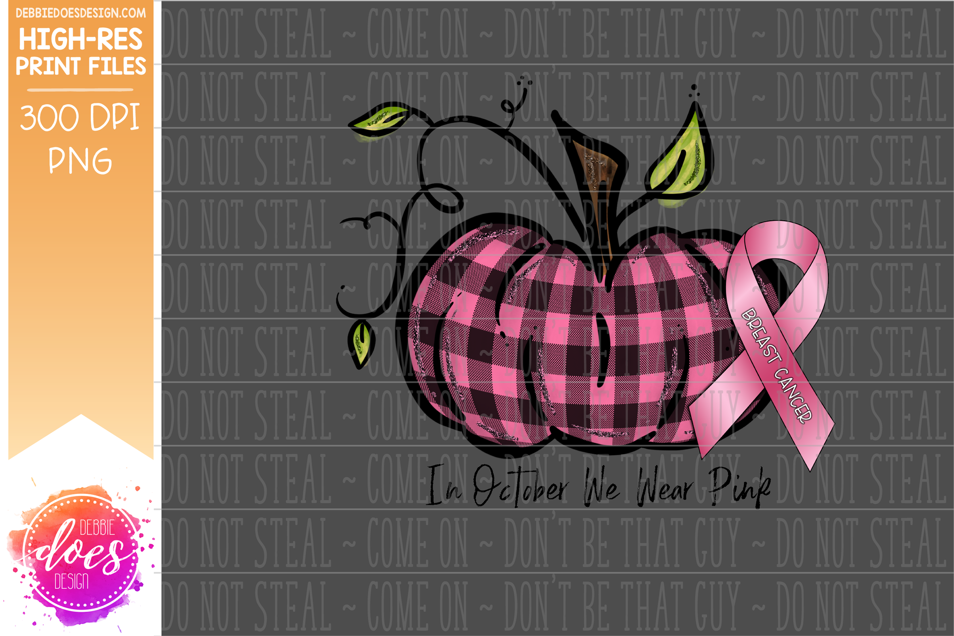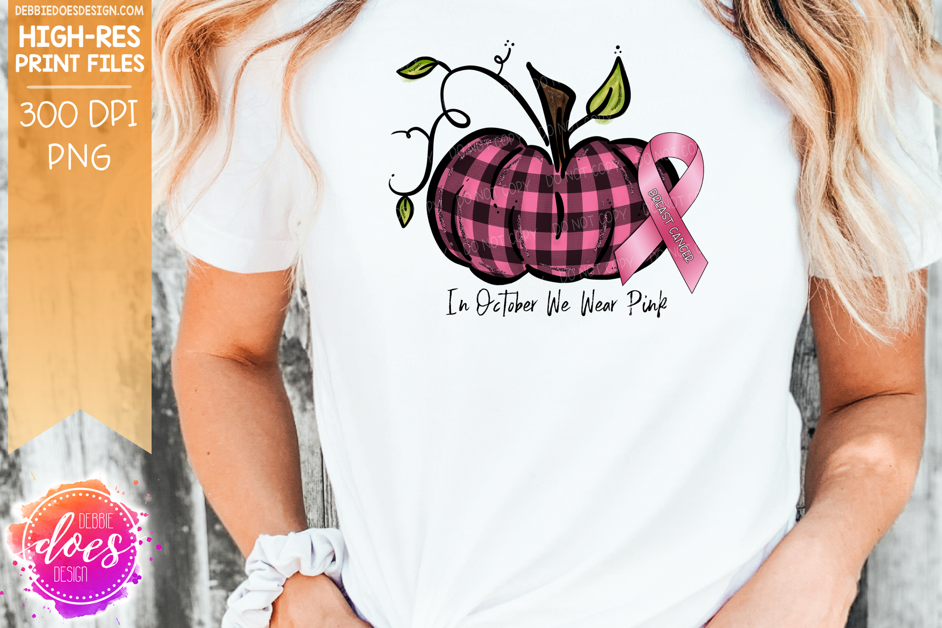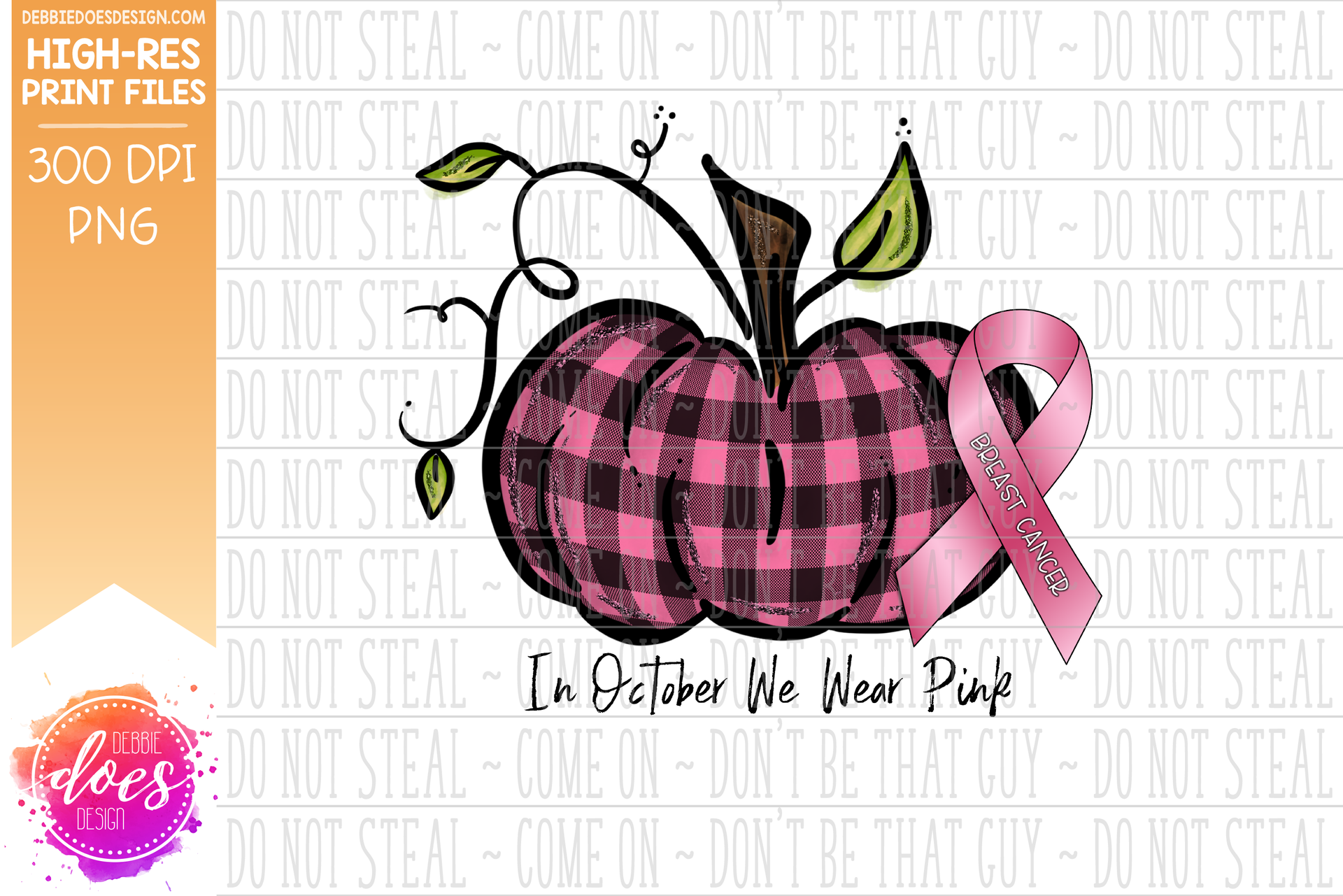In October We Wear Pink - Breast Cancer Pumpkin - Printable/Sublimation File