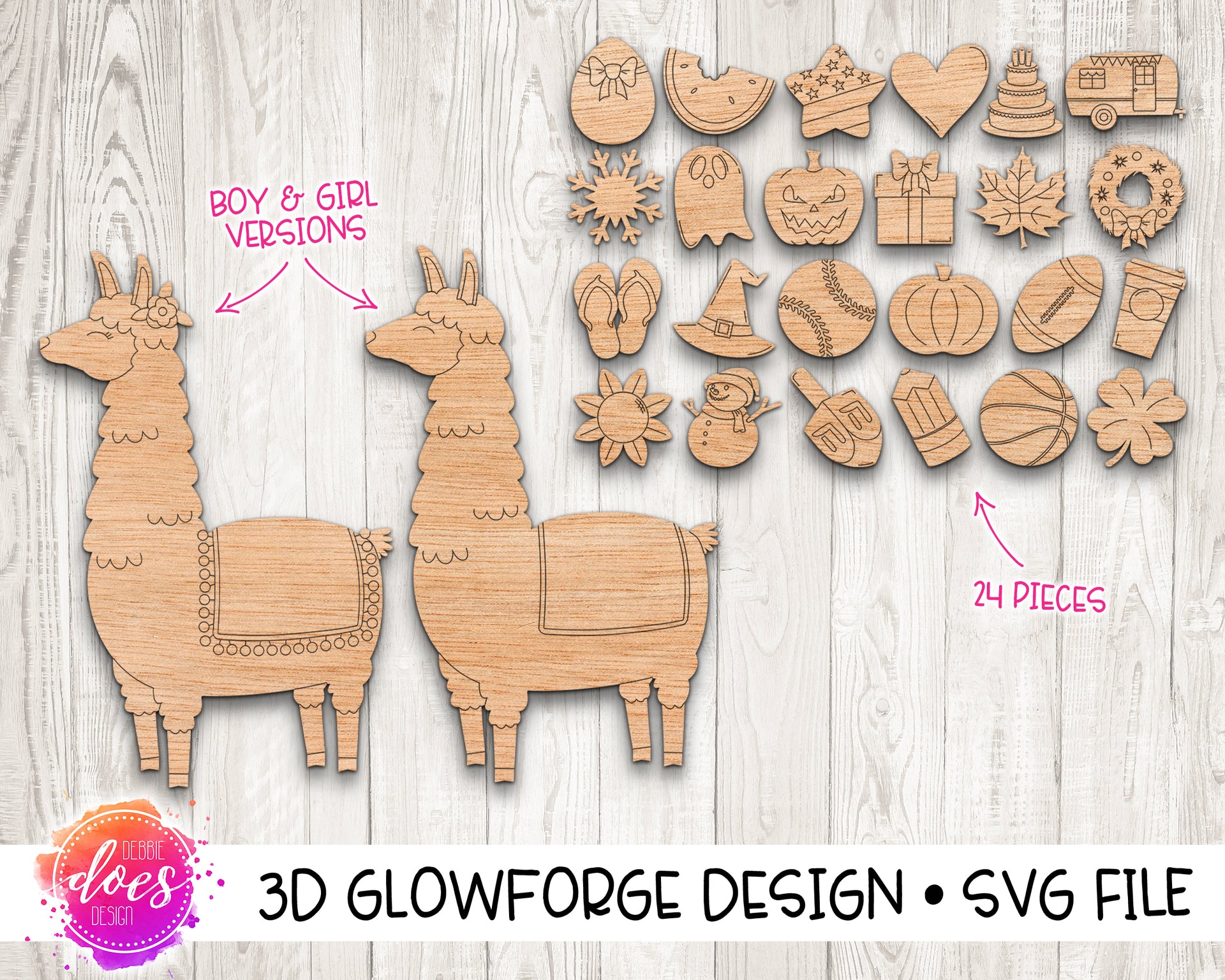 Interchangeable Llama with 24 attachments - Glowforge Design