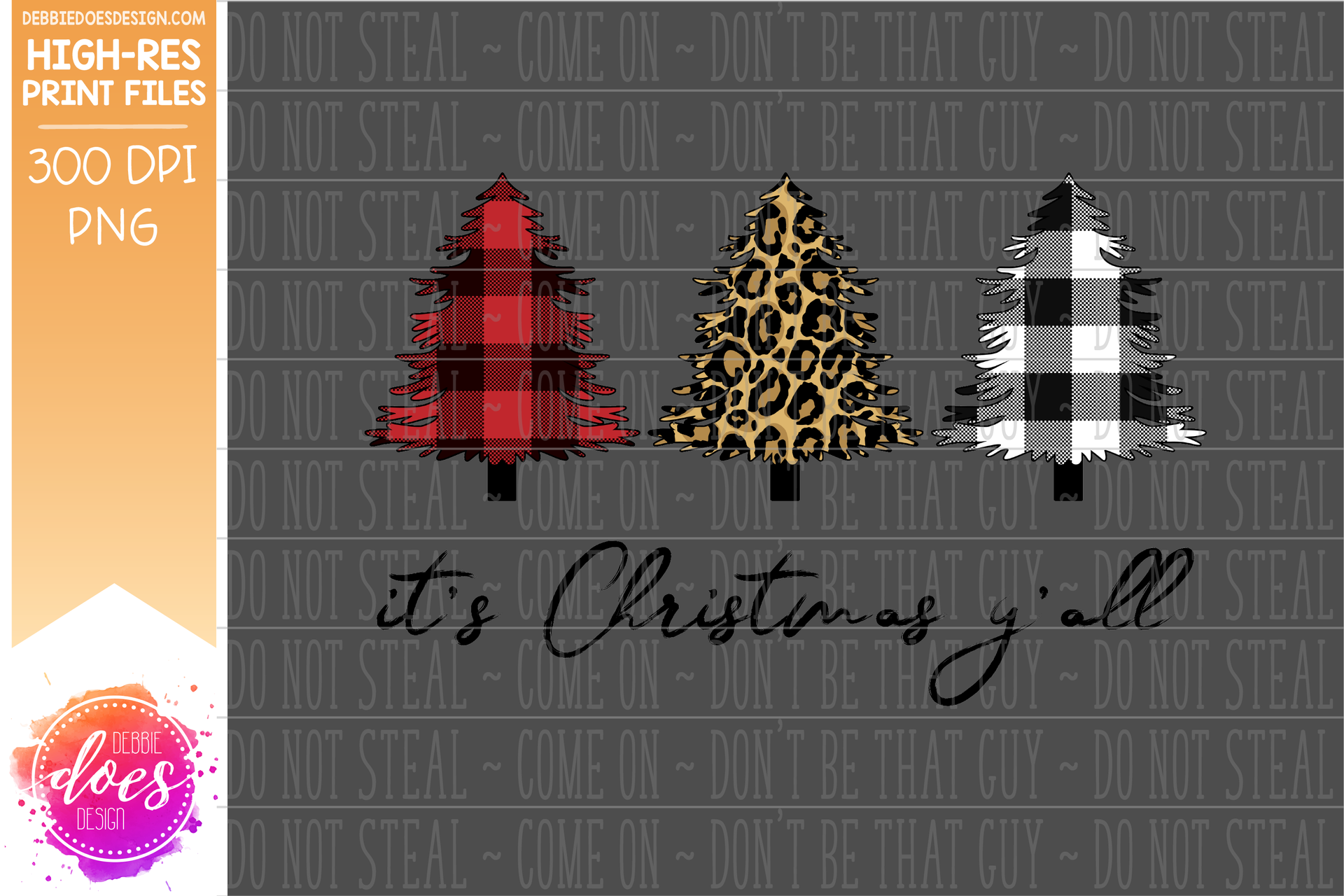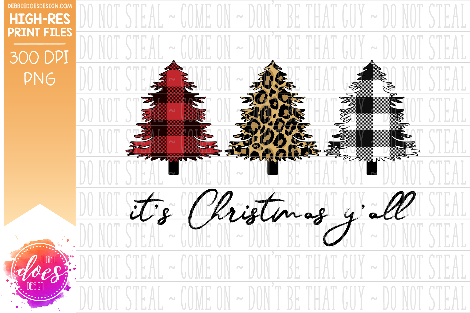 It's Christmas Y'all - Plaid Leopard Christmas Trees - Sublimation/Printable Design