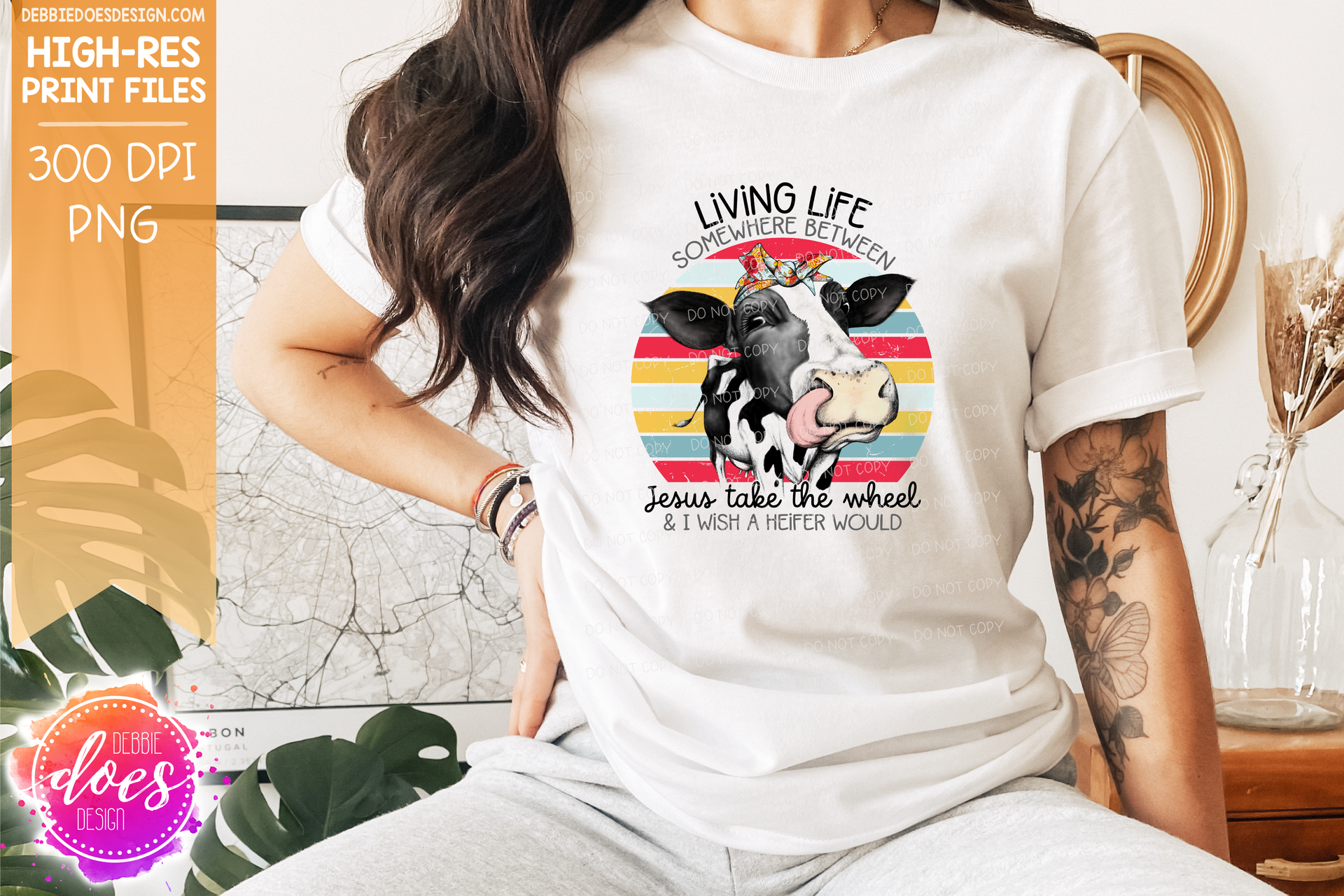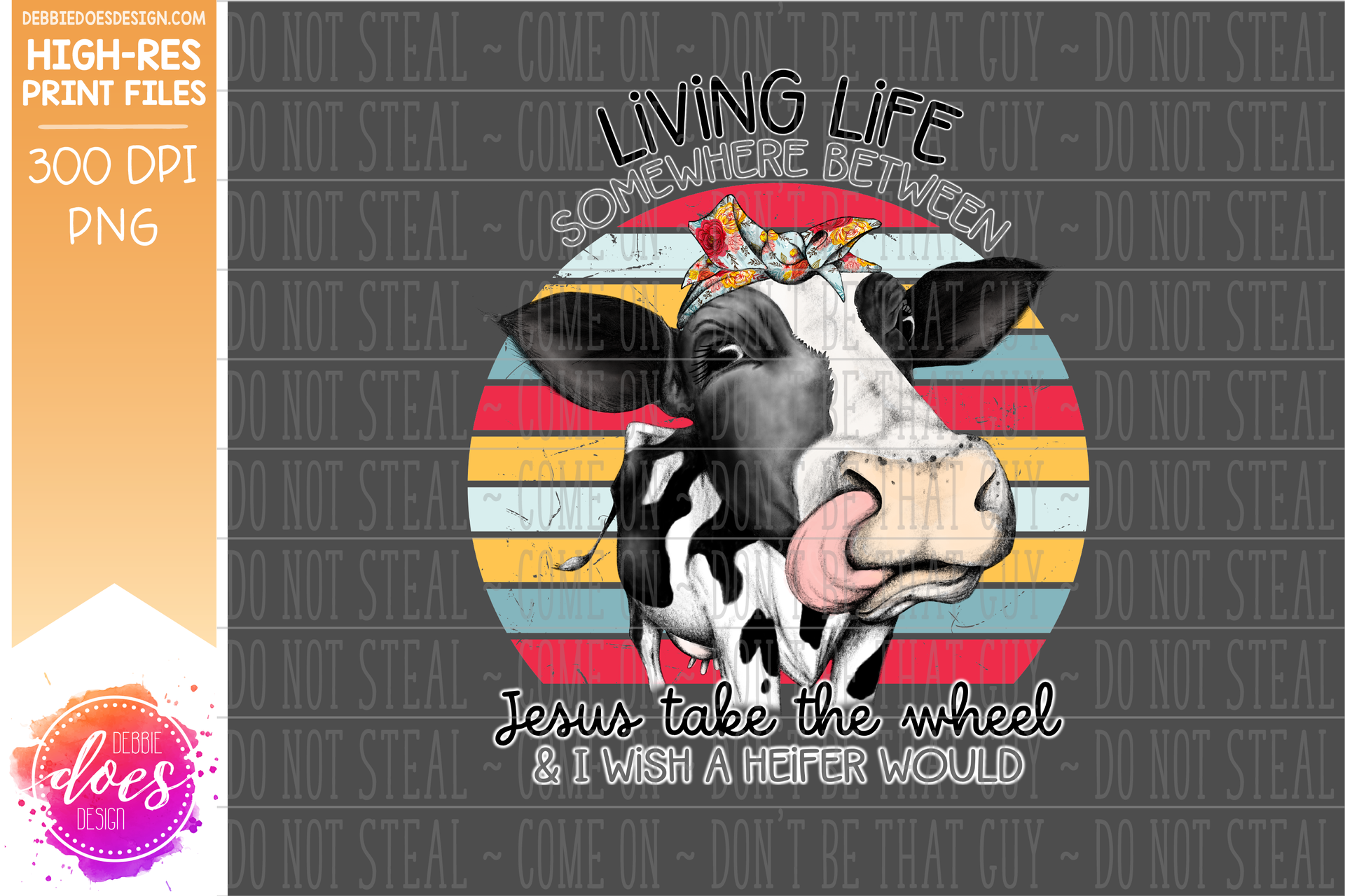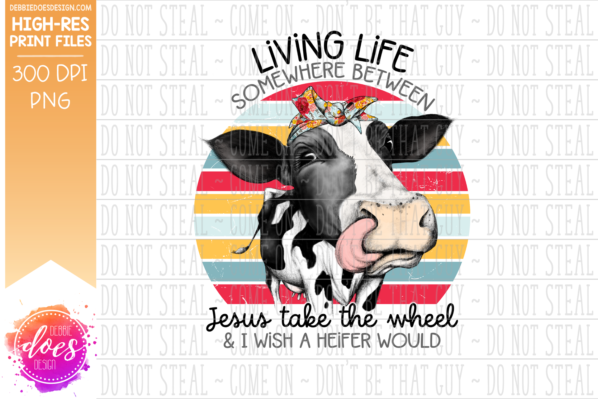 Jesus Take the Wheel - Hand Drawn Cow - Printable/Sublimation File