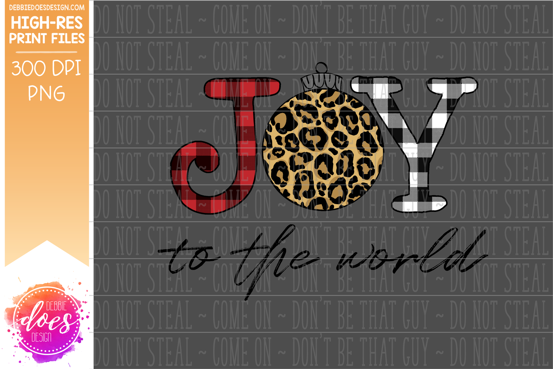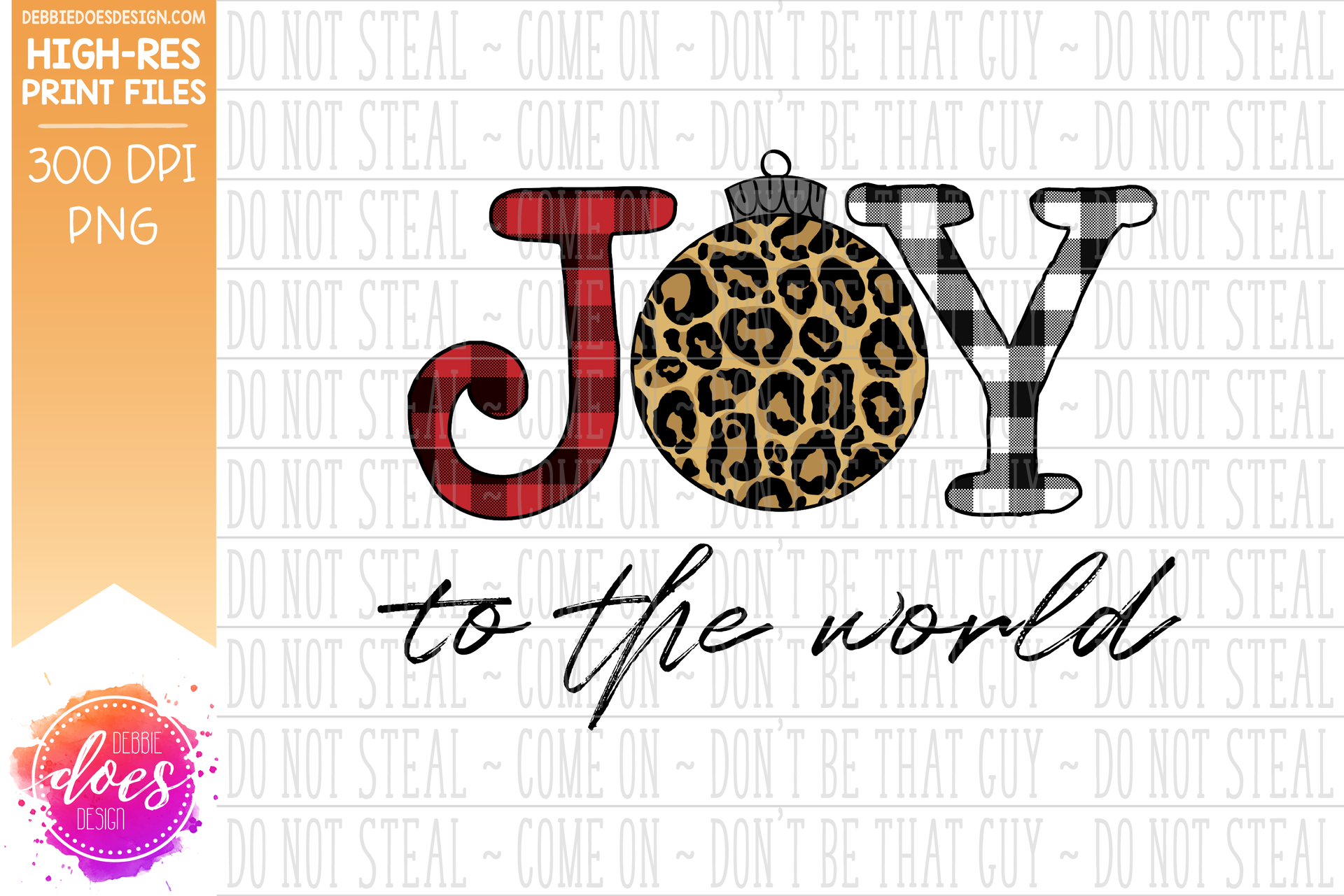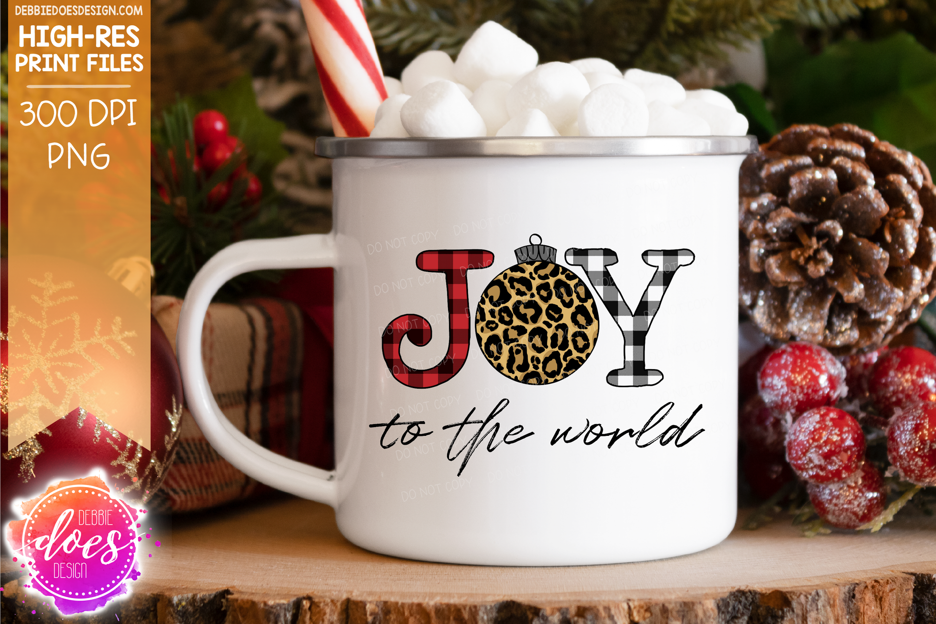 Joy to the World - Leopard Plaid Christmas Bulb - Sublimation/Printable Design