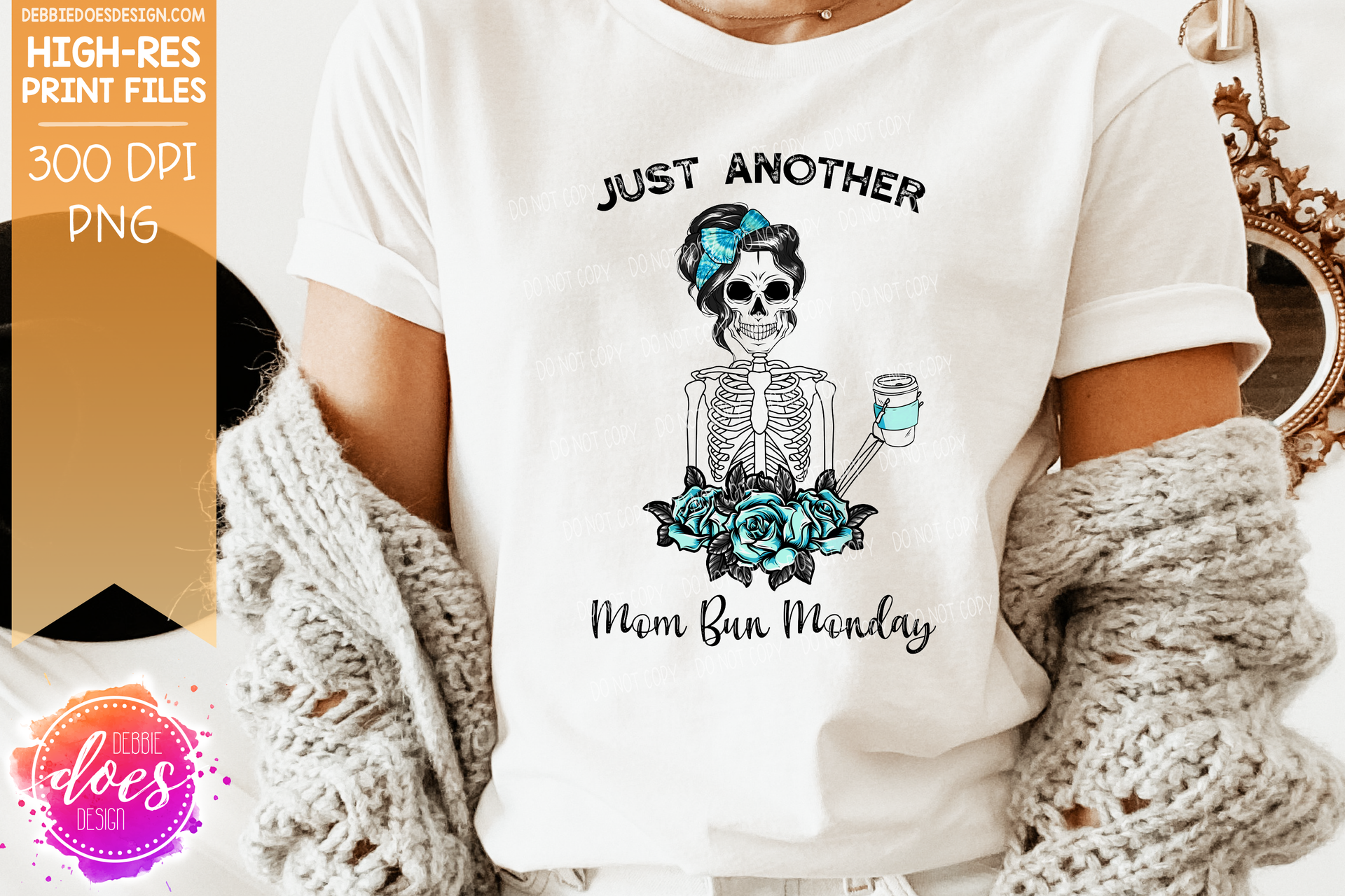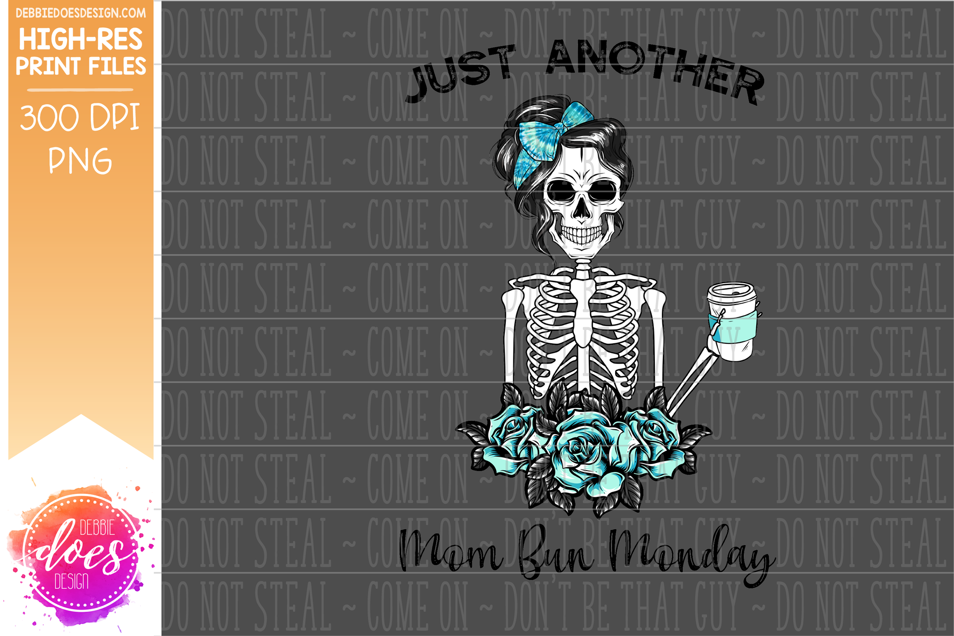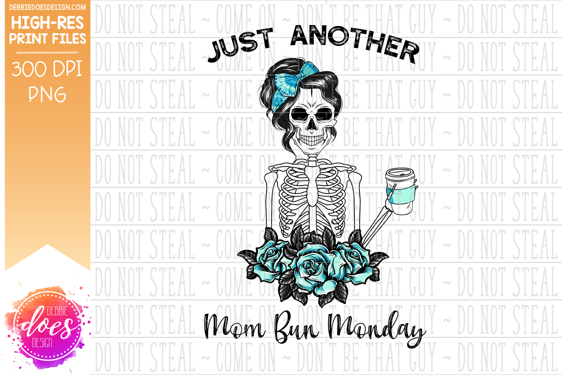 Just Another Mom Bun Monday - Blue Tie Dye - Sublimation/Printable Design