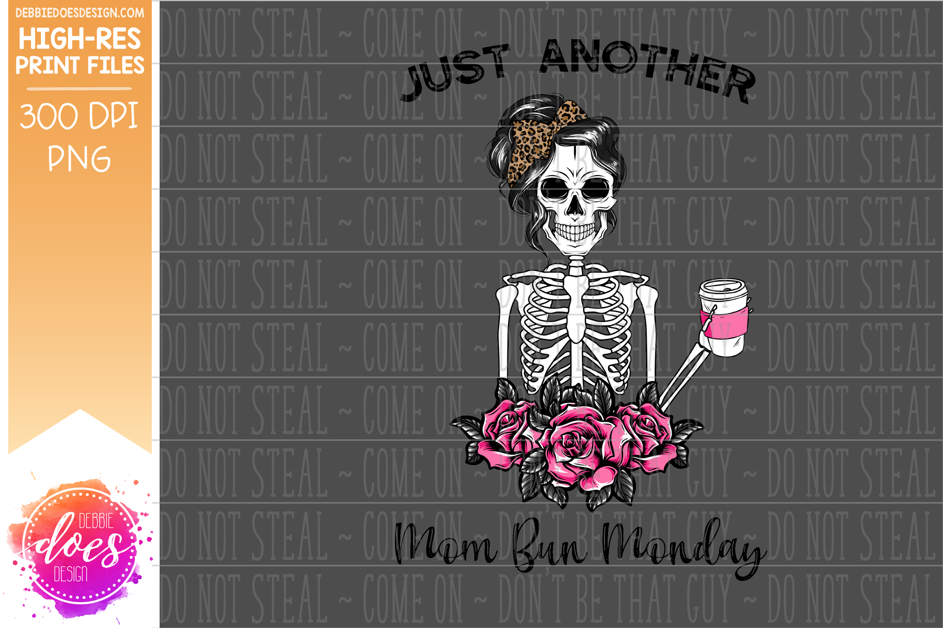 Just Another Mom Bun Monday - Leopard Pink - Sublimation/Printable Design