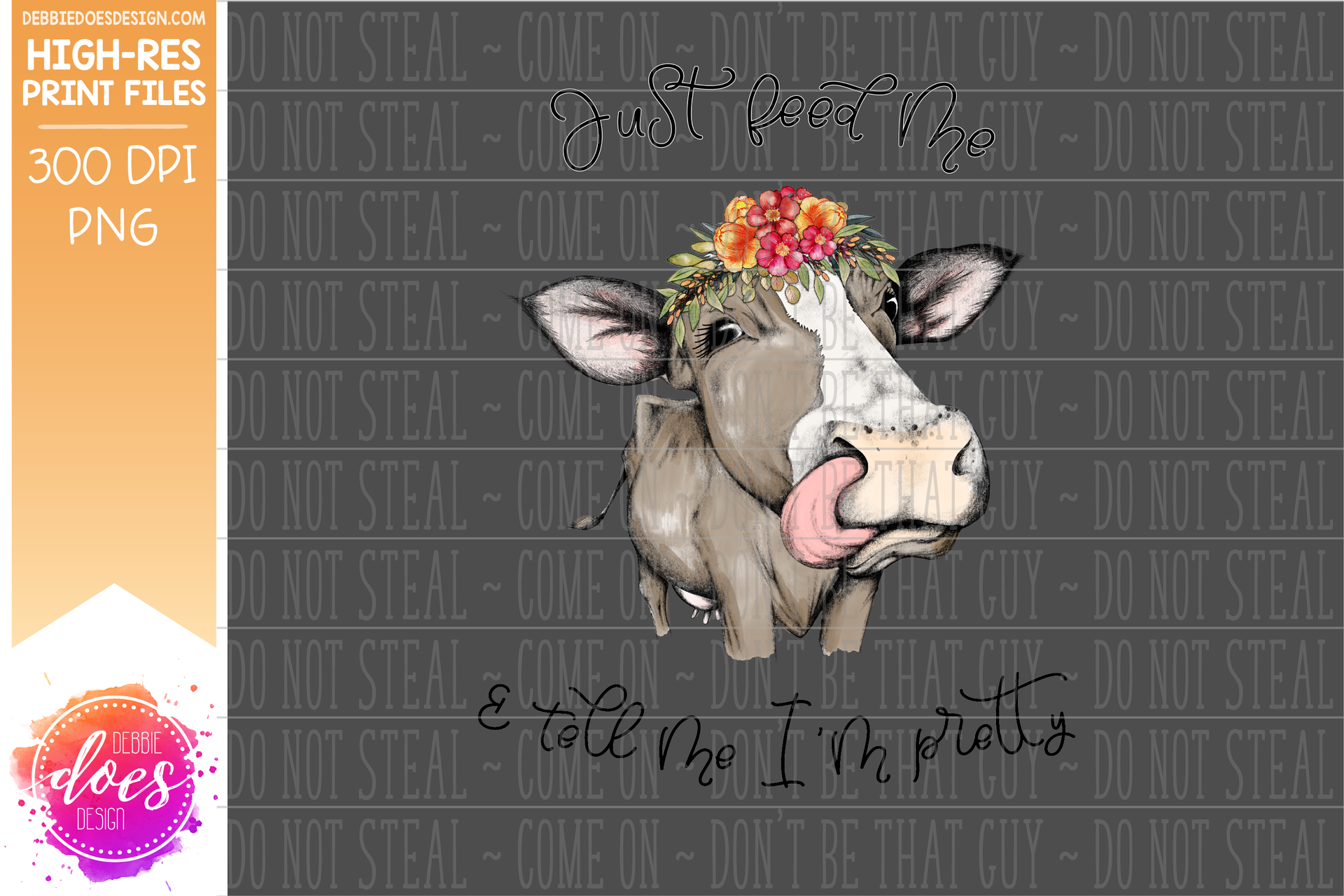 Just Feed Me & Tell Me I'm Pretty - Flower Cow Heifer - Hand Drawn Cow Print - Printable/Sublimation File