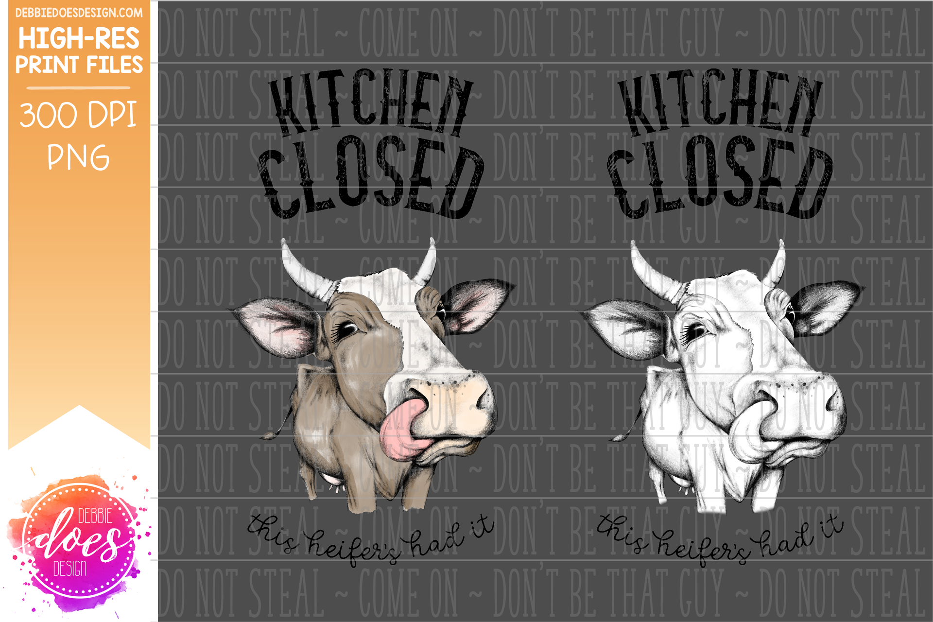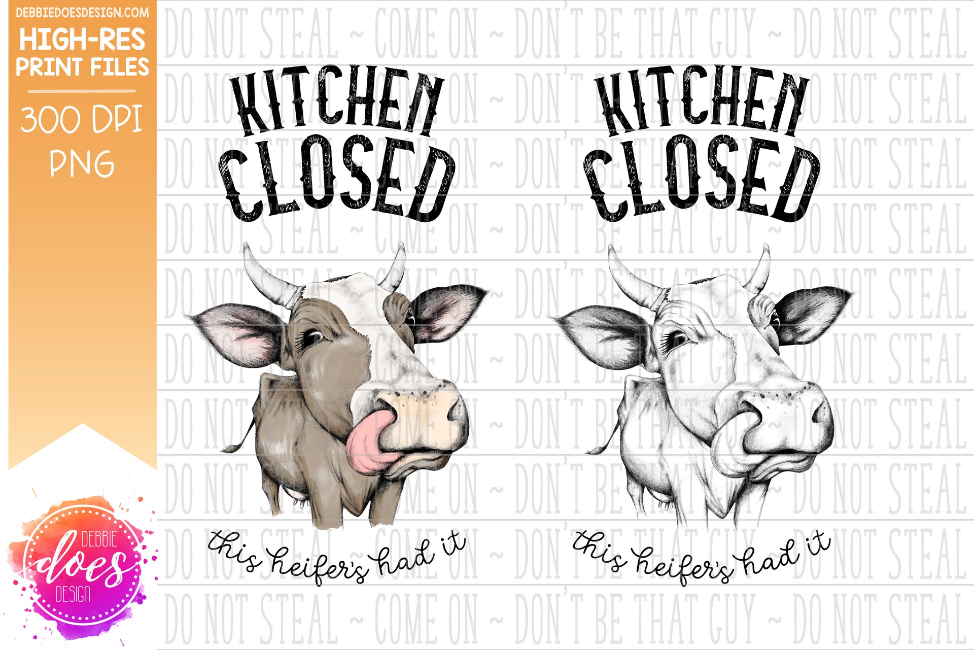 Kitchen Closed - This Heifer's Had It - 2 Versions Included! - Hand Drawn Cow Print - Printable/Sublimation File