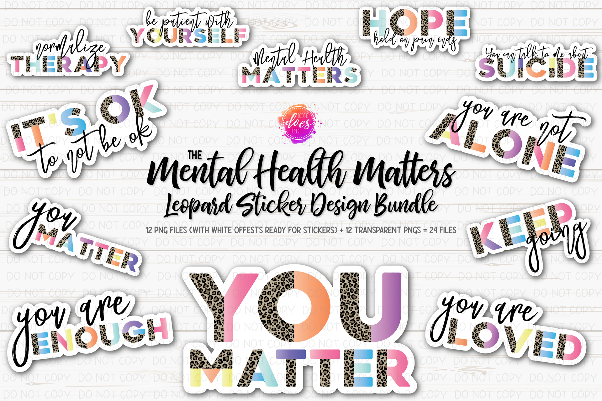 Leopard Pastel Mental Health Sticker Design Set - Suicide Prevention - Printable Sticker Designs