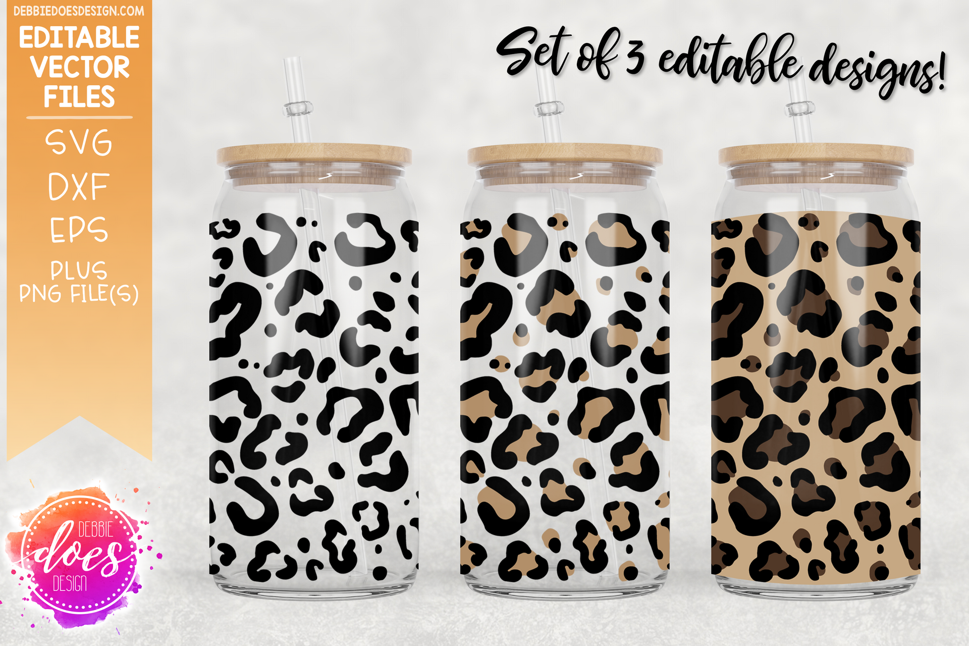 Leopard Print Glass Can Tumbler Designs - Set of 3 - Editable Vector Design